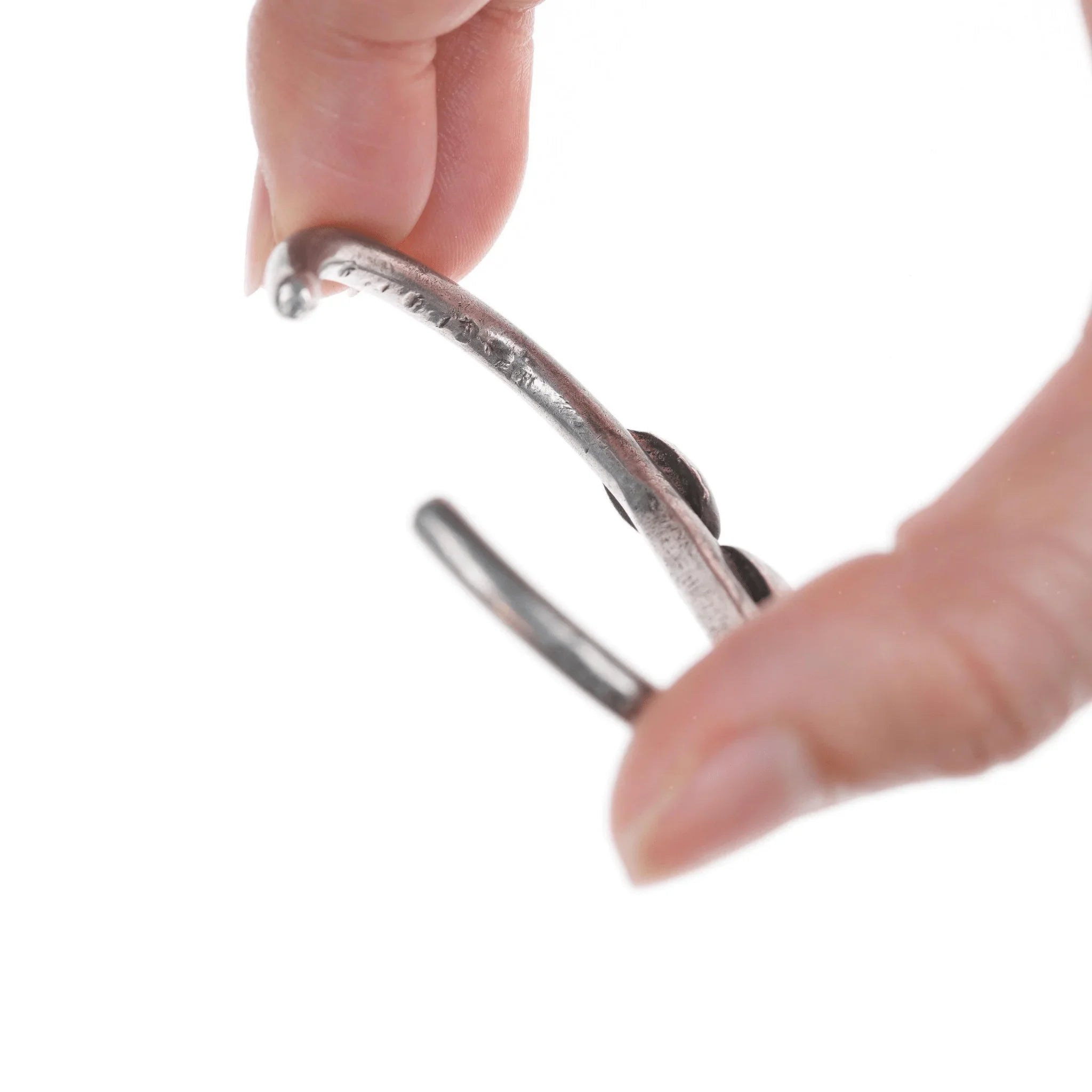Marked or unmarked as shown in pics, weight and other measurements in pics. Sorry but my jewelry is stored in a secure location and cannot be accessed for more pictures,<br>videos, or measurements until sold. If you look at pictures/description your<br>question should be answered. Thank you so much for your time and consideration!<br><br>All precious metals are tested and guaranteed. A Native American jewelry piece referred to as "silver" or "ingot" is guaranteed to be at least 90% silver. Bracelets are photographed on a 6" women's wrist.