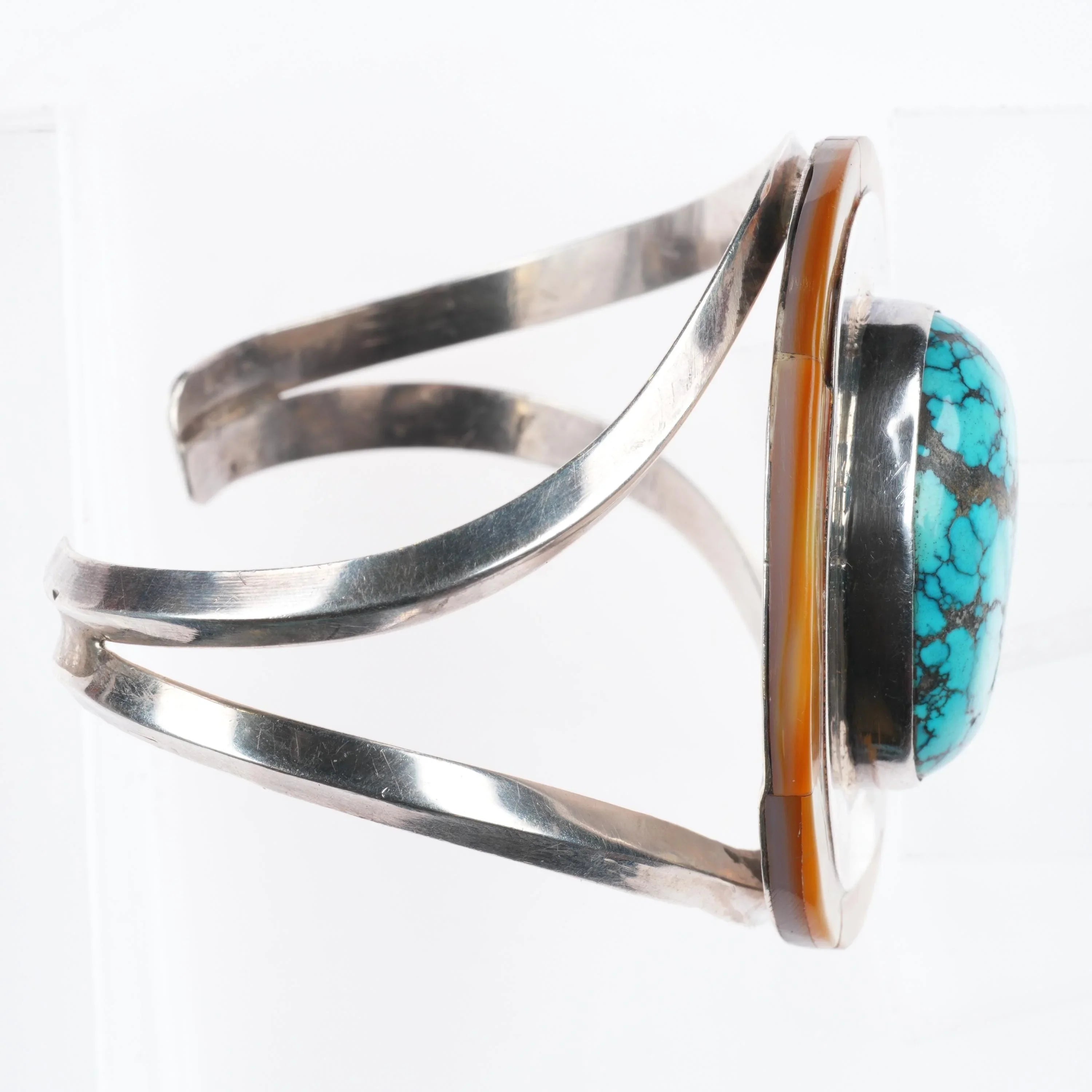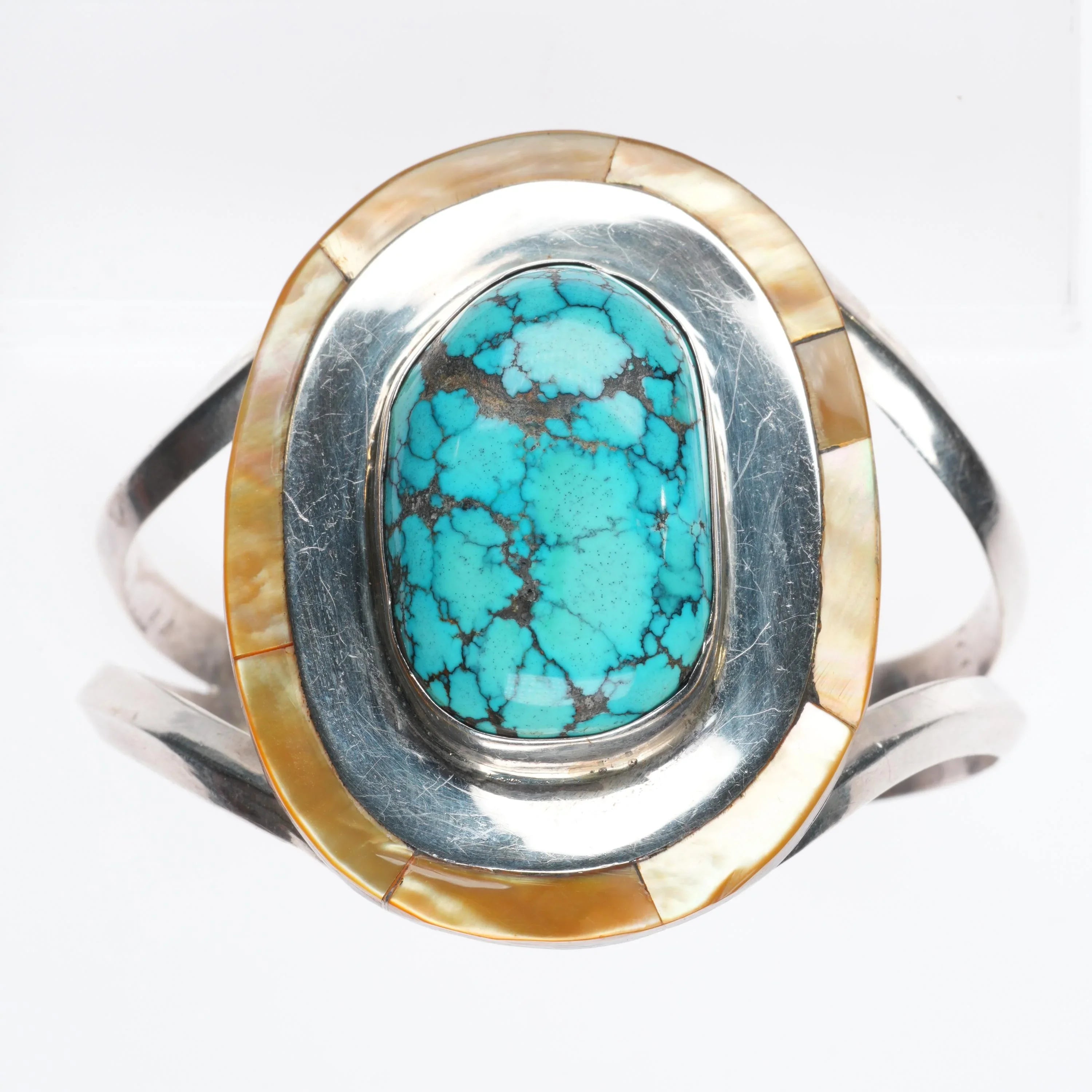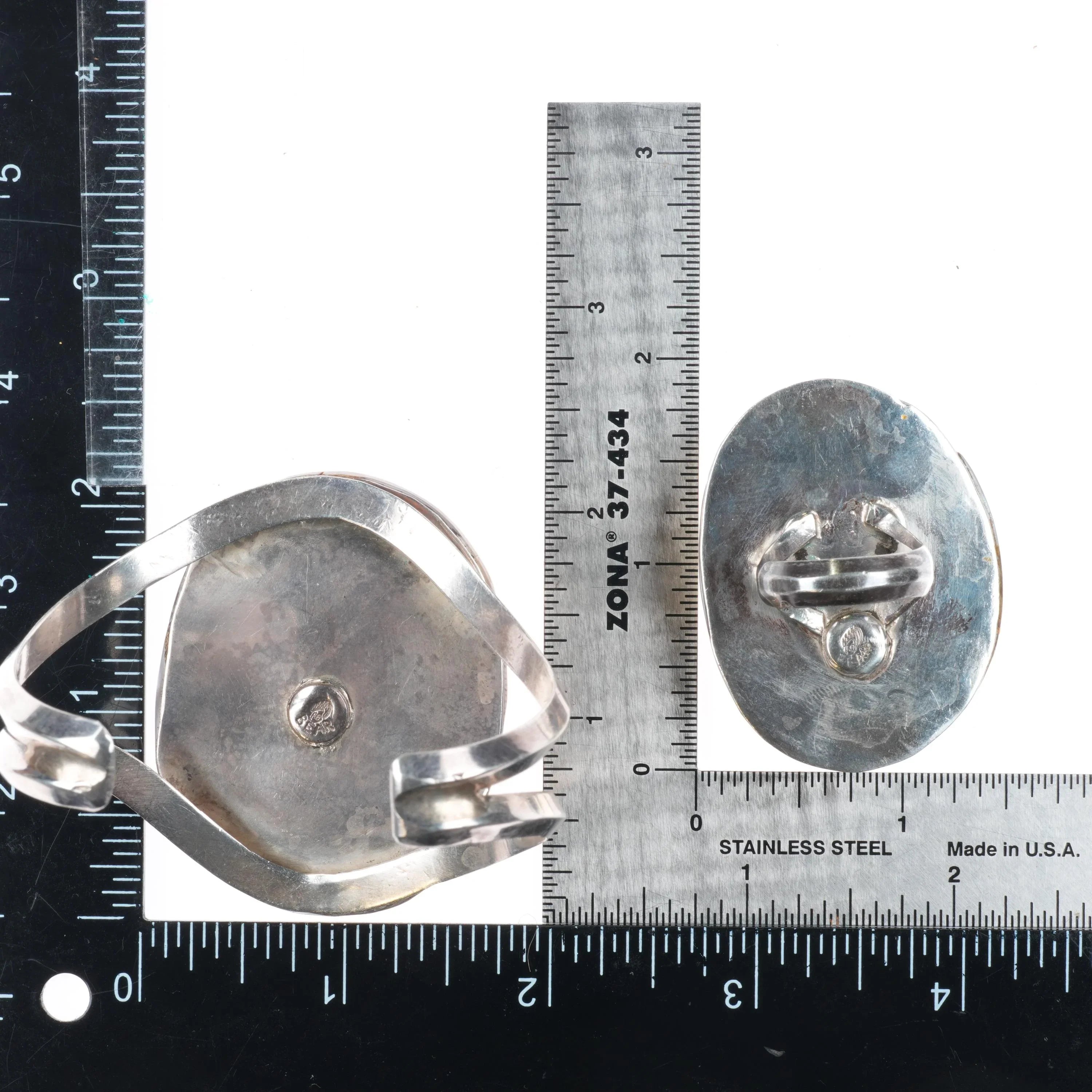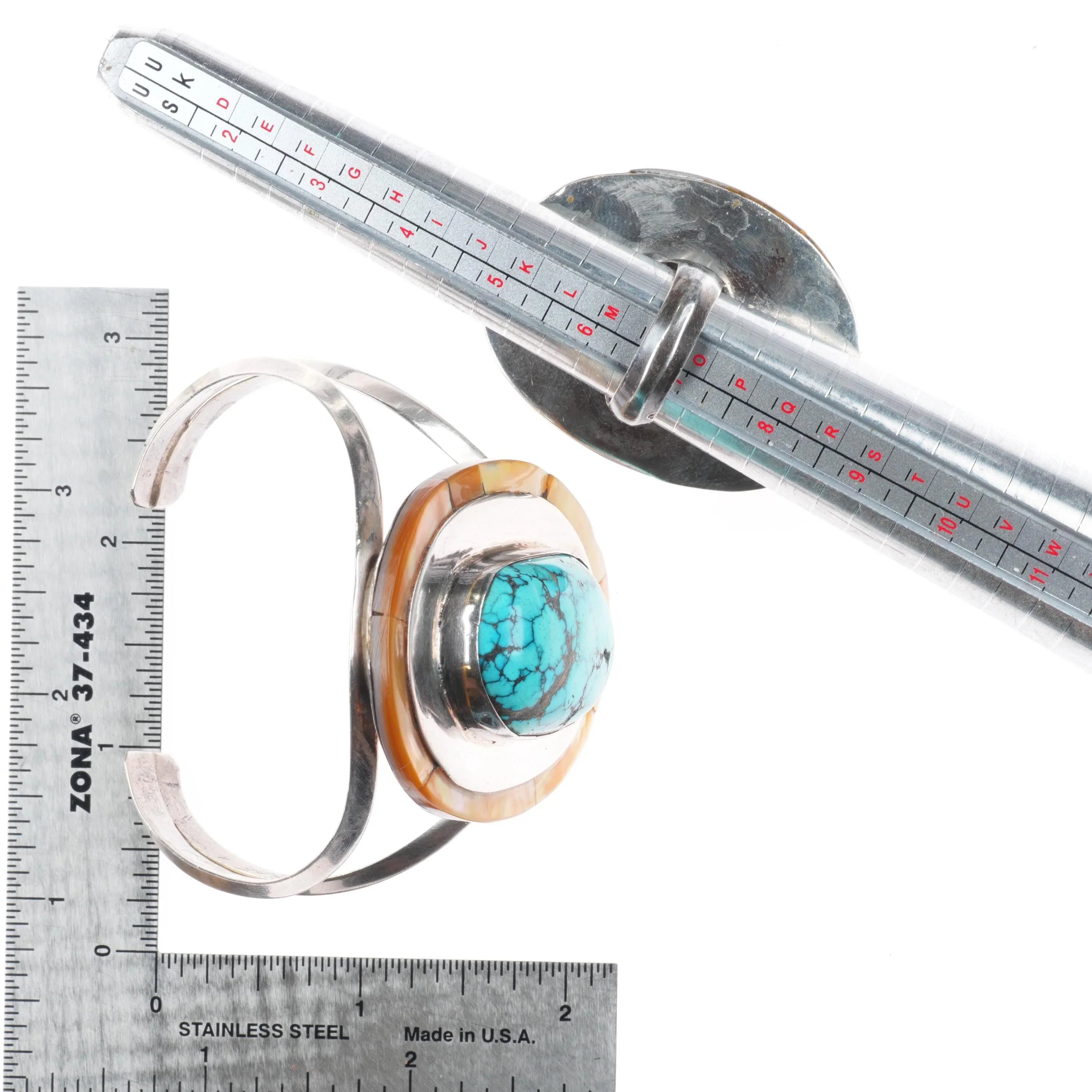 6.7" sz7 Rhoda Jack Navajo sterling silver/turquoise/shell cuff bracelet/ring