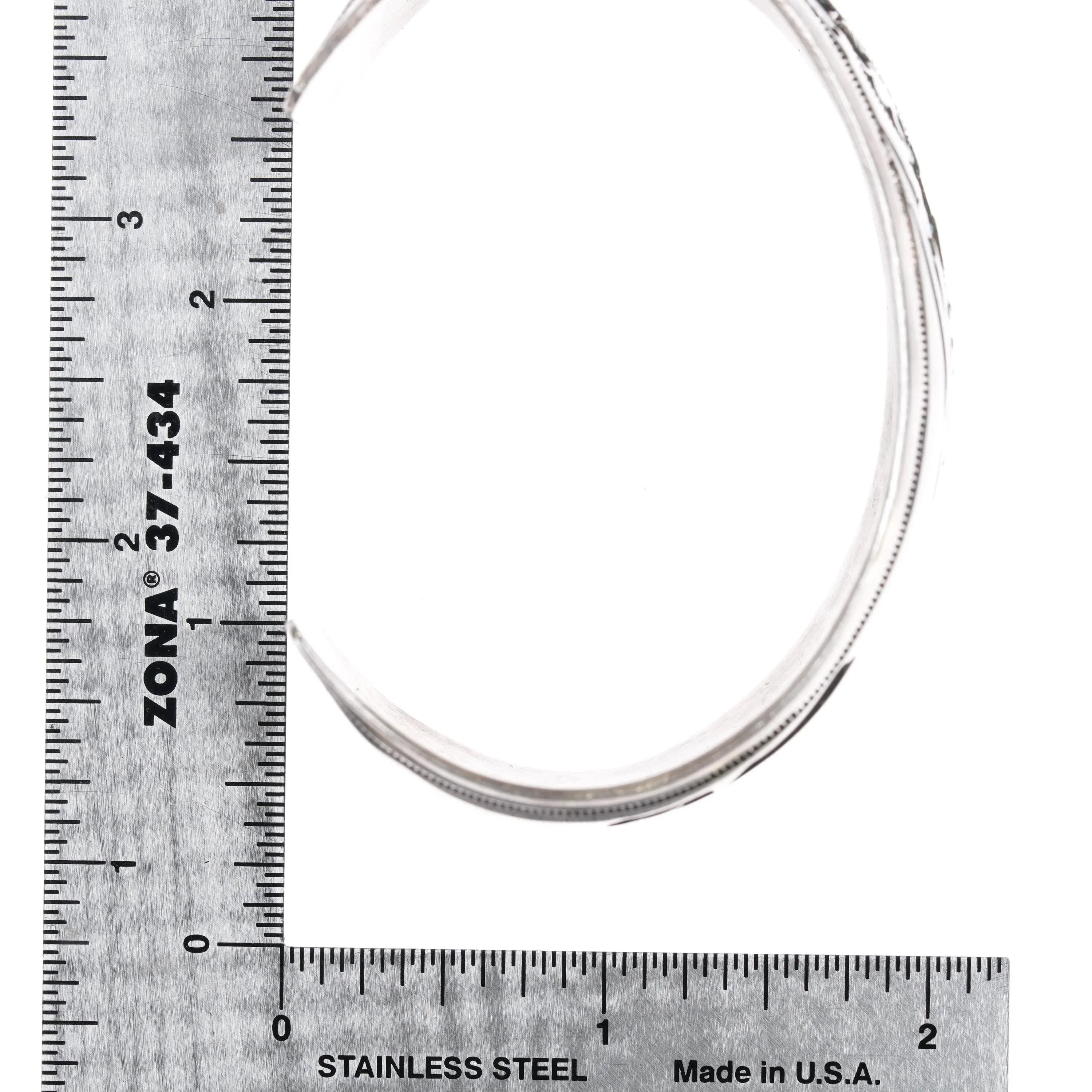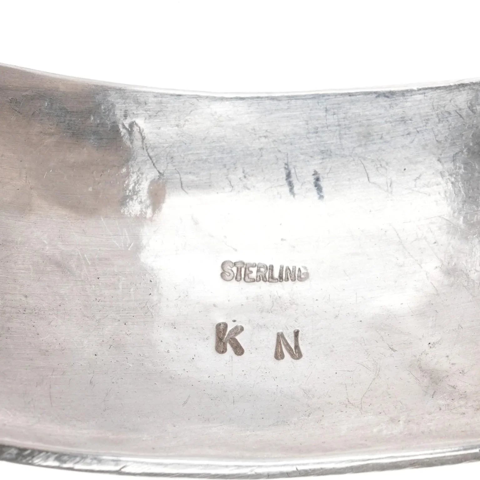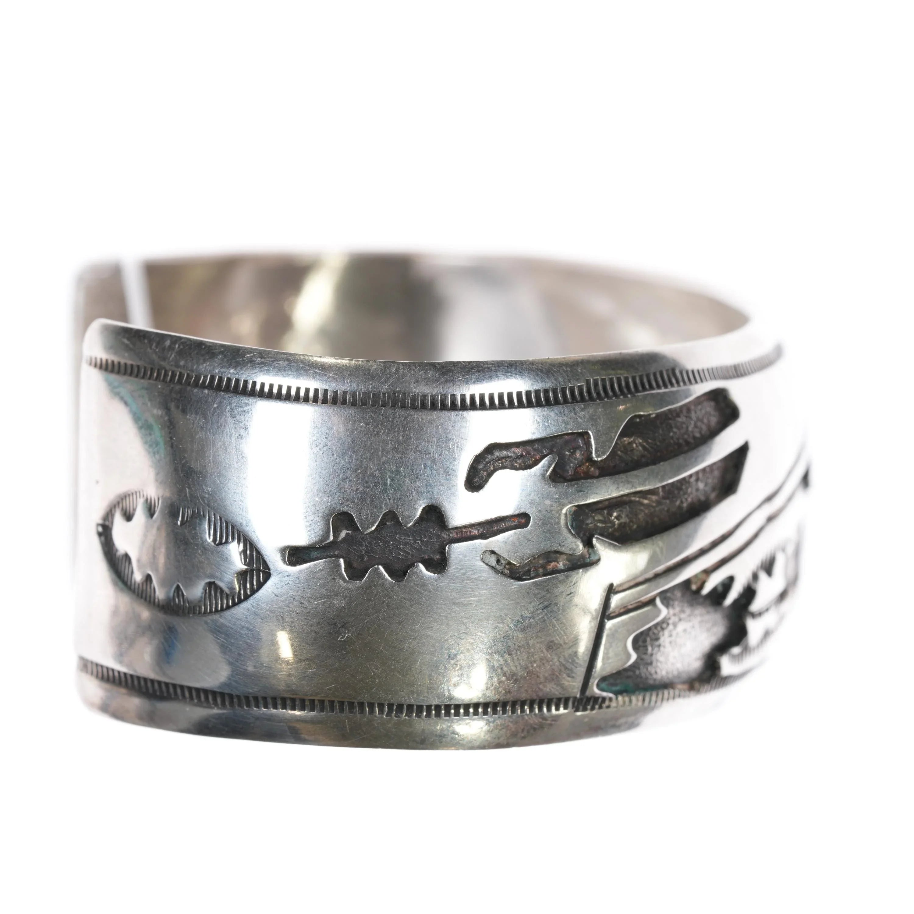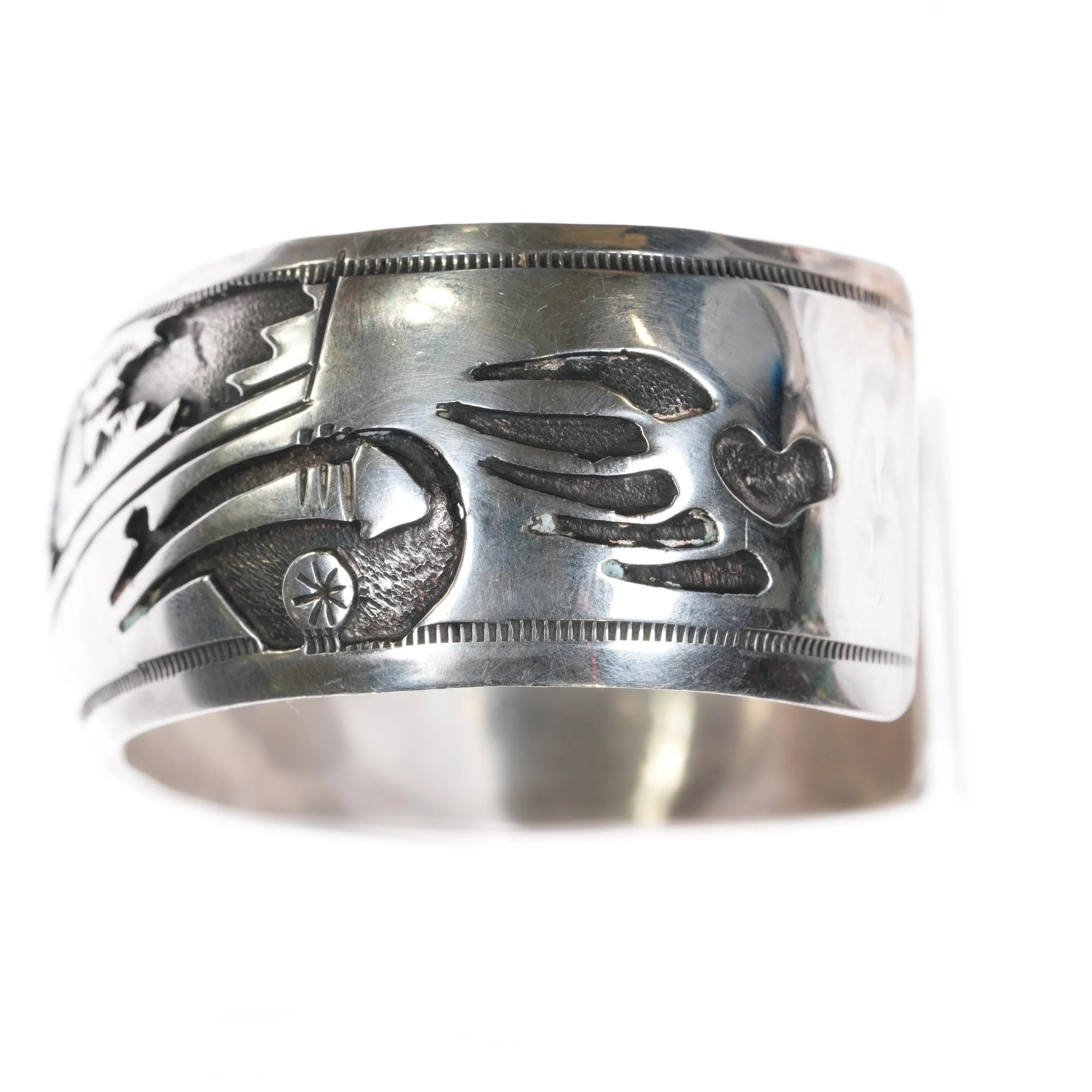 7.5" Kee Nataani Navajo sterling cuff bracelet w/rug and bear overlay