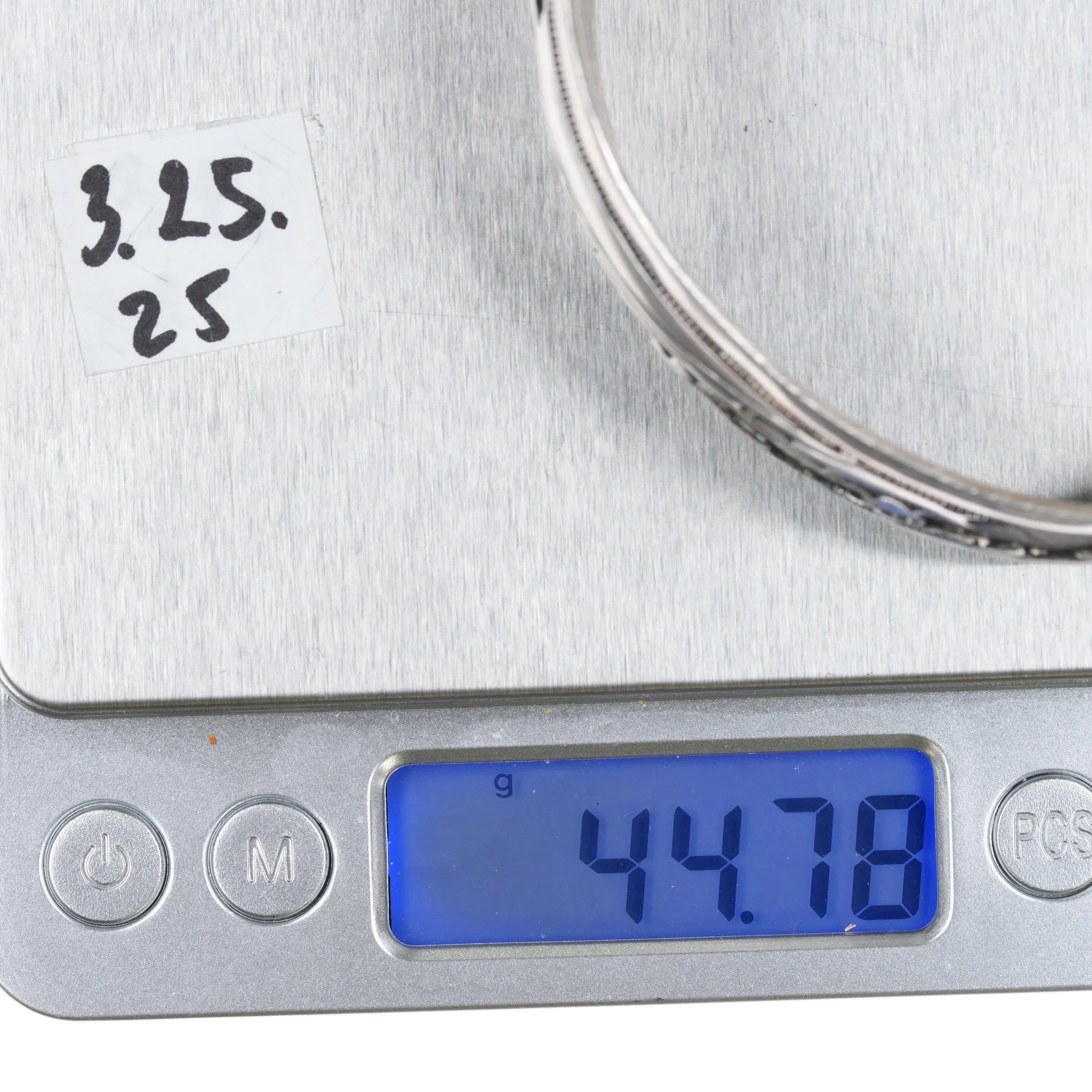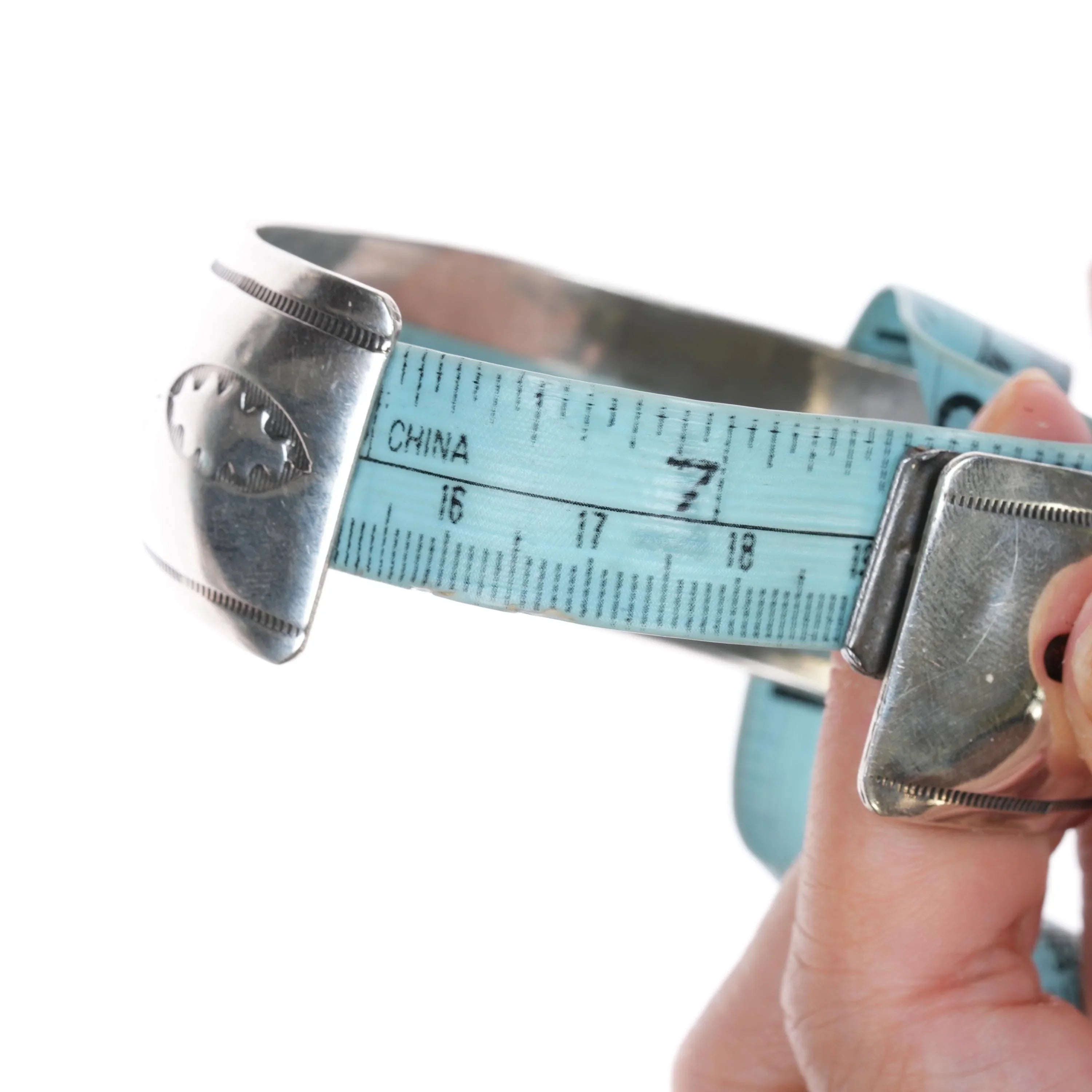 7.5" Kee Nataani Navajo sterling cuff bracelet w/rug and bear overlay. Weight and measurements in pictures, solid sterling silver.