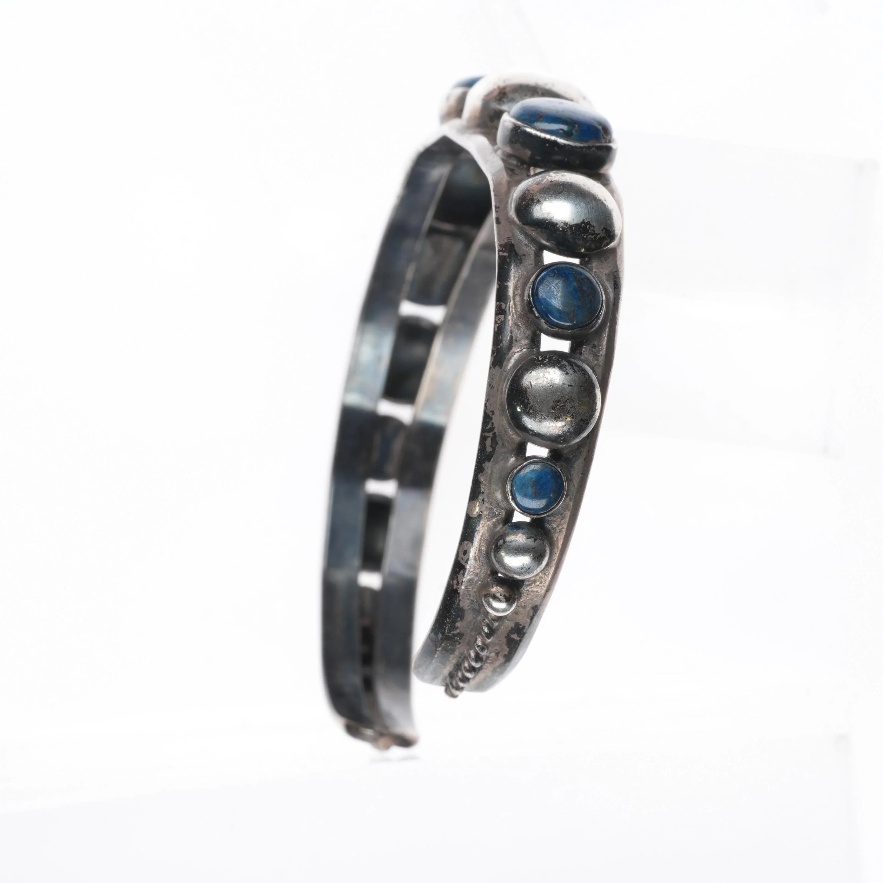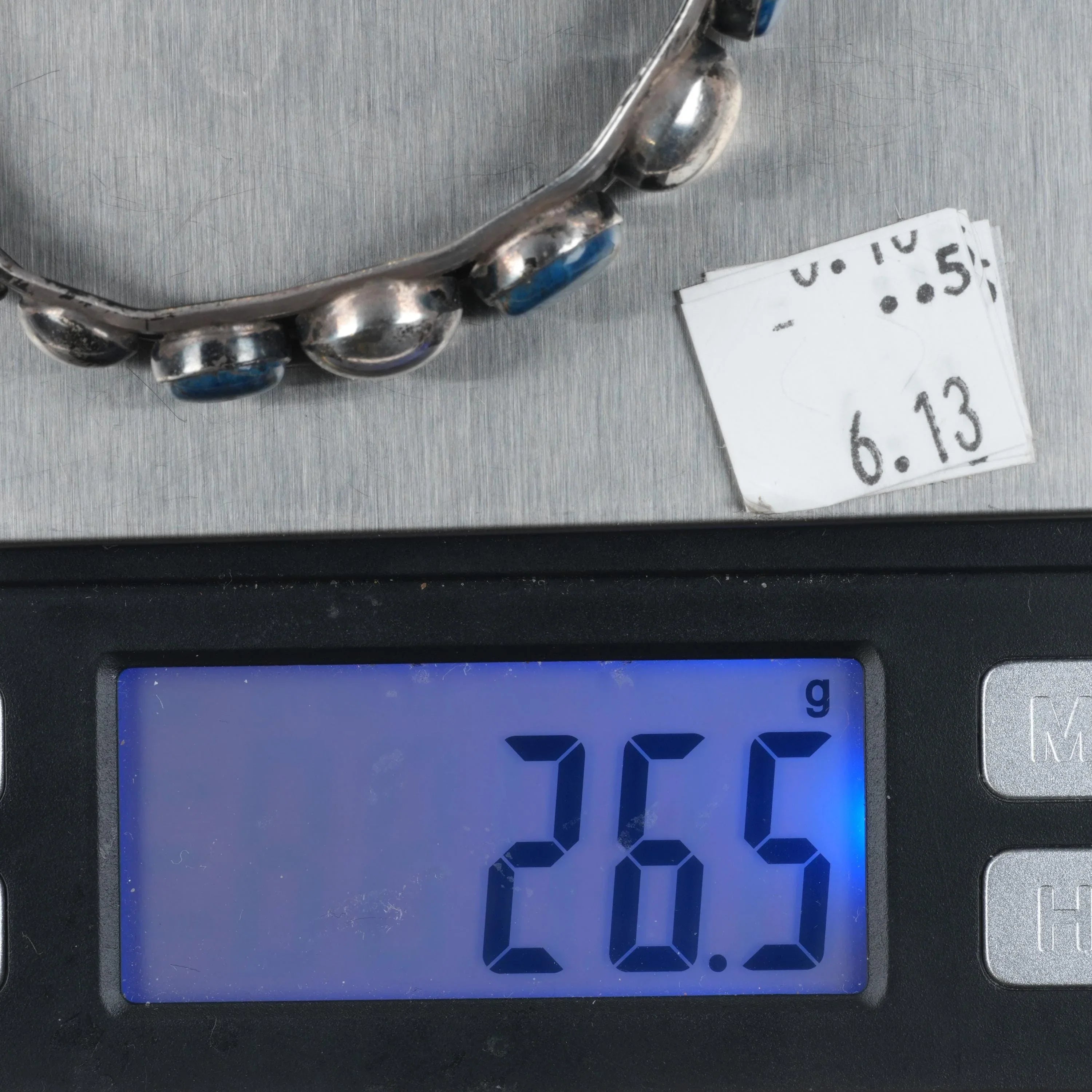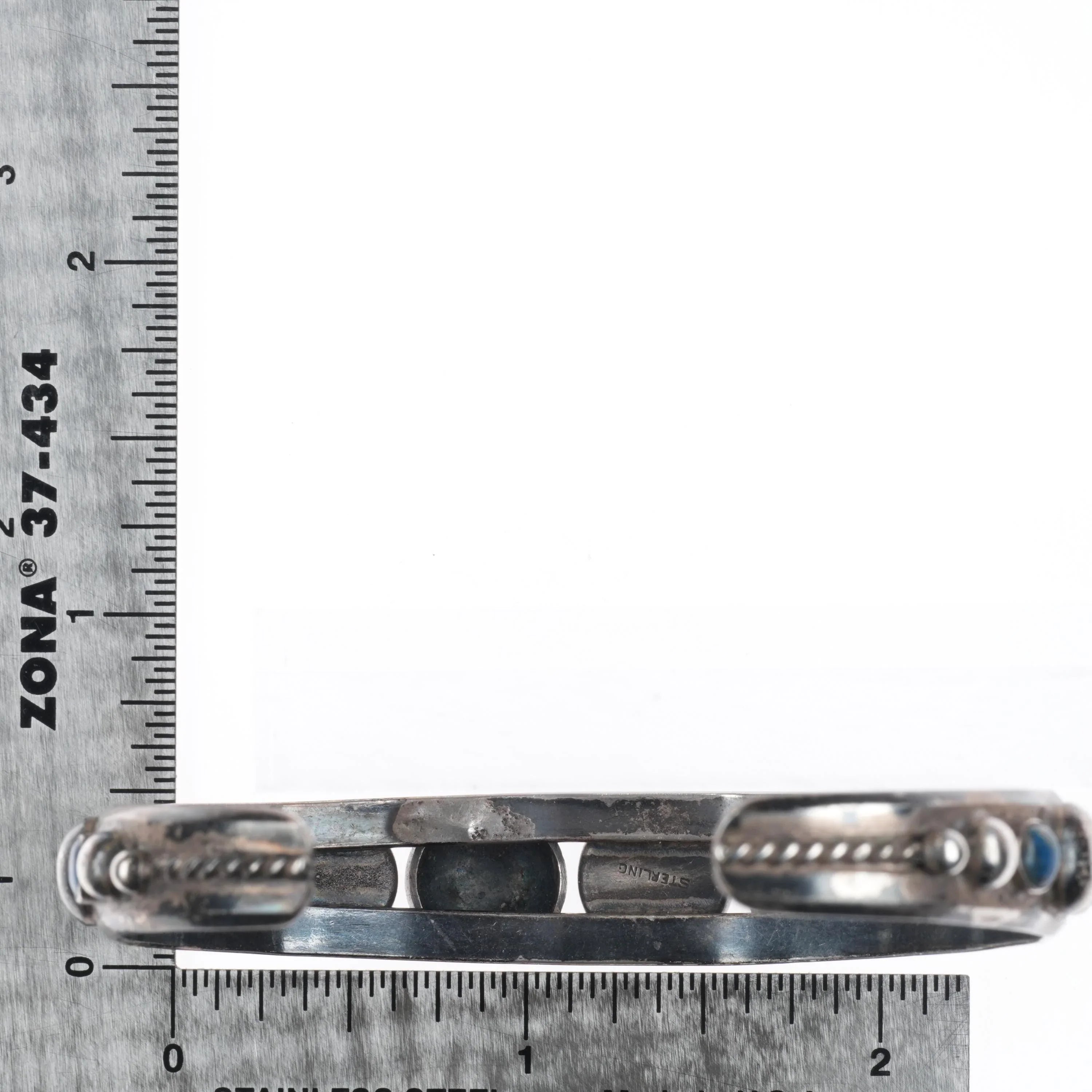 6.75" Vintage modernist sterling silver chrysocolla southwestern cuff bracelet. Circa third quarter of the 20th century, sterling mark and no other detectable markings.