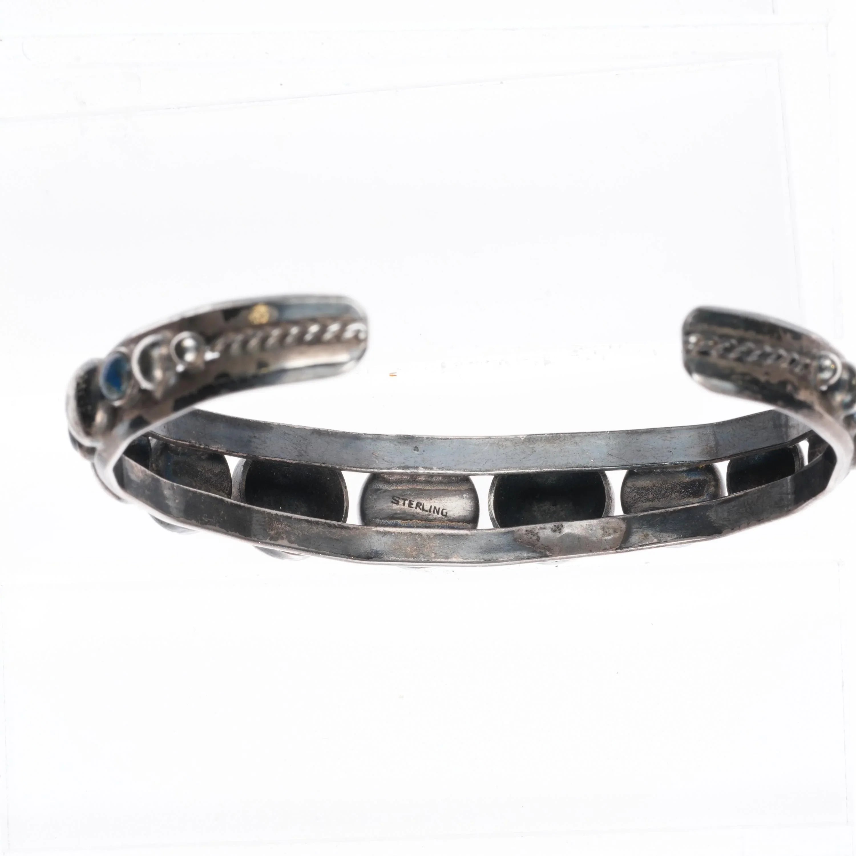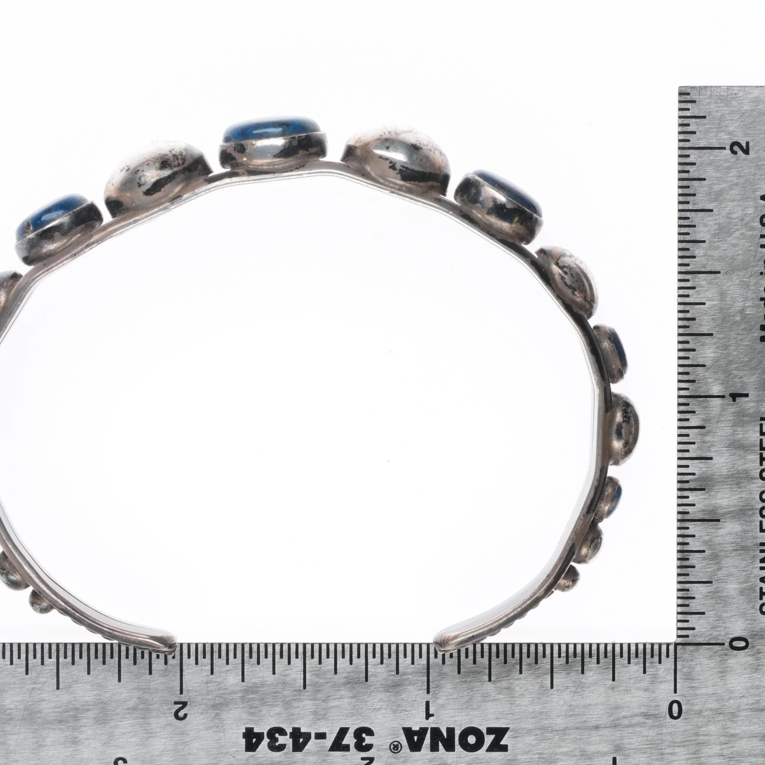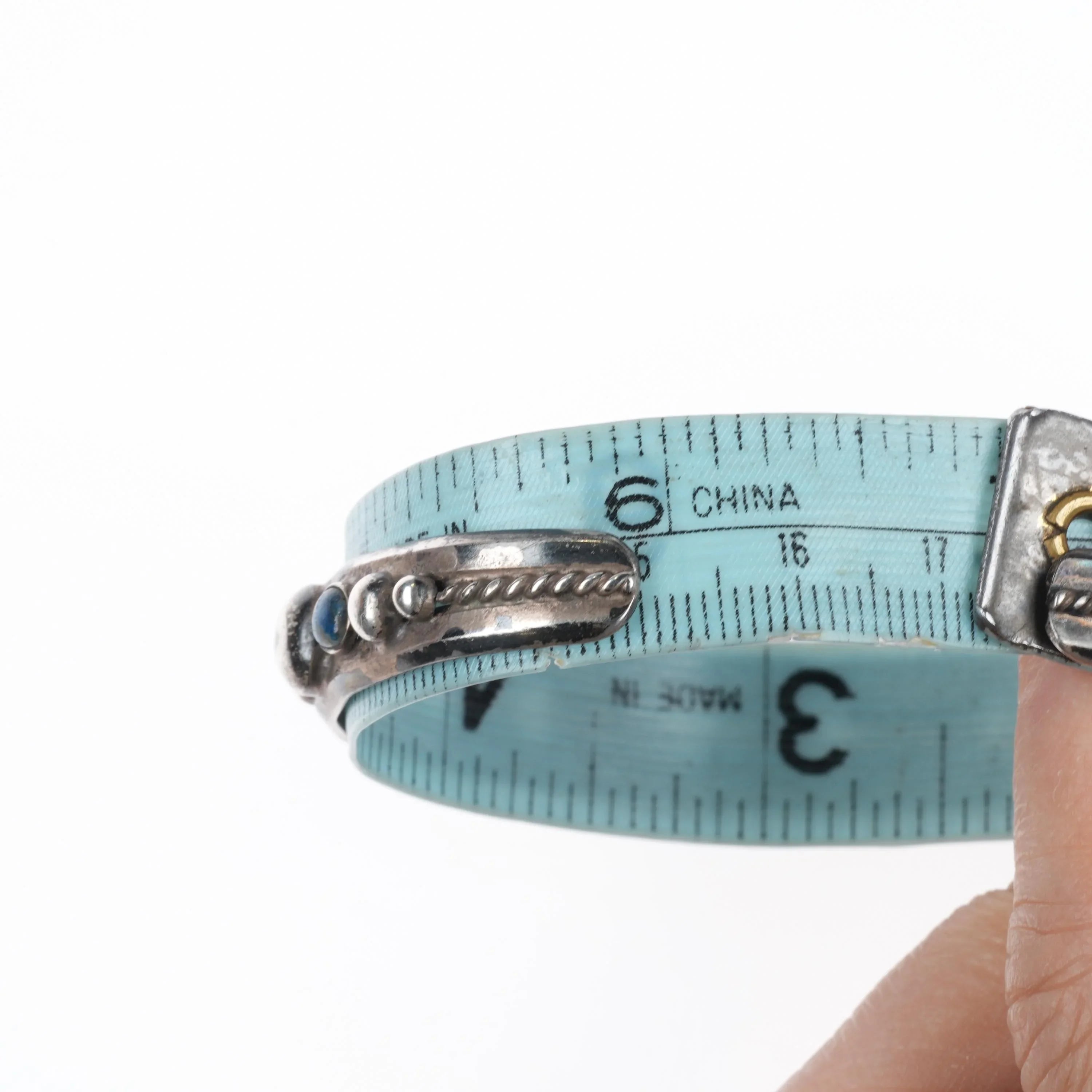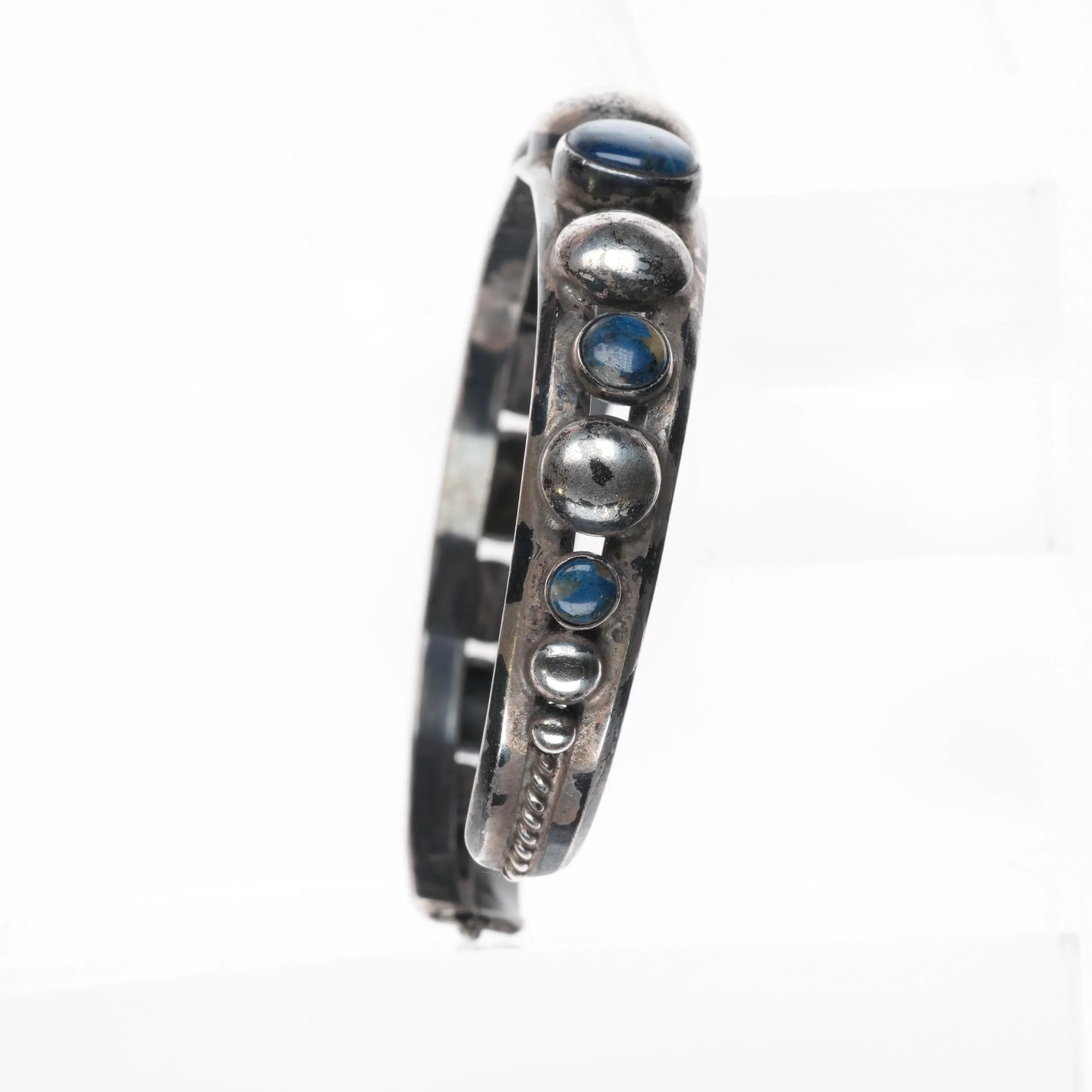 6.75" Vintage modernist sterling silver chrysocolla southwestern cuff bracelet. Circa third quarter of the 20th century, sterling mark and no other detectable markings.