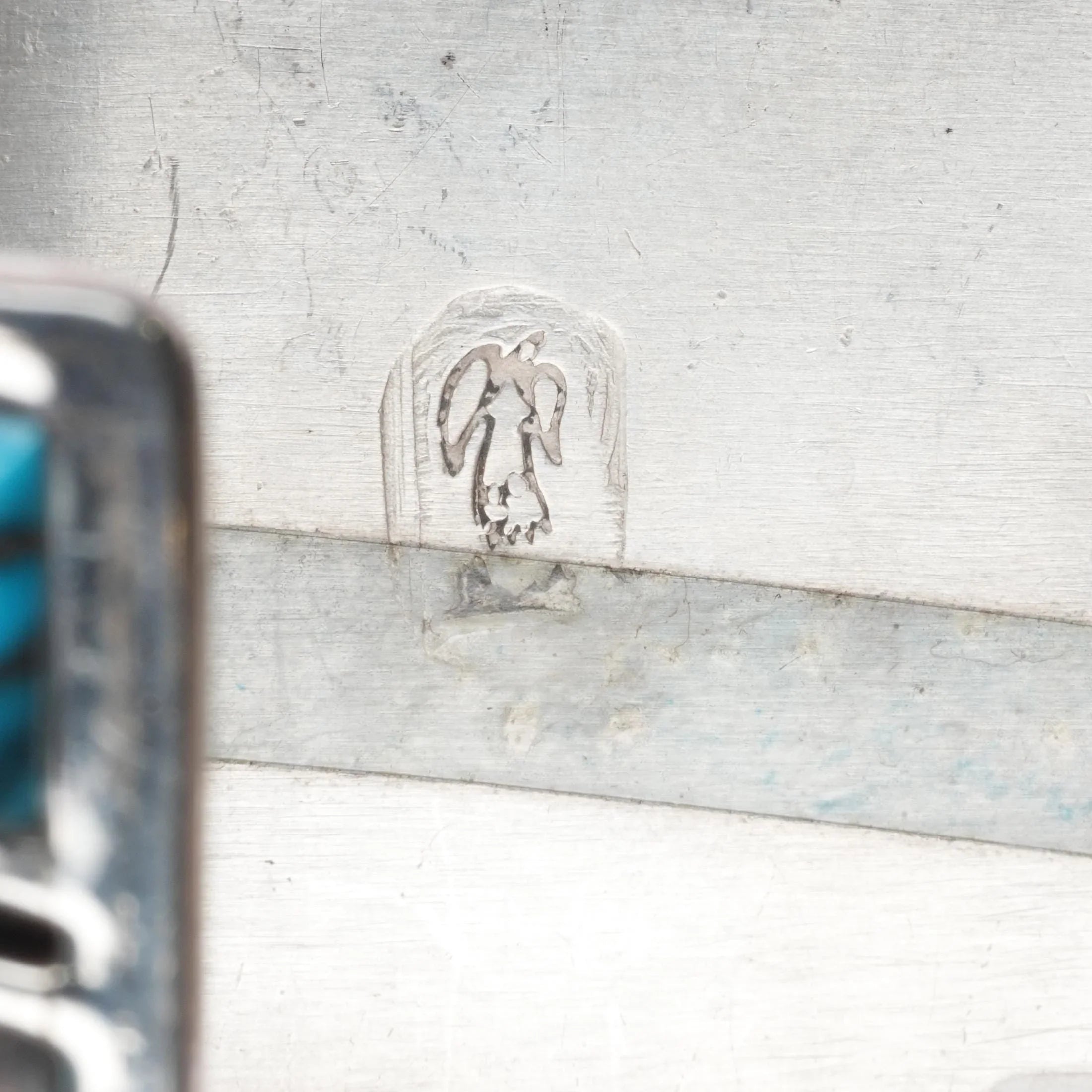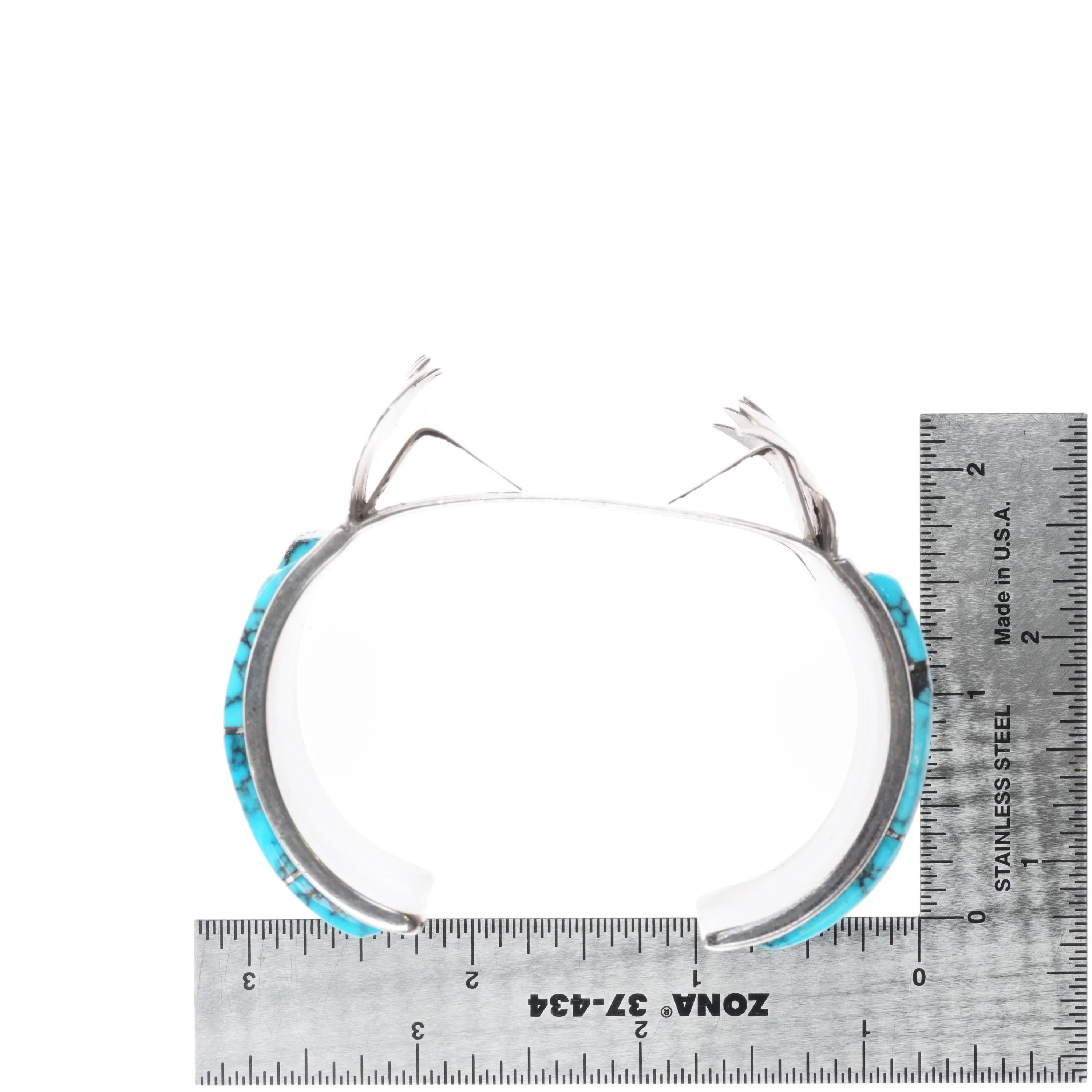 6.75" Vintage Navajo sterling silver spiderweb turquoise watch cuff bracelet. Selling the watch bracelet shown, tested and guaranteed solid sterling silver. Weight and measurements in pictures. Has never had a watch in it, new old stock from the last quarter of the 20th century. Gilbert Ortega shop mark.