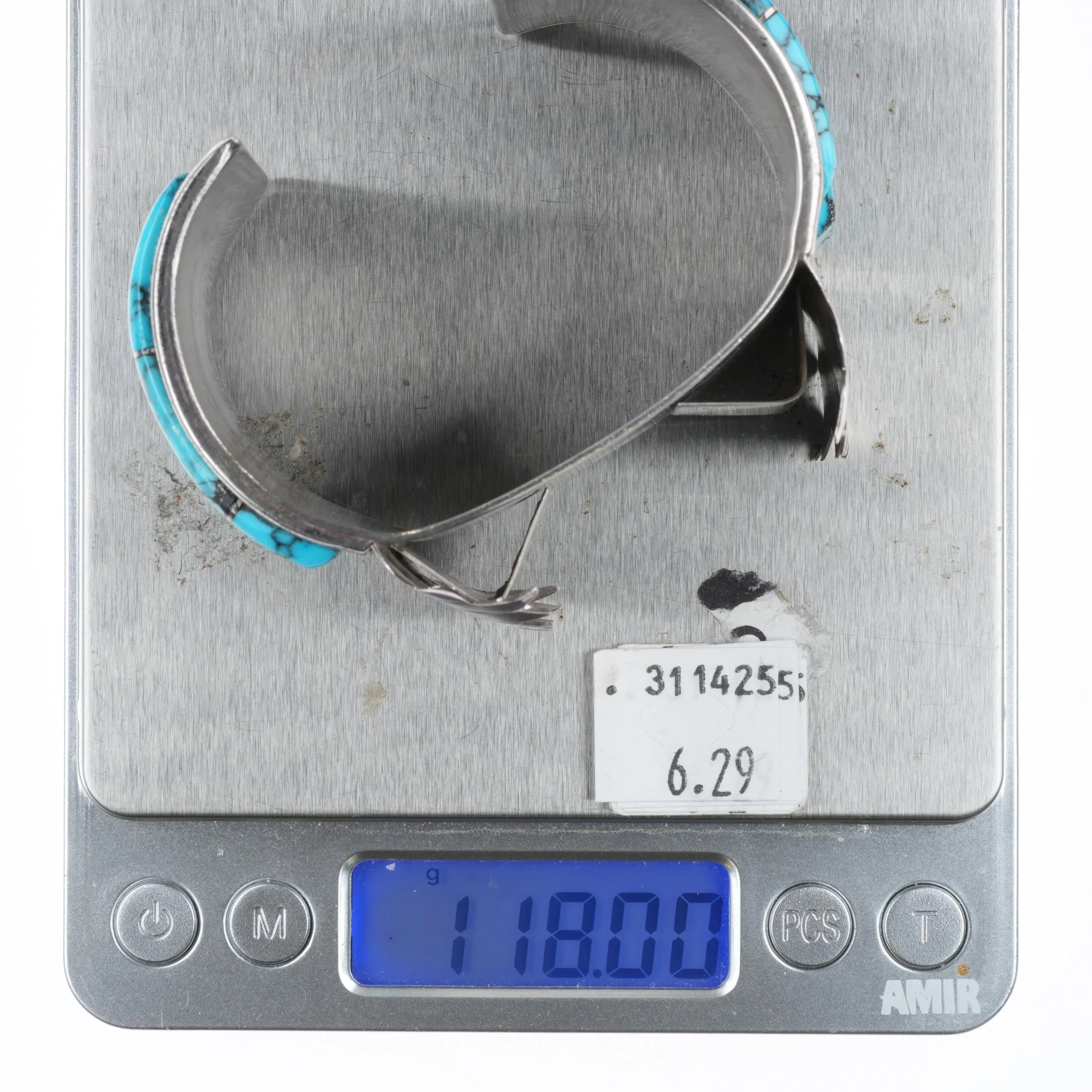 6.75" Vintage Navajo sterling silver spiderweb turquoise watch cuff bracelet
