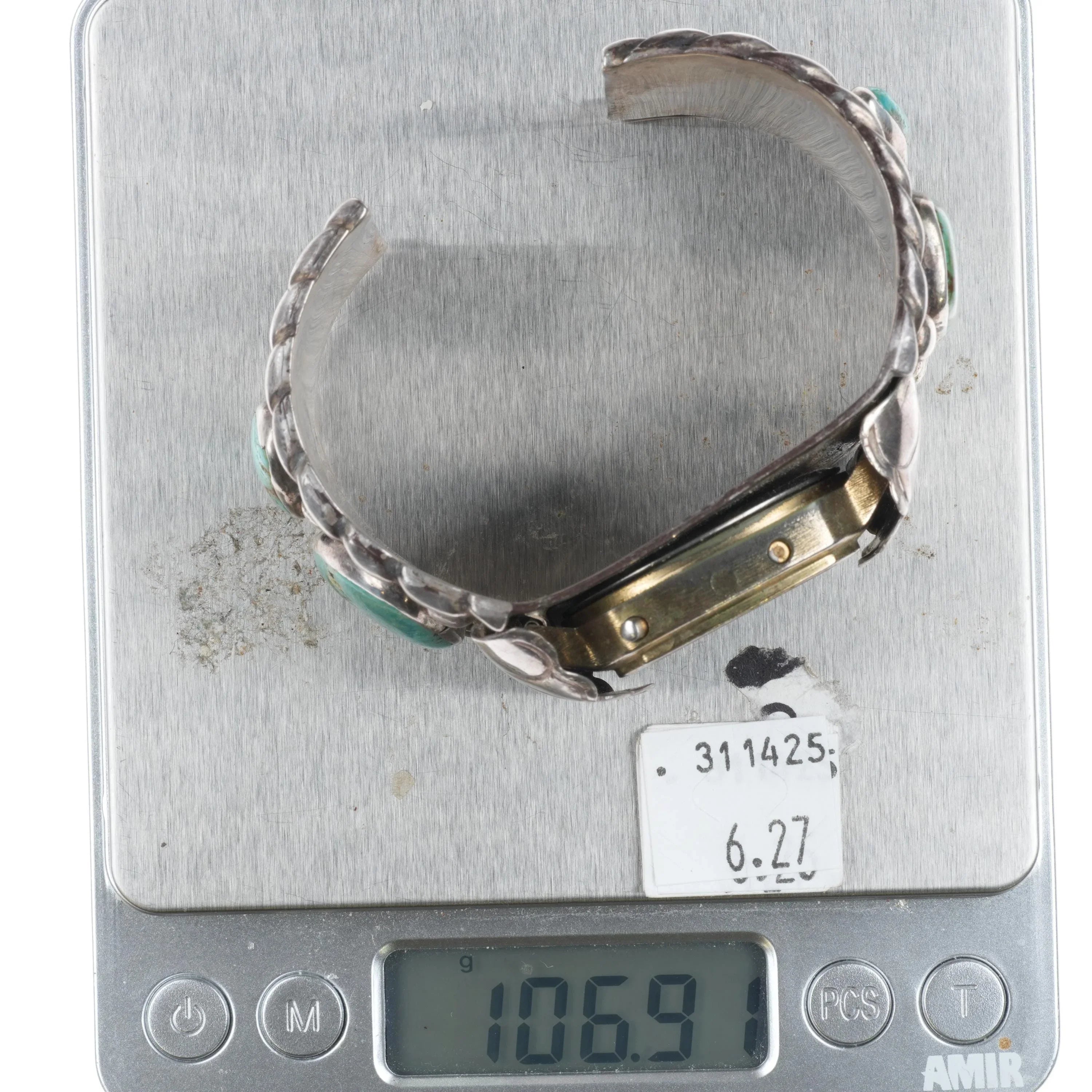 6.75" Vintage Navajo sterling silver/turquoise watch cuff bracelet TI Digital. Selling the watch bracelet shown, tested and guaranteed solid sterling silver, circa 1970‘s-80‘s. Very clean with little wear, one stone with tight old fracture, secure in bezel.. Weight and measurements in pictures. Watch untested, needs a battery at the least.