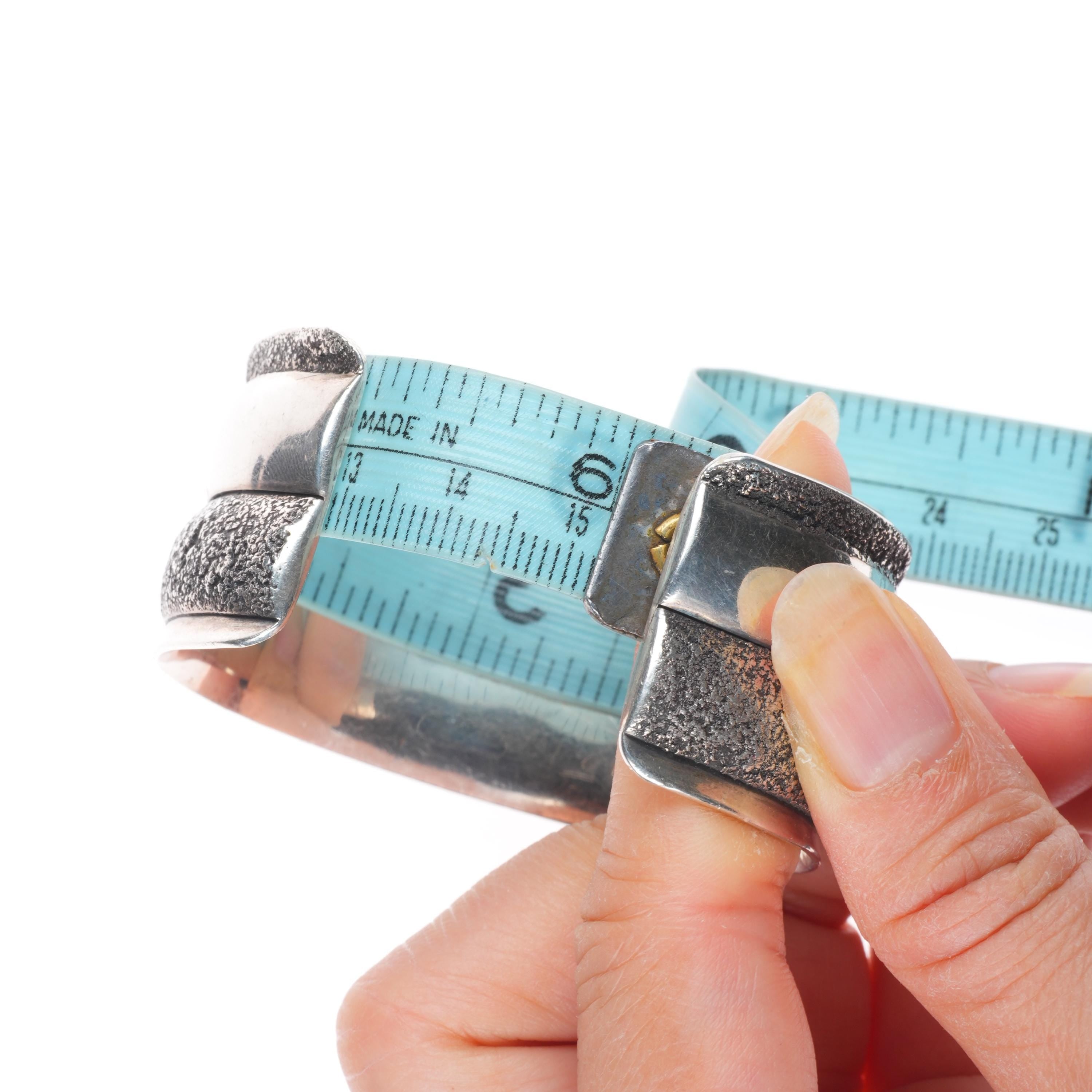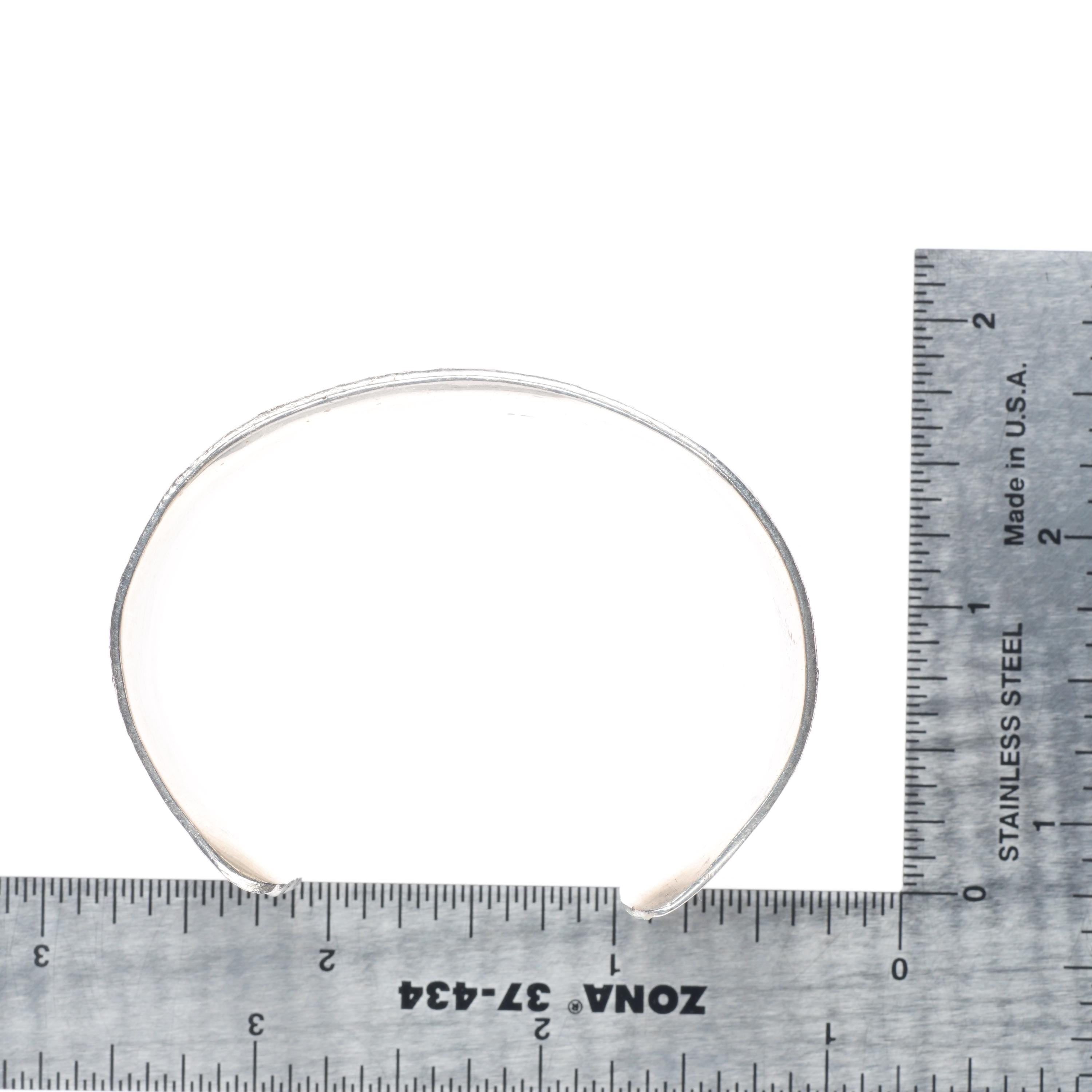 6" JB Southwestern modernist sterling silver cast cuff bracelet Native American. Tested and guaranteed solid sterling silver with weight and measurements in pictures. Circa last quarter of the 20th century. Fits up to a 6" wrist.