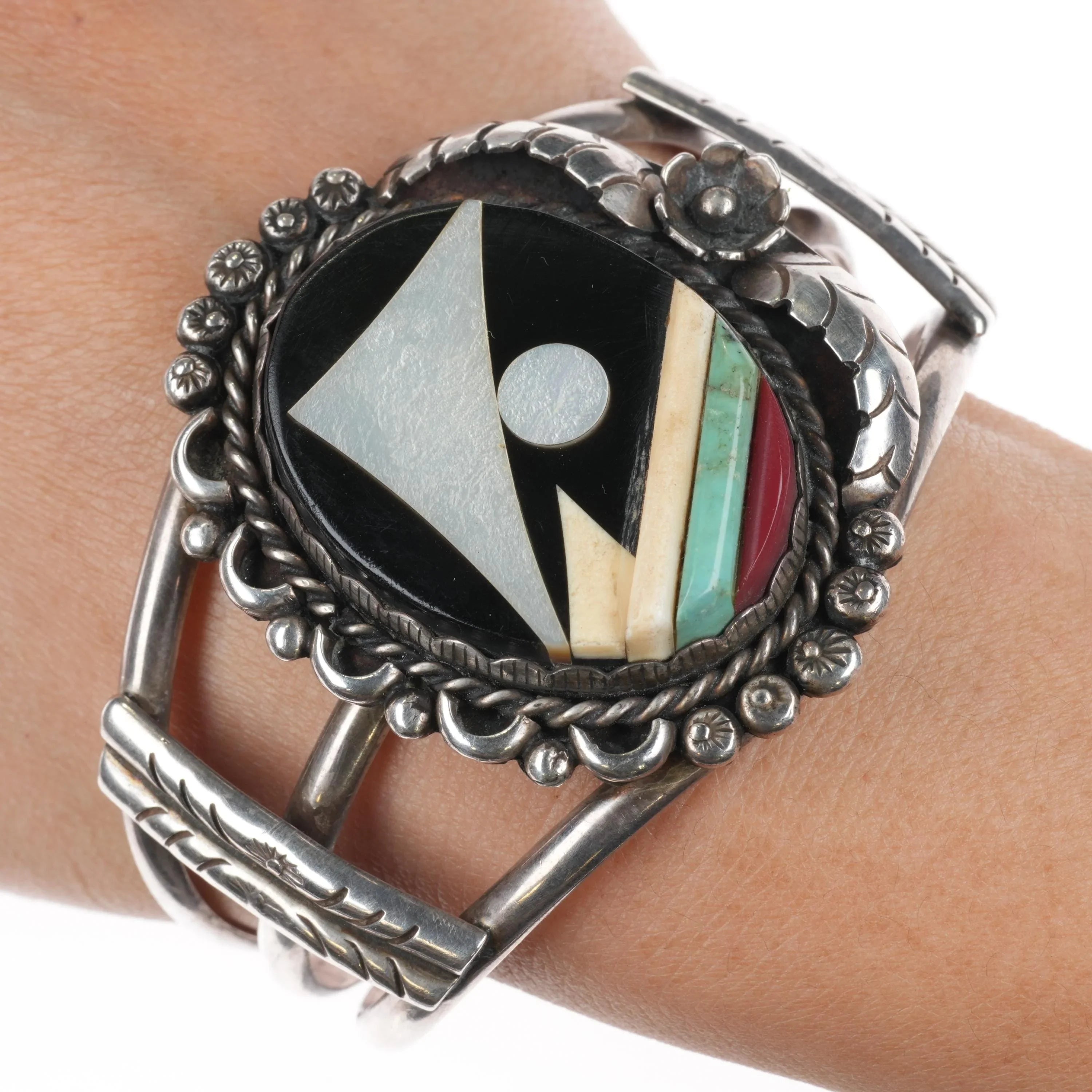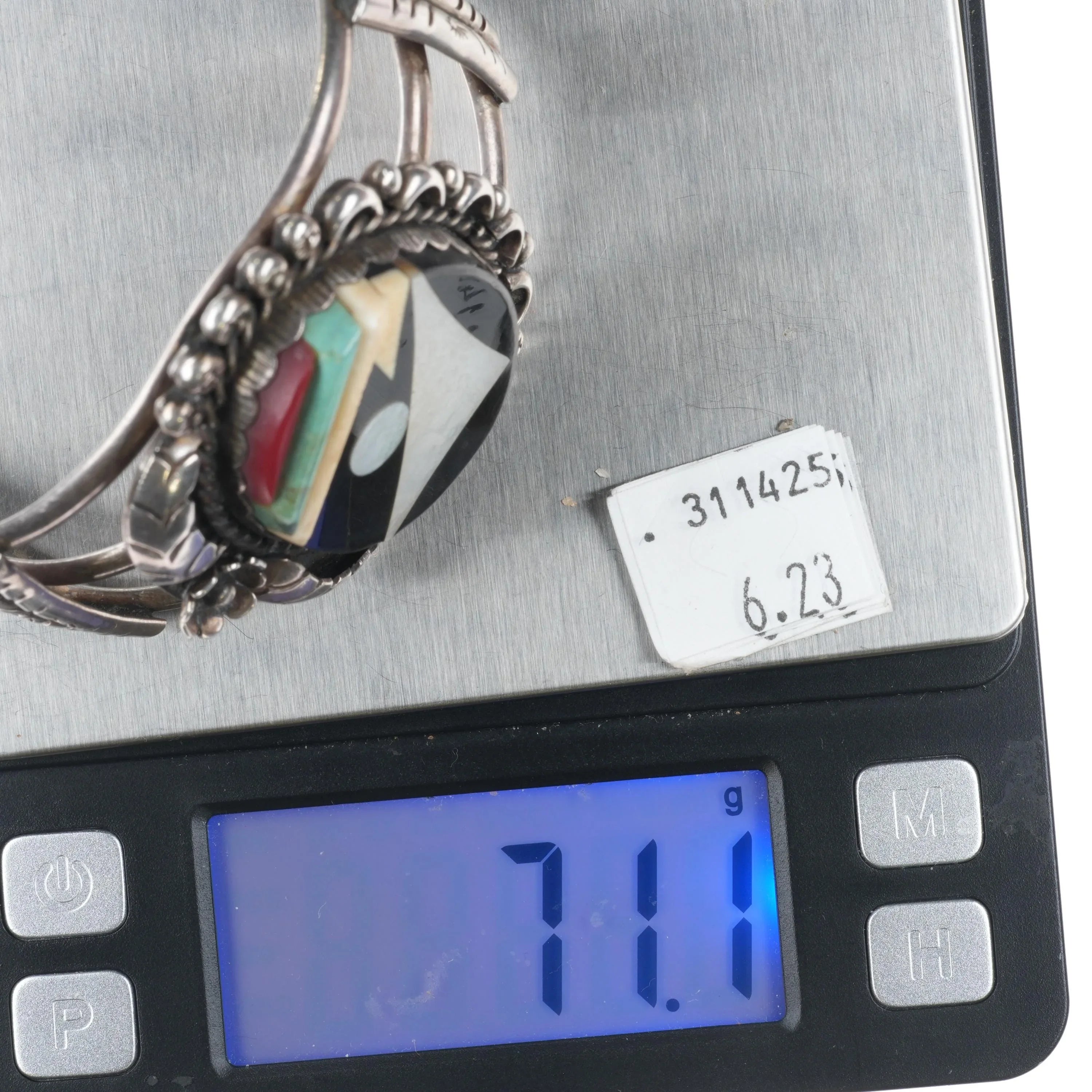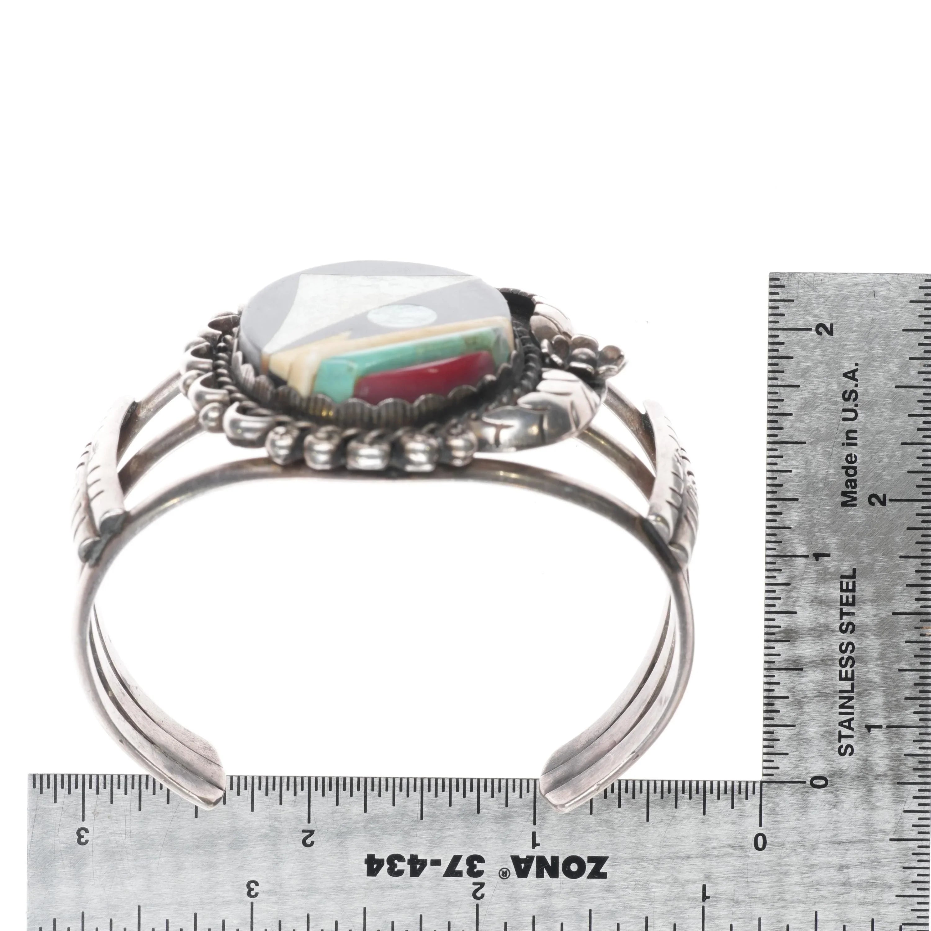 7.1" Vintage Navajo sterling silver cobblestone/intarsia inlay cuff bracelet