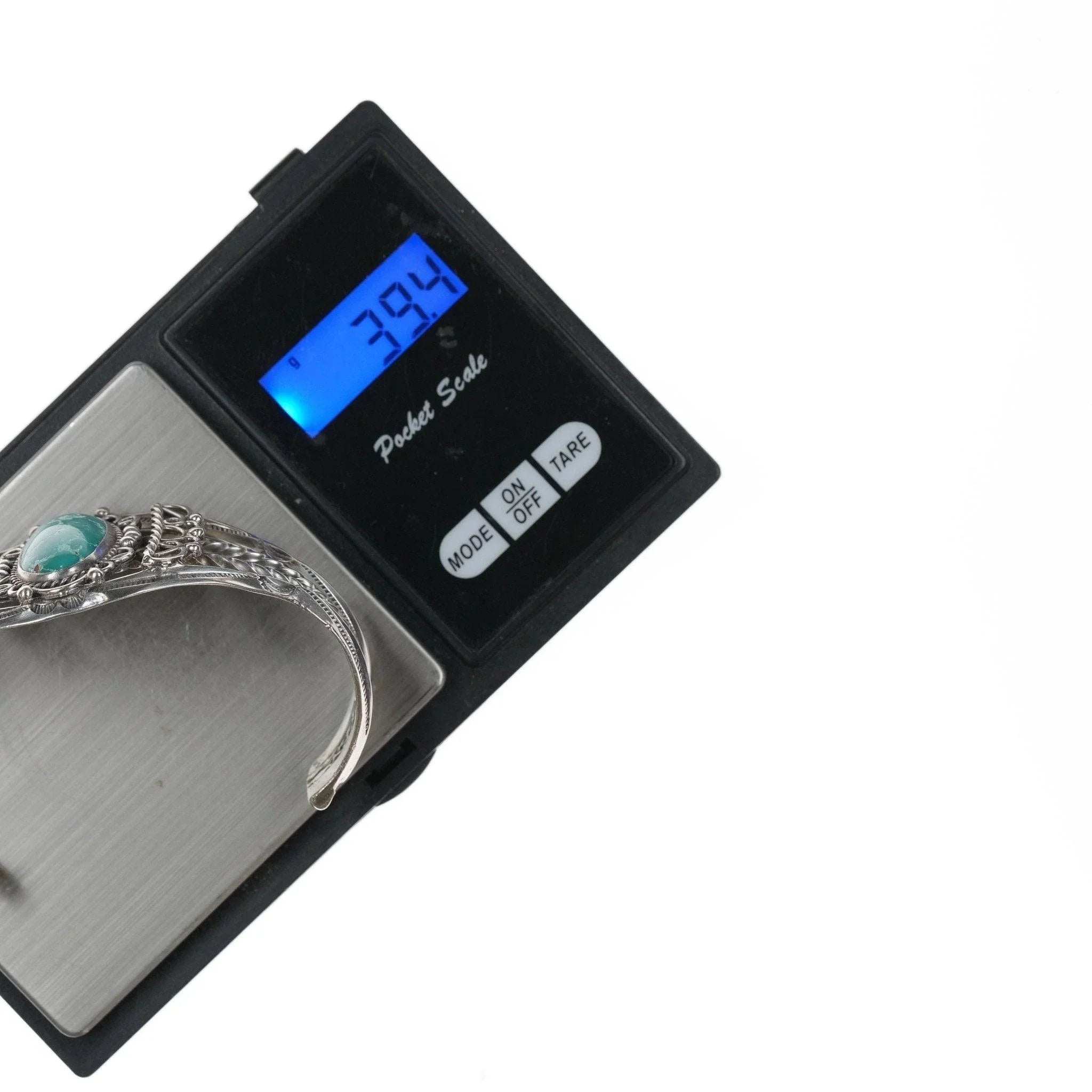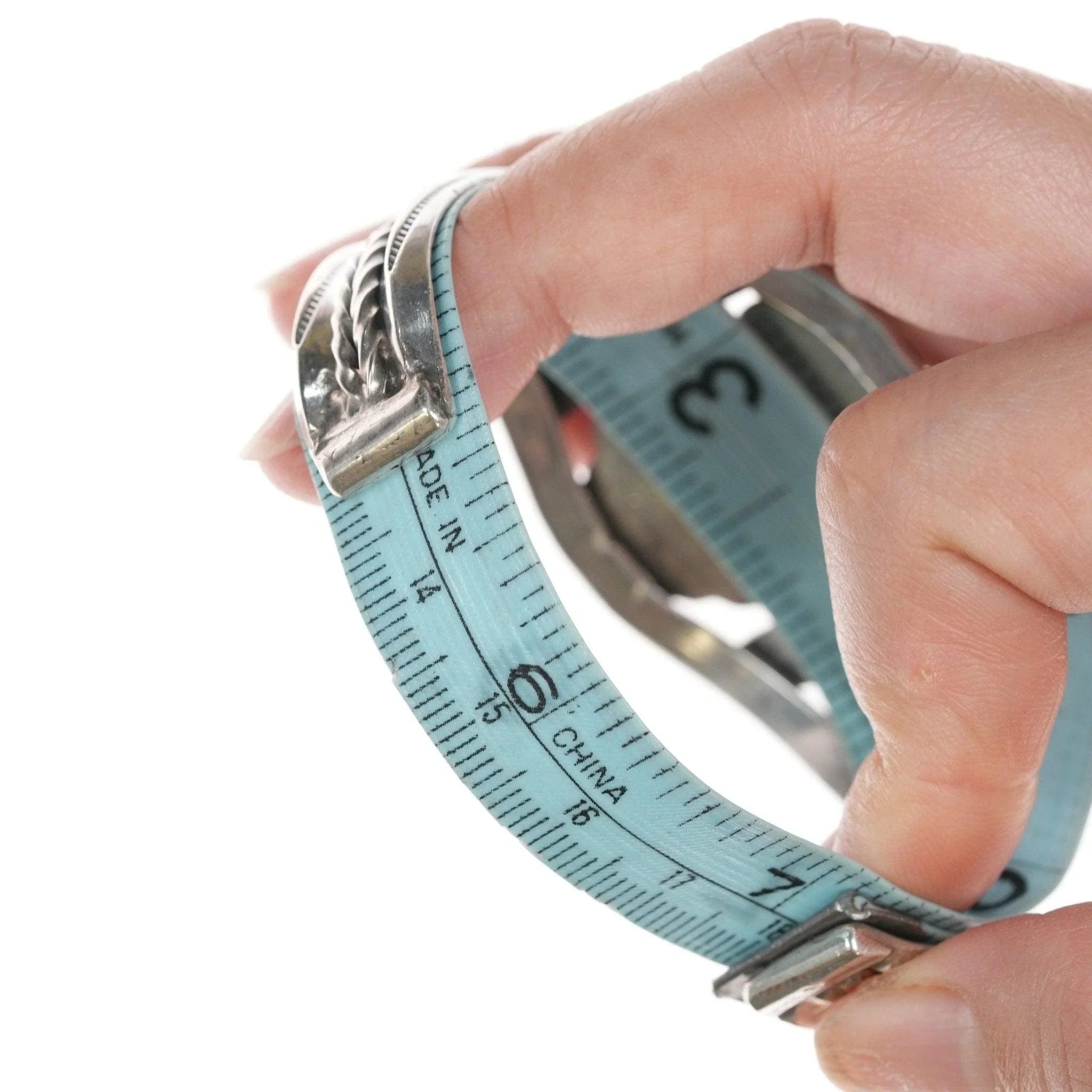 すべての貴金属は検査され、保証されています。シルバーまたはスターリングと呼ばれるネイティブ アメリカンのジュエリーは、最低 90% (コイン) であることが保証されています。 ) シルバー、およびおそらくより高い含有量。ほとんどのカフ ブレスレットは 6 インチの女性の手首で撮影されており、金属の先端が巻尺の数字と一致する内周を示す写真が含まれています。