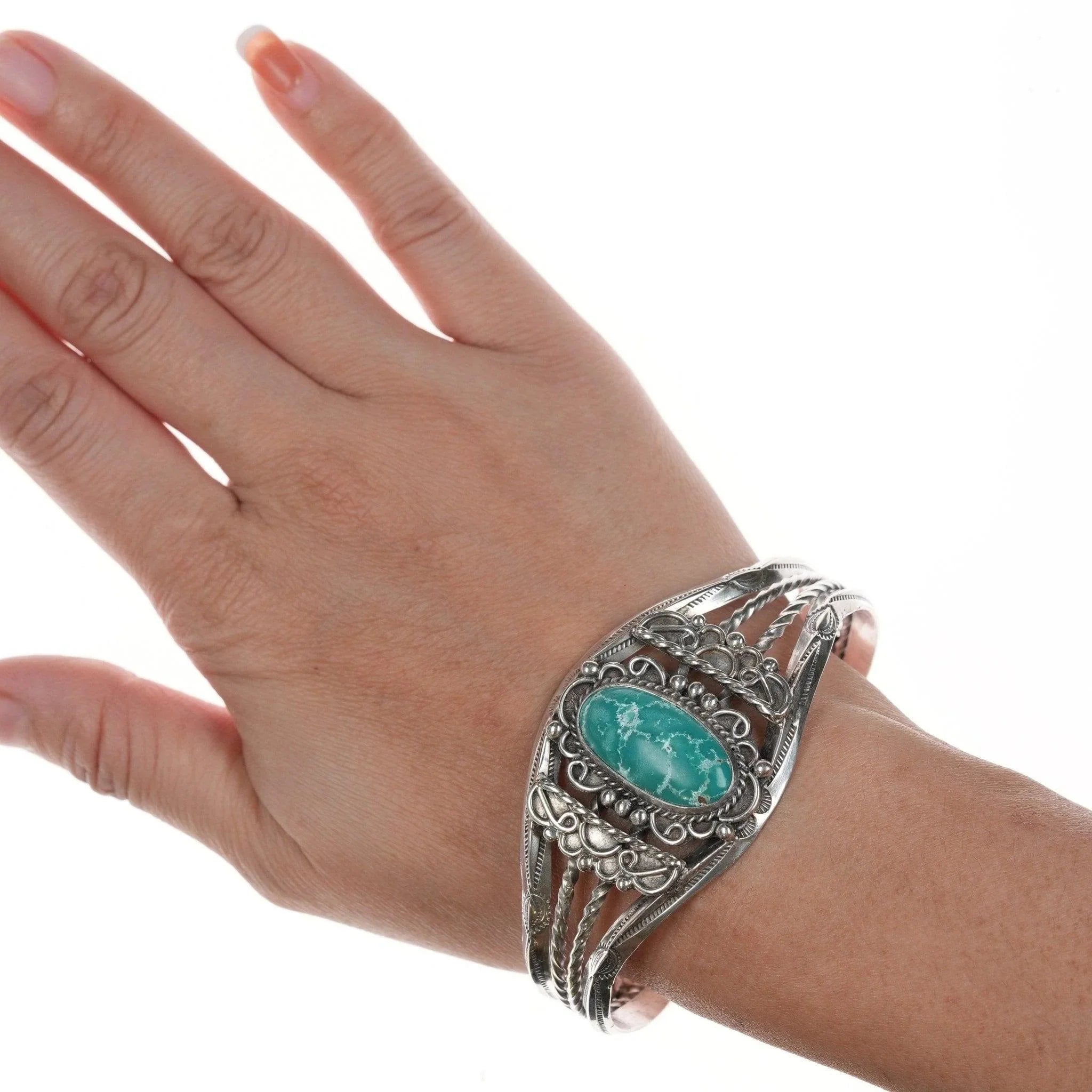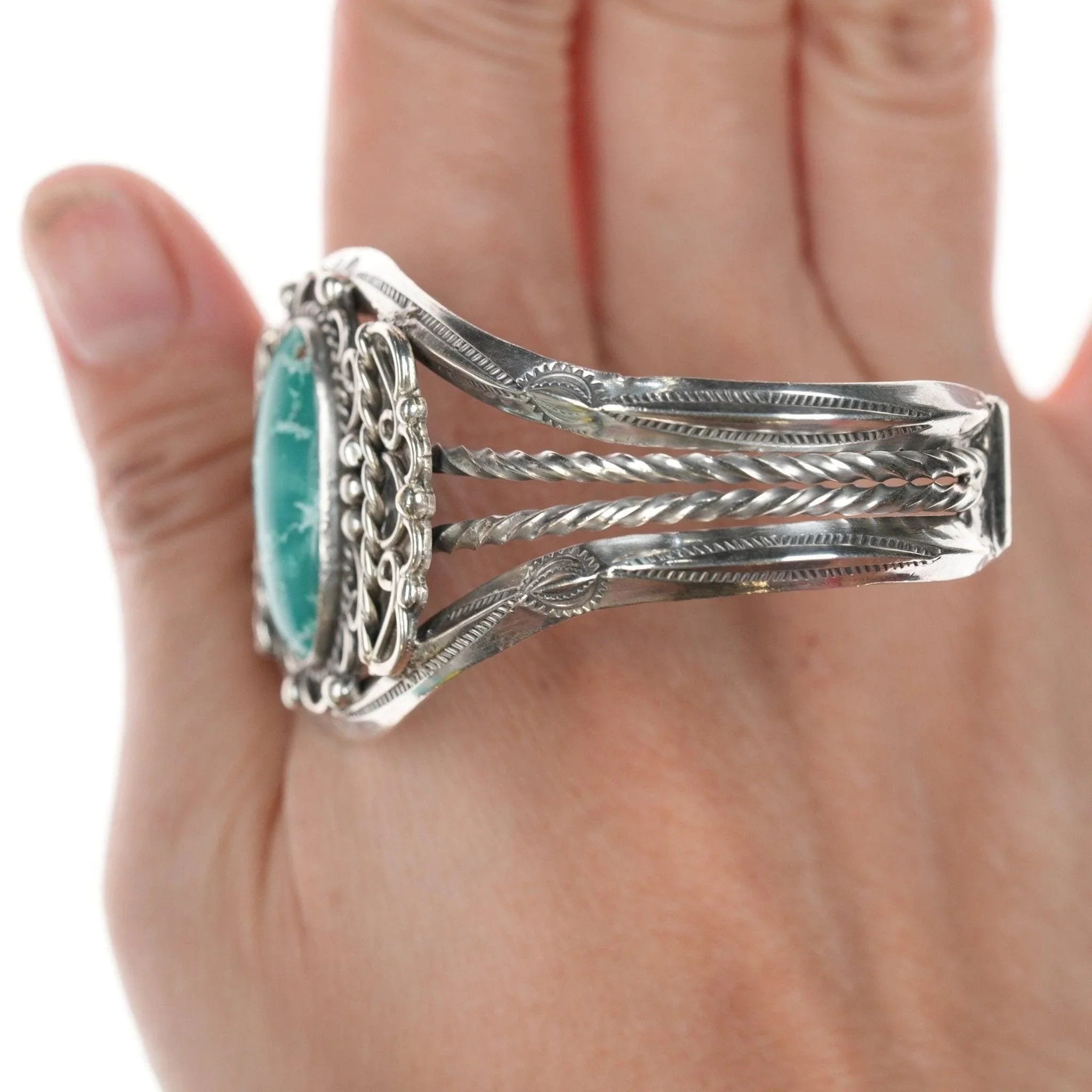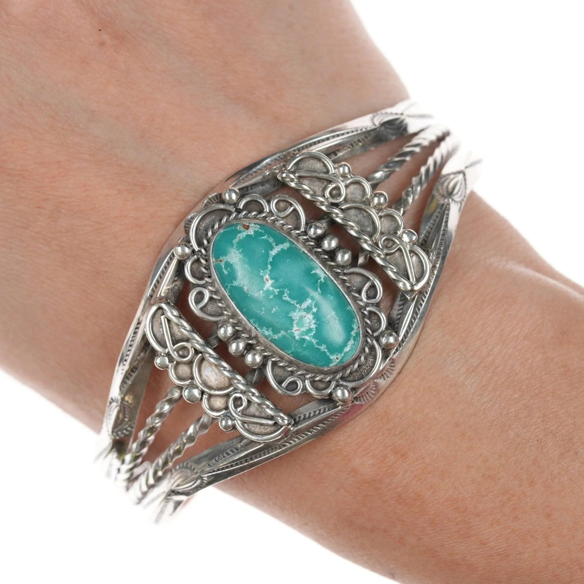 7 インチ 40 ~ 50 年代のナバホ族シルバーとターコイズ ブレスレット、中央幅 38 mm。