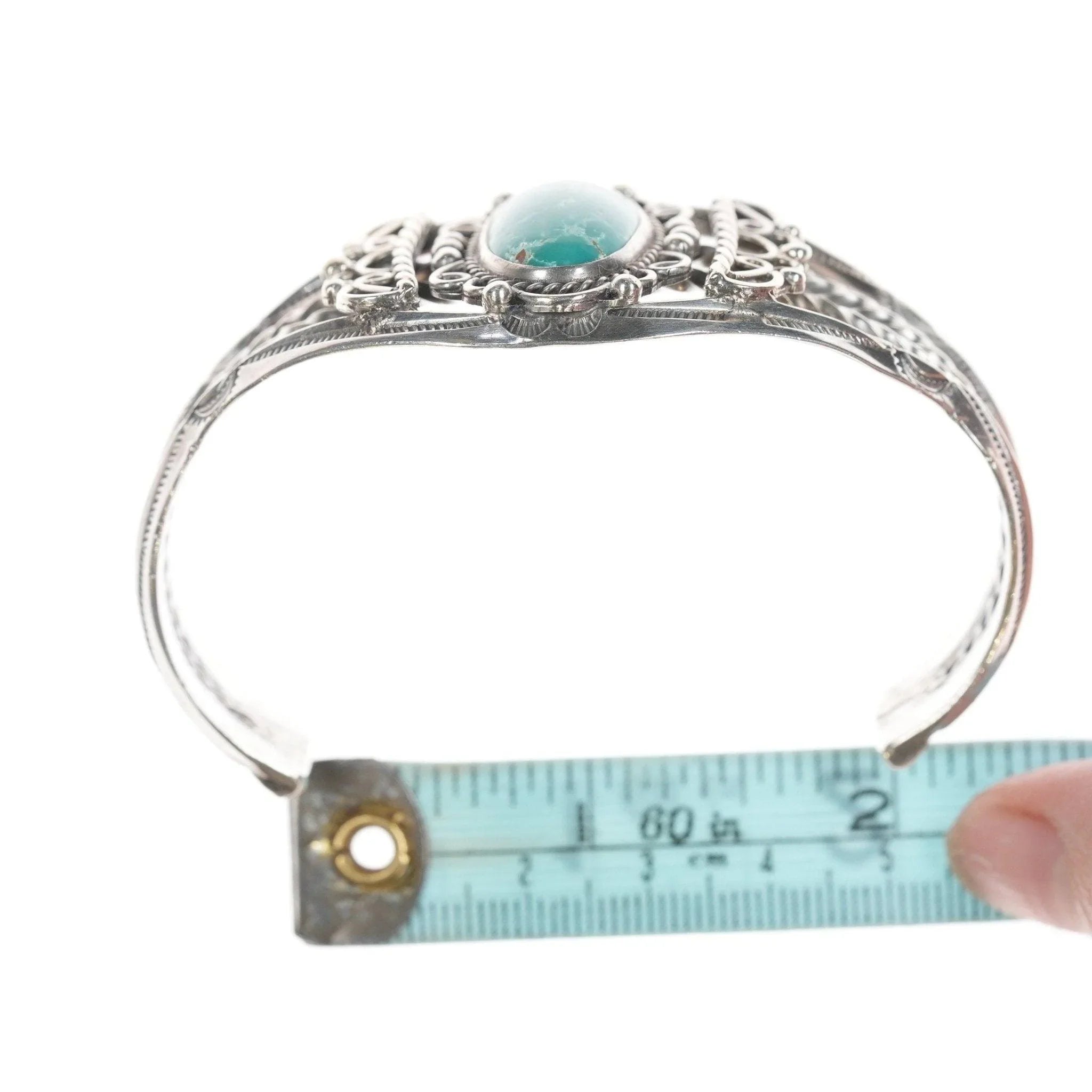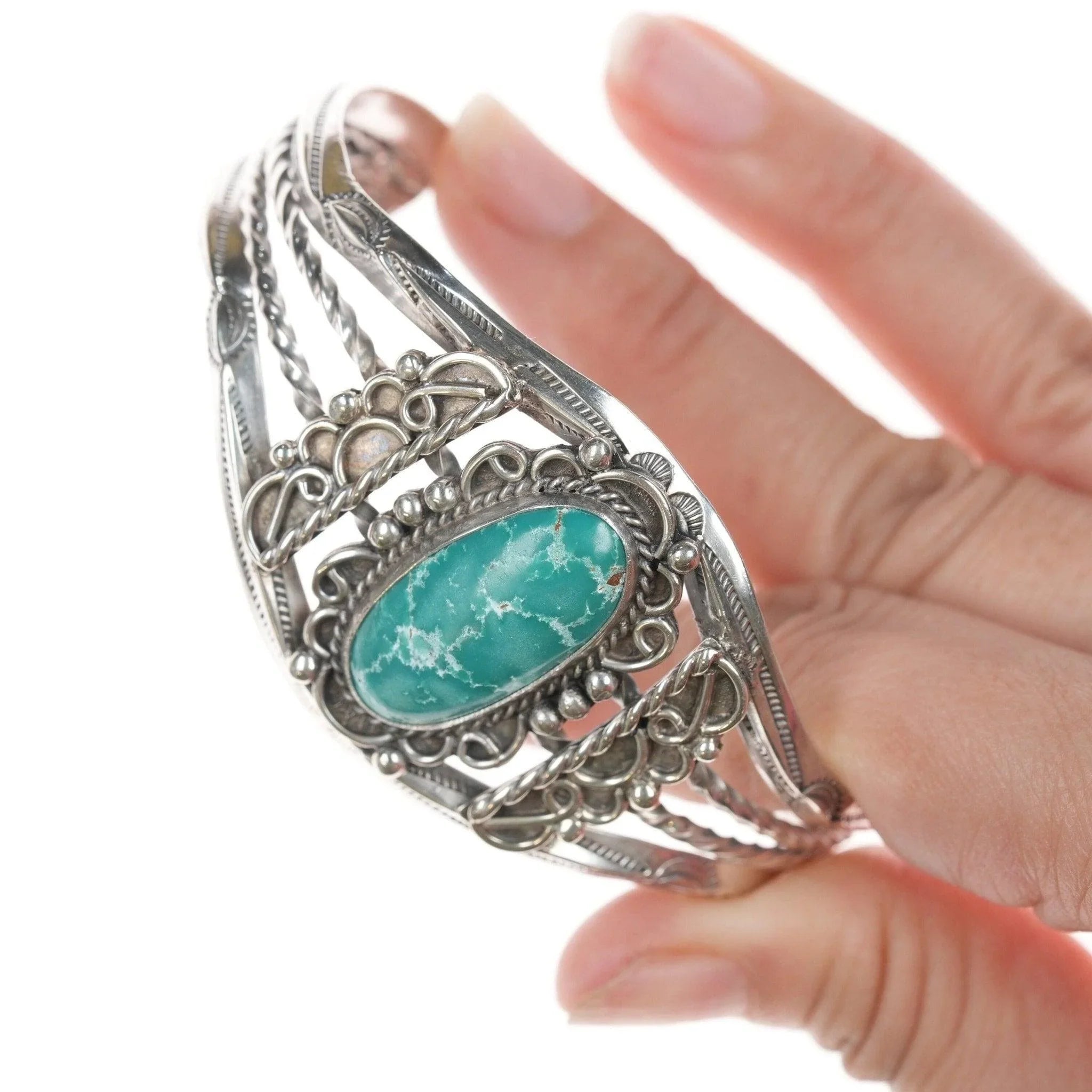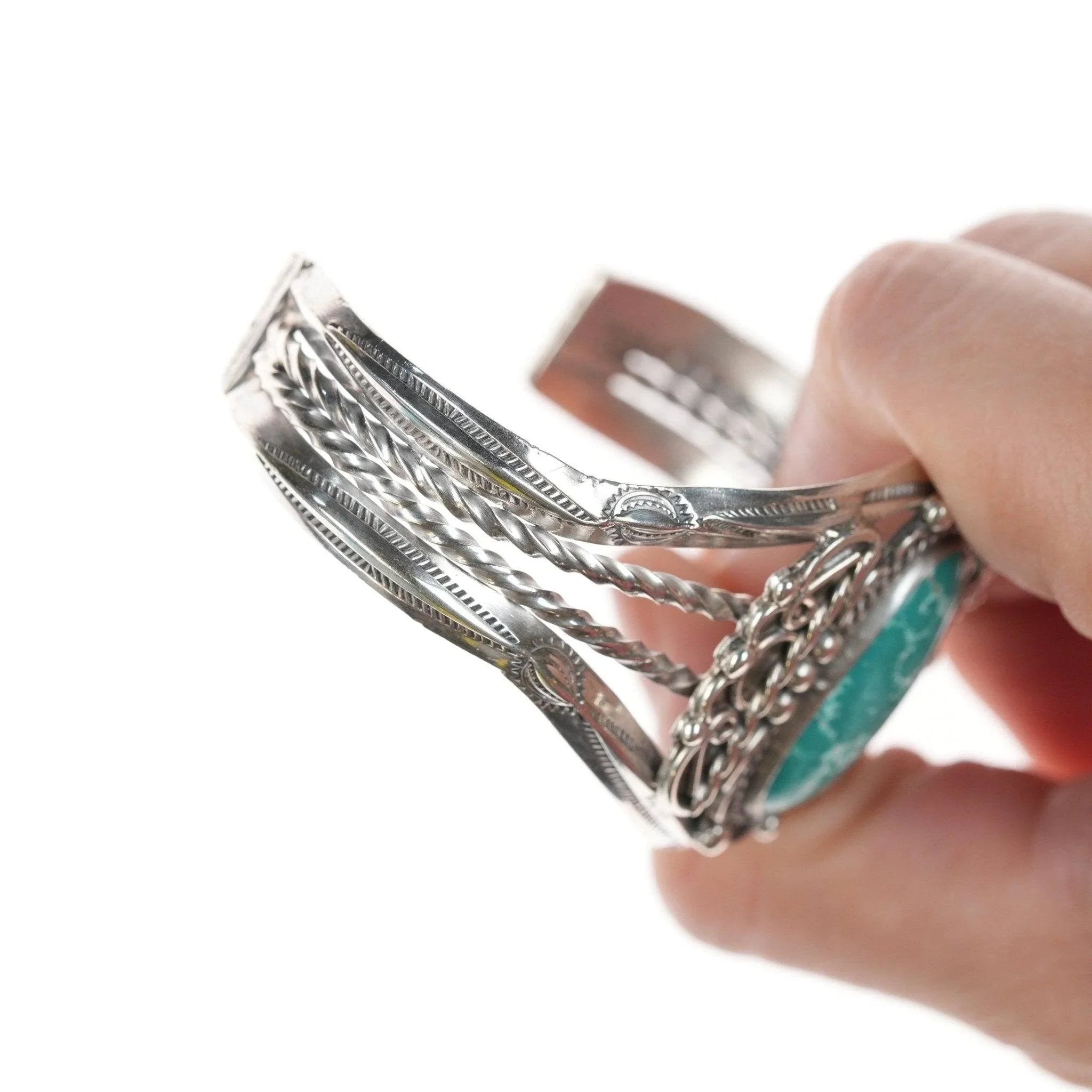 7 インチ 40 ~ 50 年代のナバホ族シルバーとターコイズ ブレスレット、中央幅 38 mm。