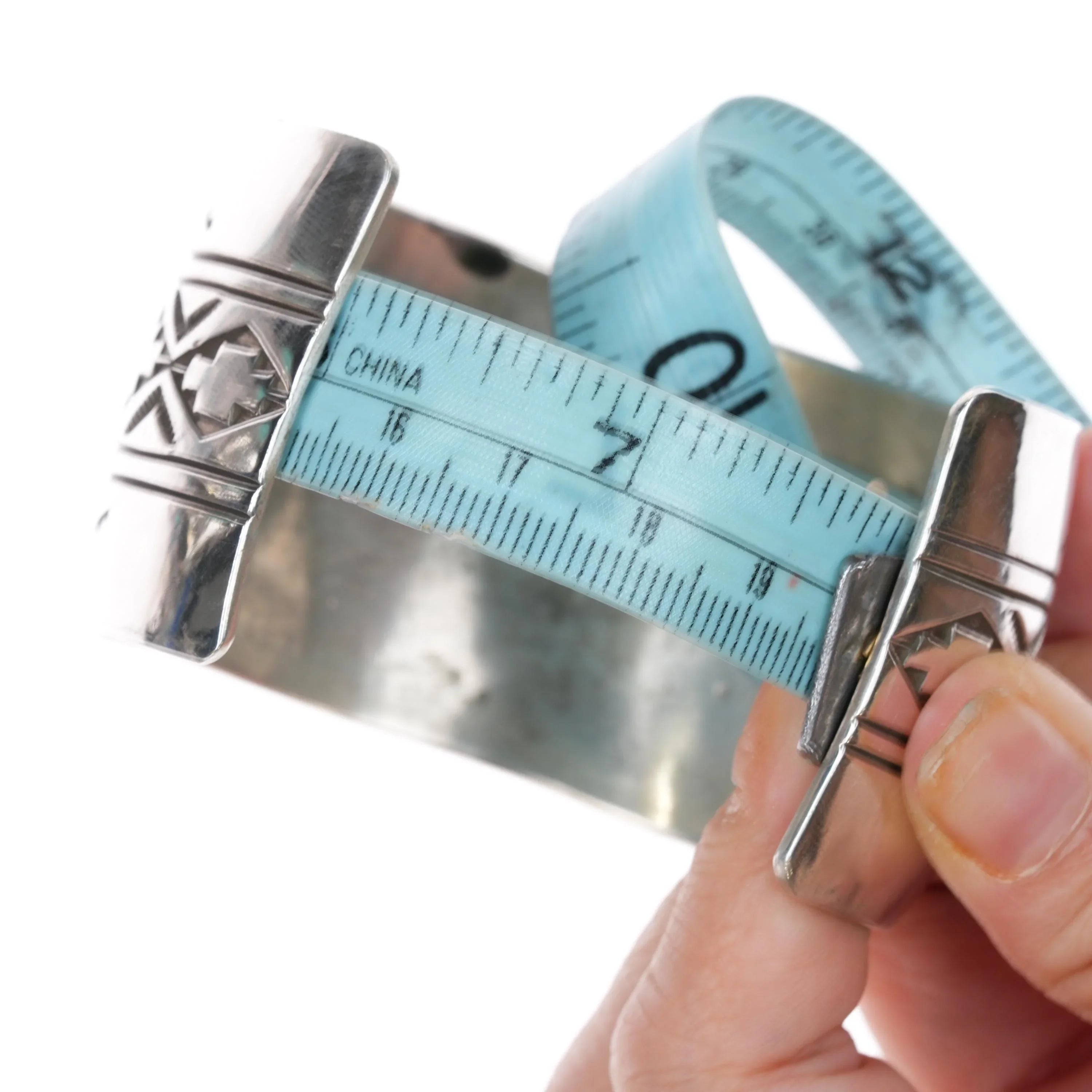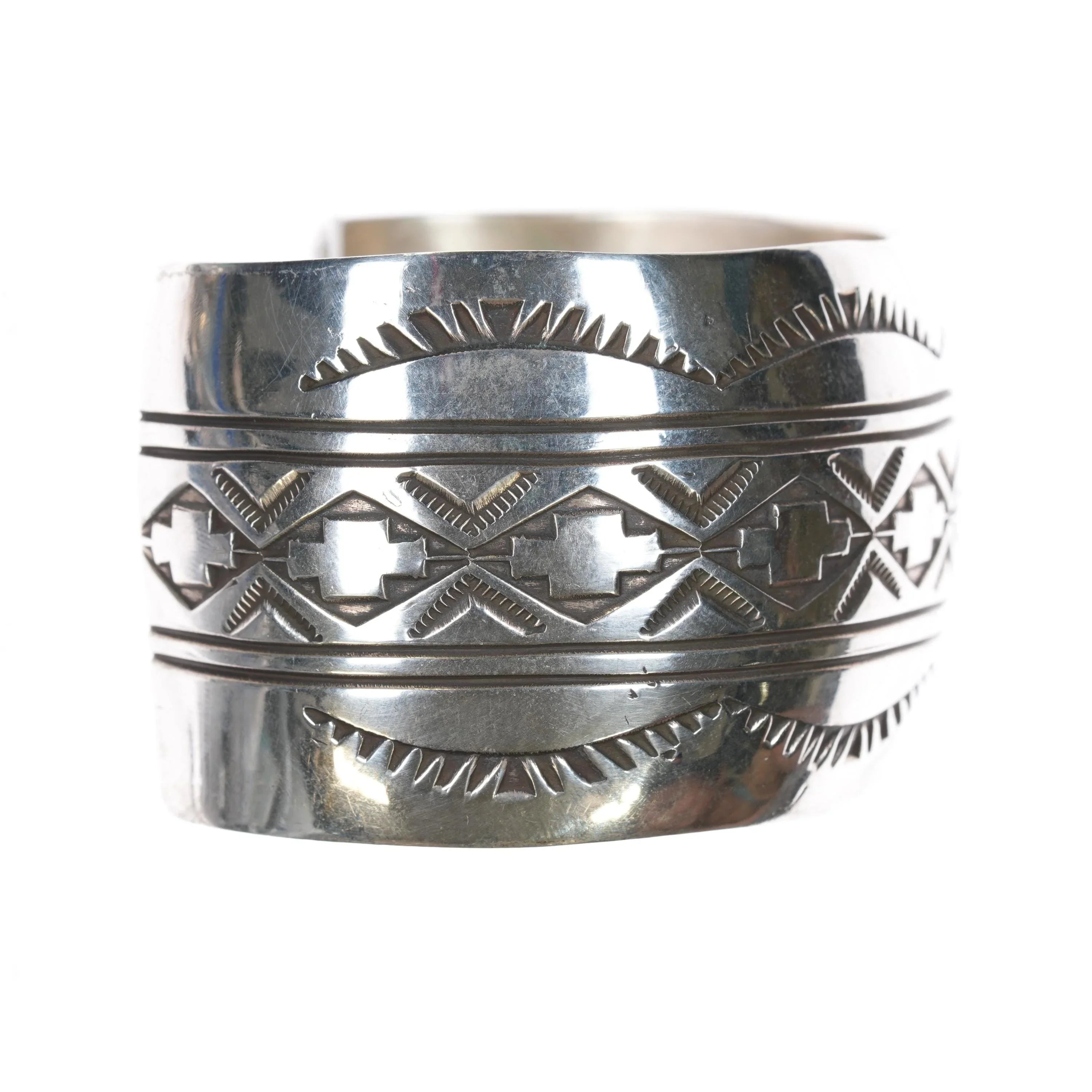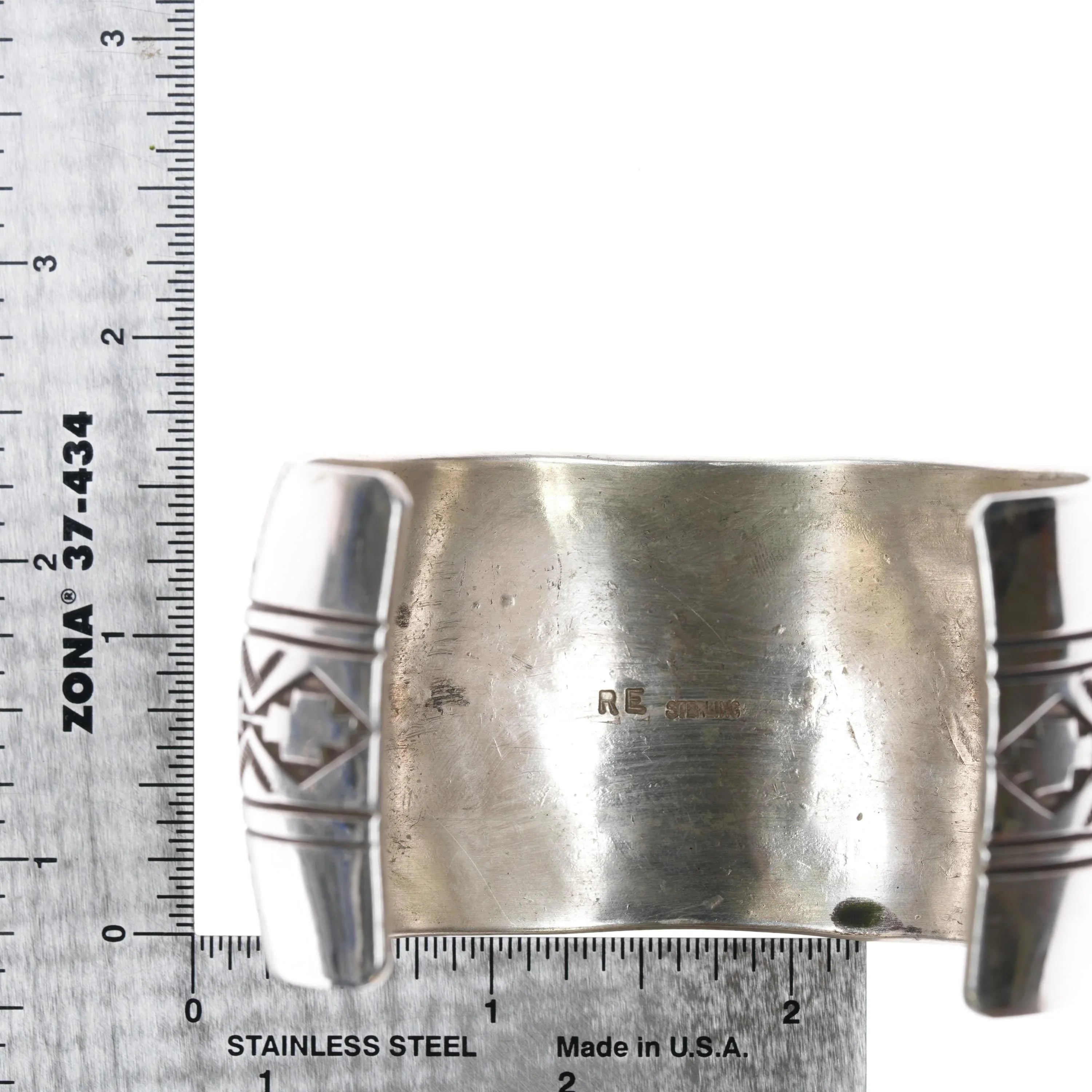 7.625" Rick Enriquez Navajo sterling heavily stamped silver wide cuff bracelet