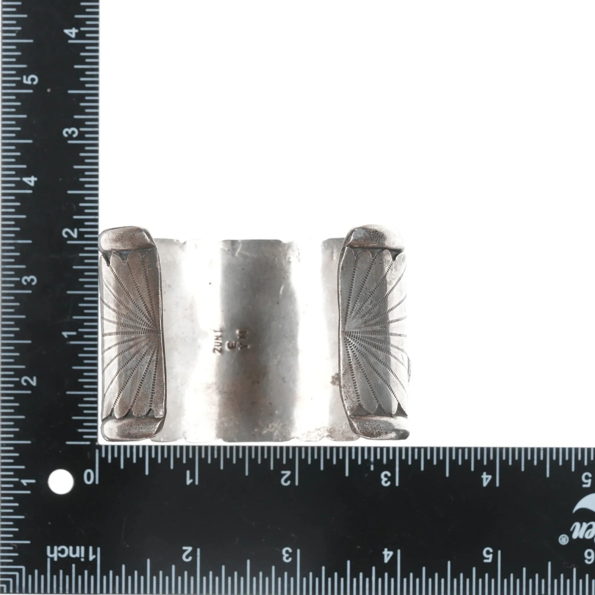 7.5" Eugene & Yvonne Mahooty Zuni Cuff bracelet with chunky turquoise. Fantastic tank of a bracelet c1970's.