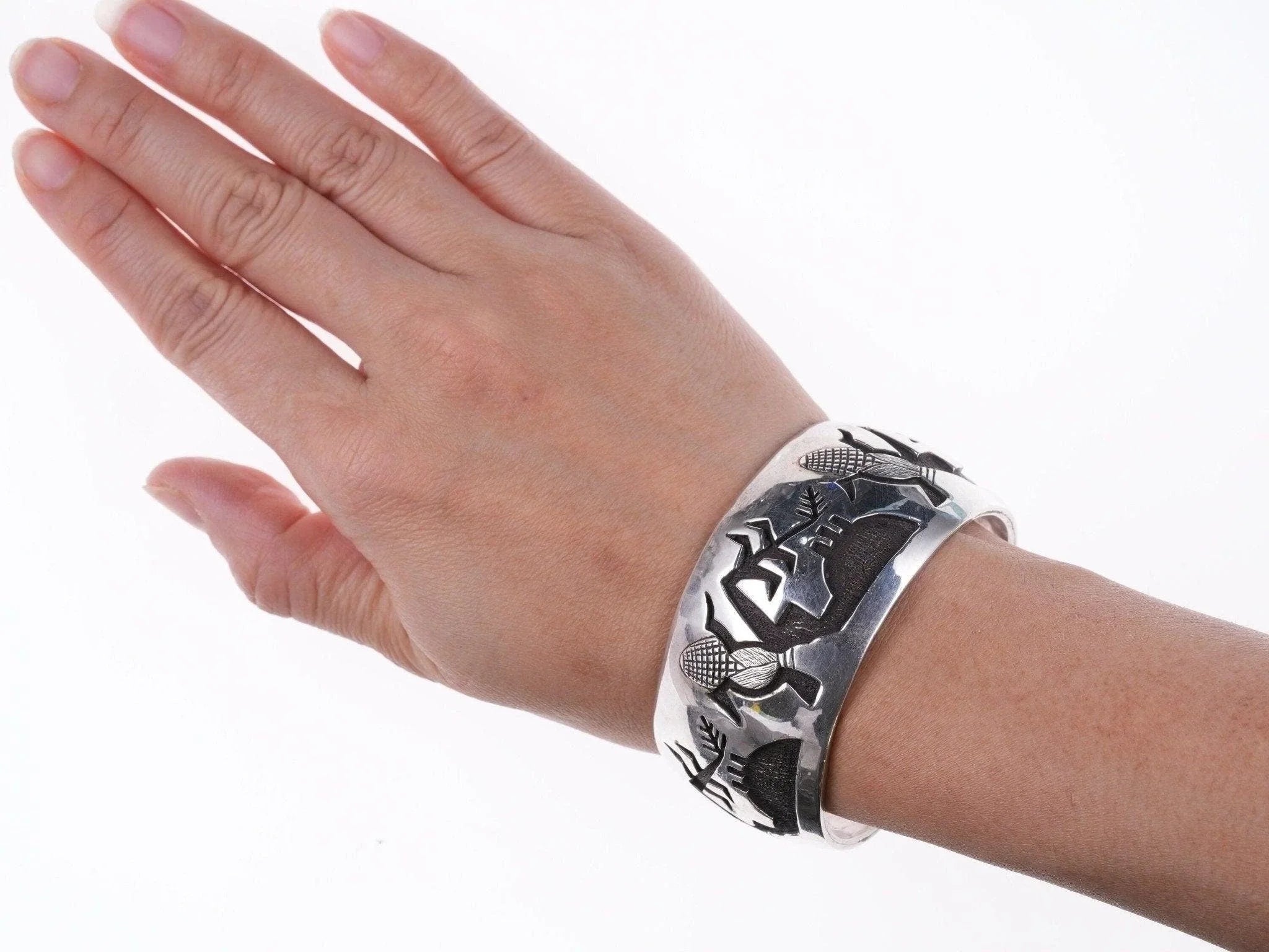 Roderick Tenorio (1955-2013), Santo Domingo Pueblo, Sterling silver Bracelet in the overlay style Fits up to a 7" wrist, this is the real deal, made by Roderick
