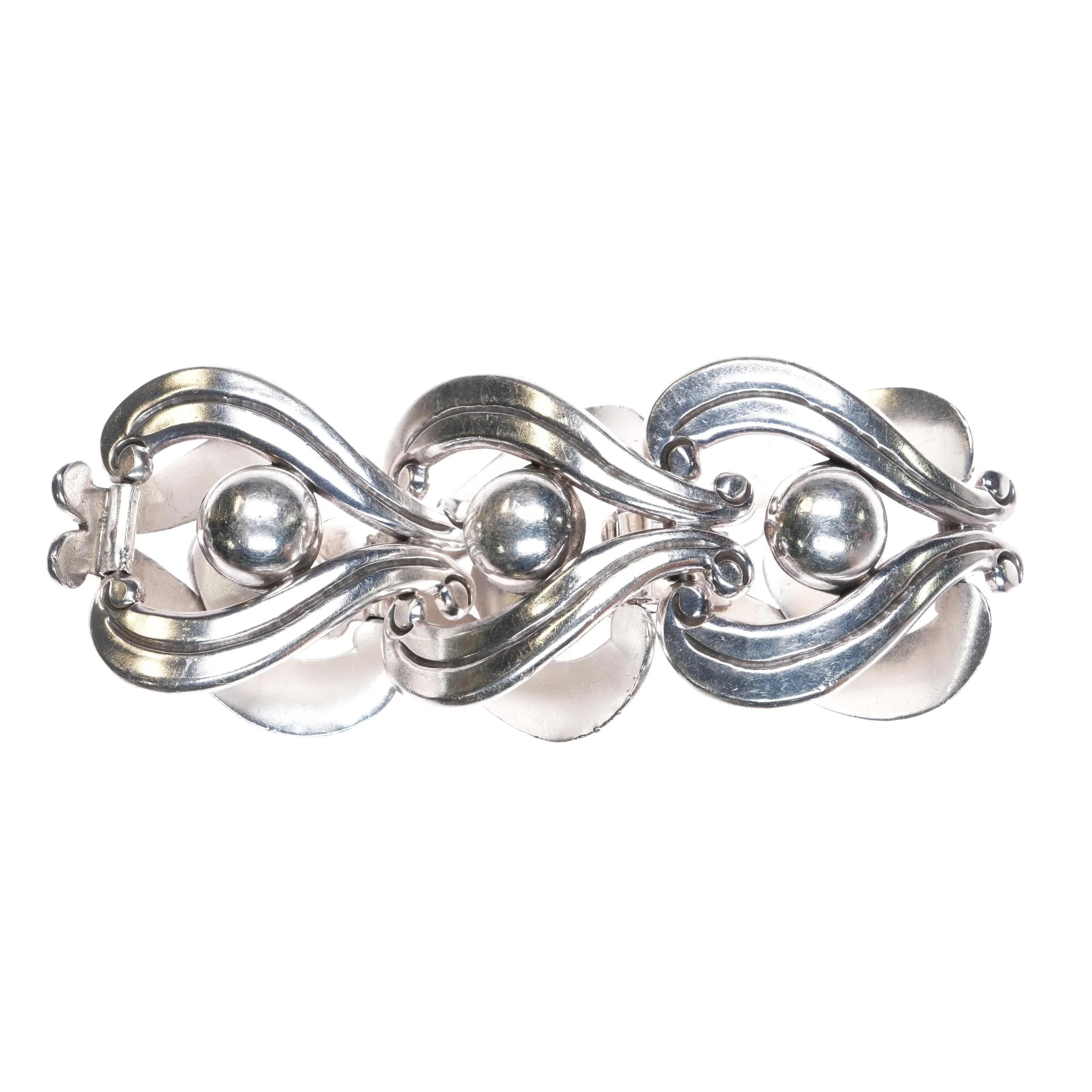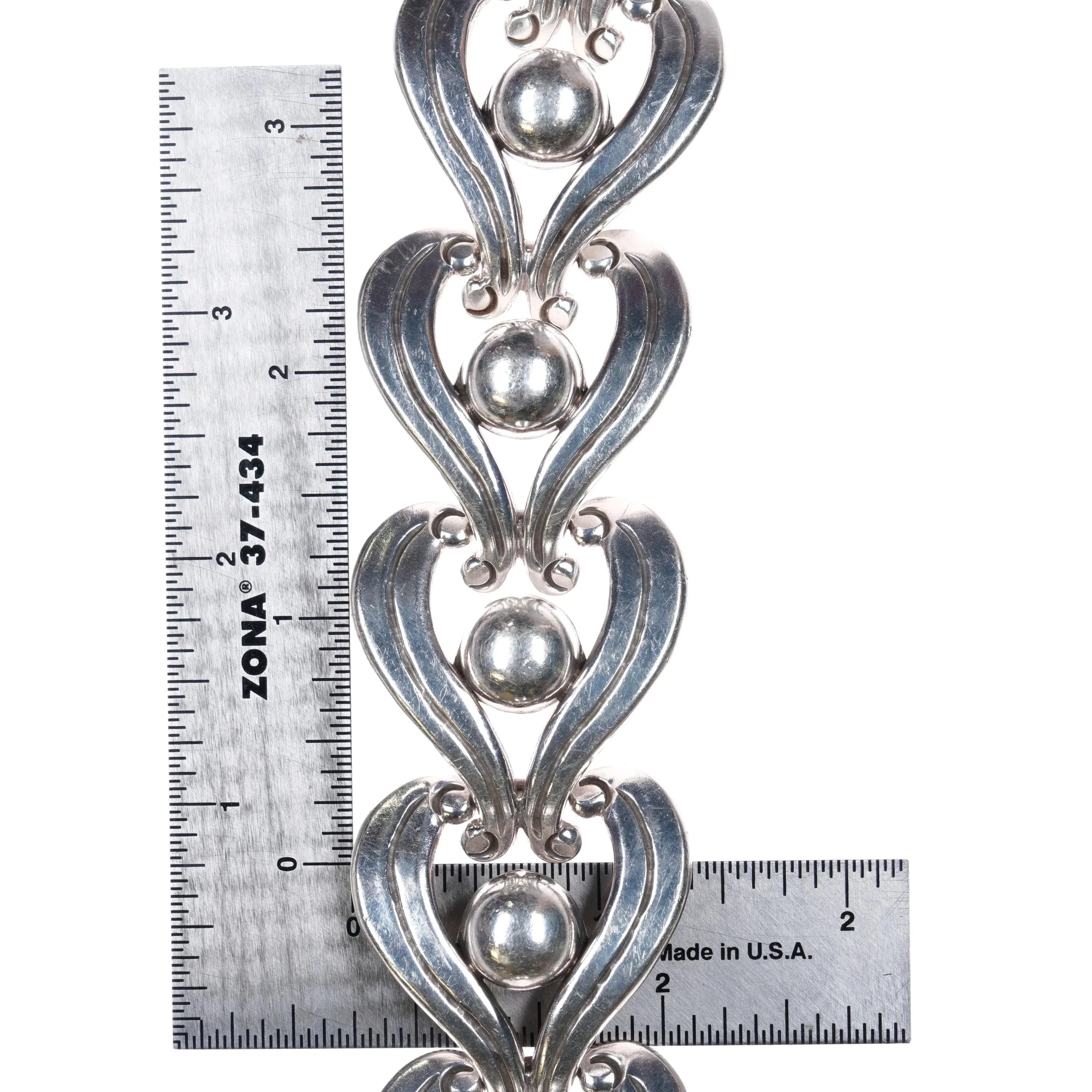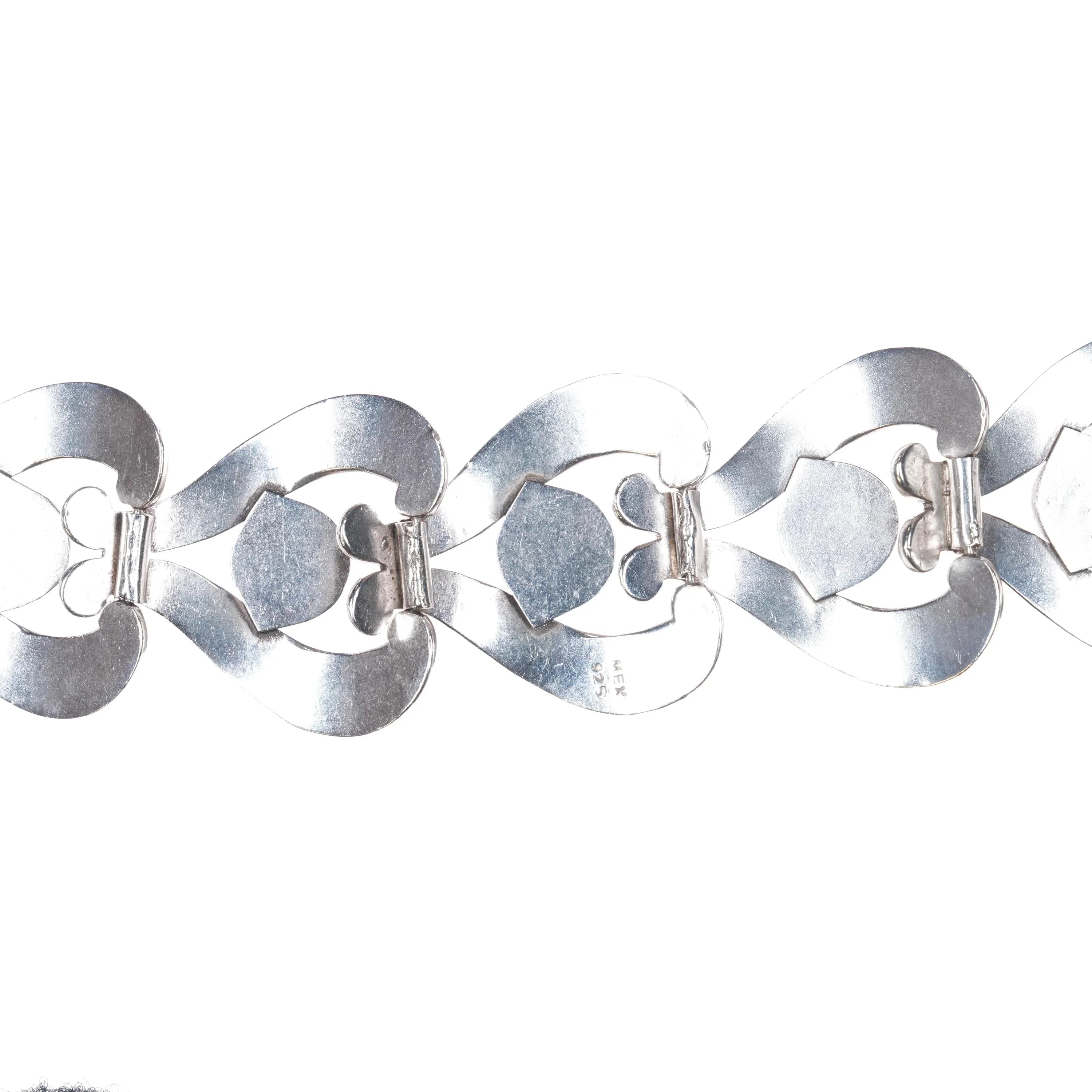 7" Vintage Mexican Modernist sterling silver link bracelet art deco MCM