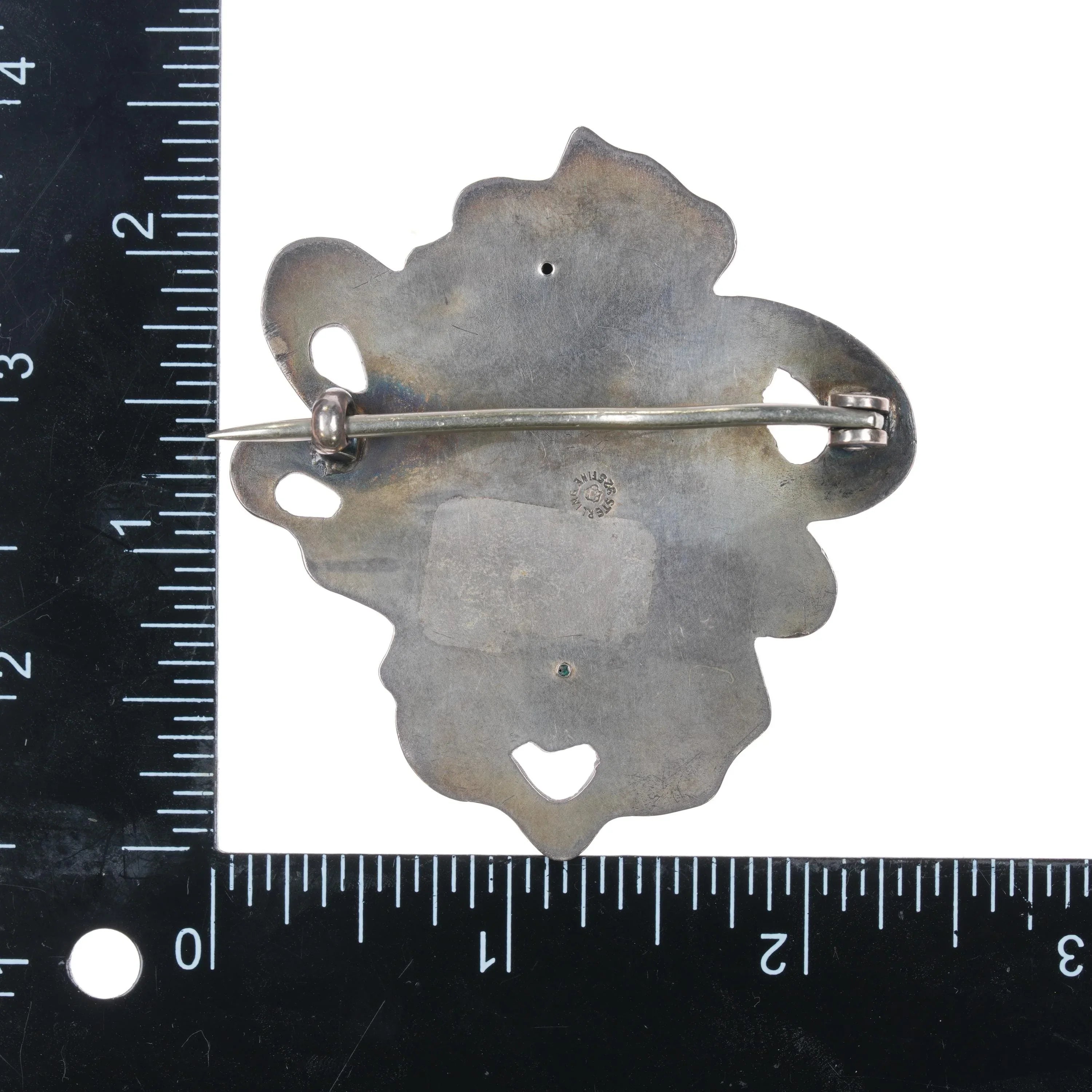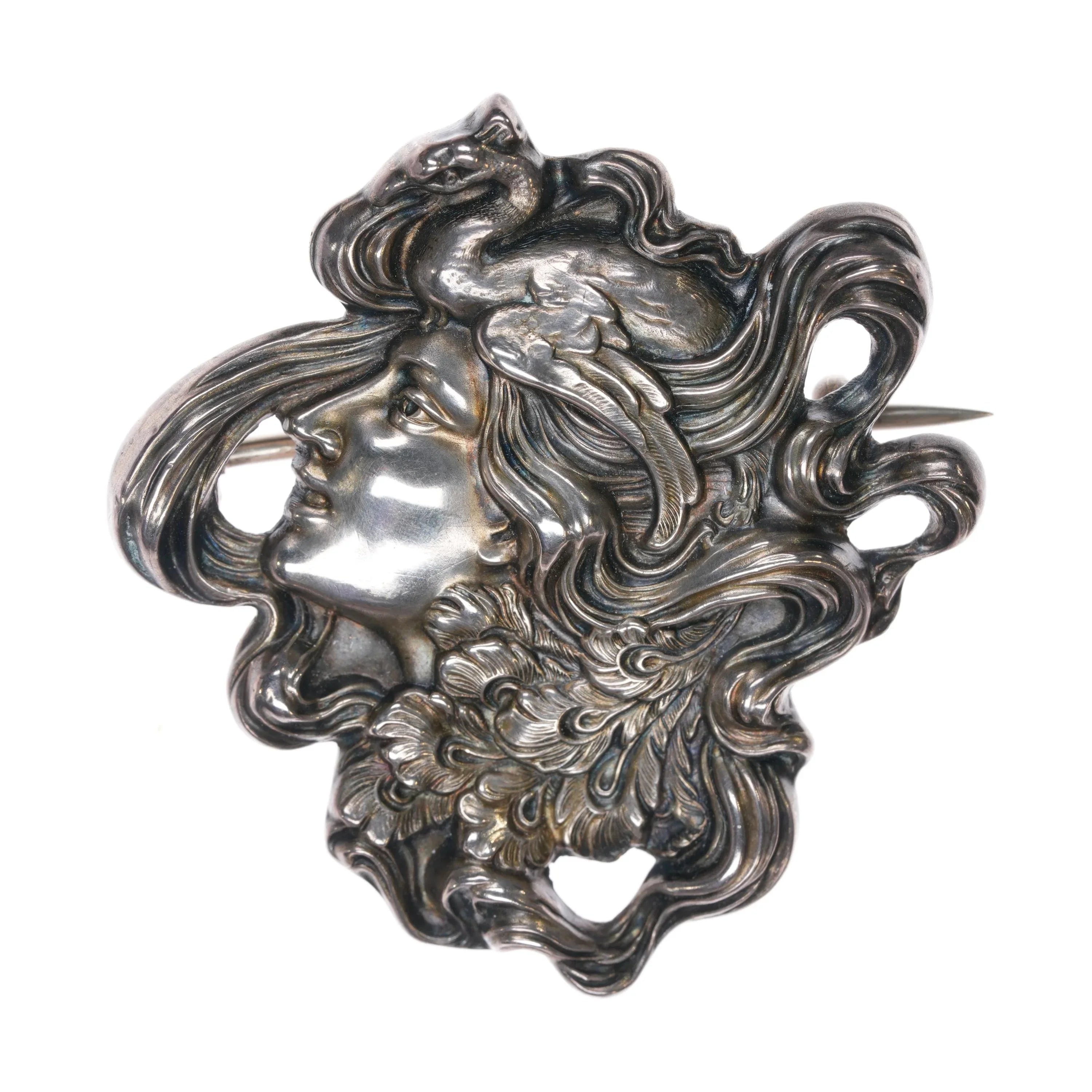 Antique Art Nouveau Sterling silver Unger Brothers woman pin flowing hair