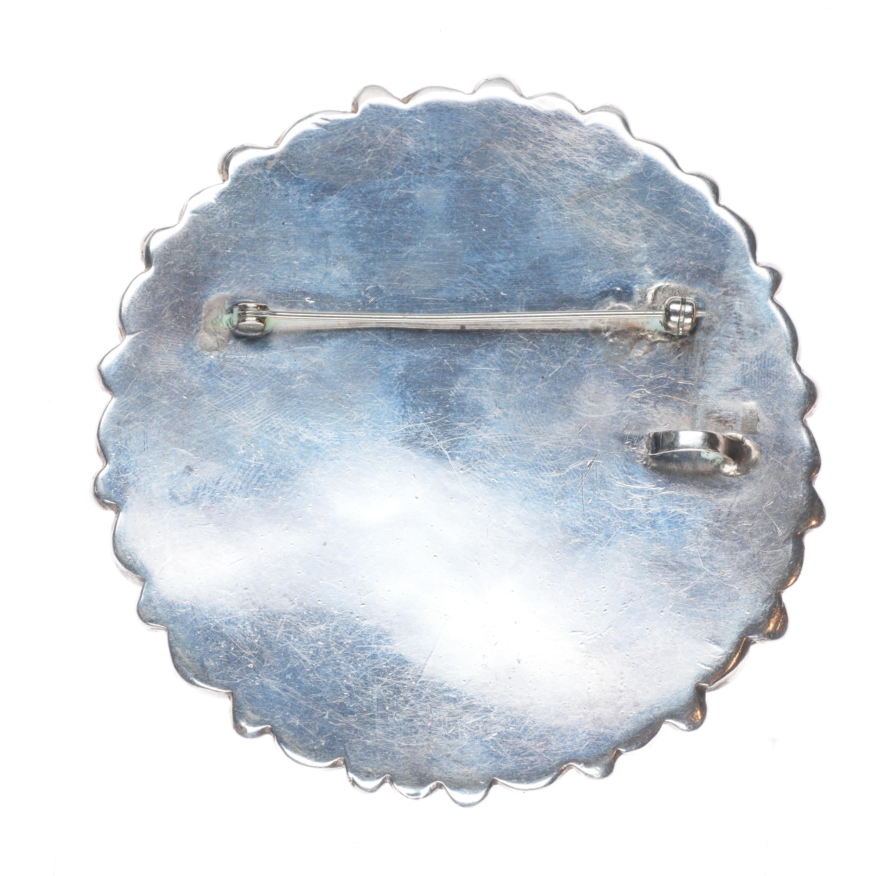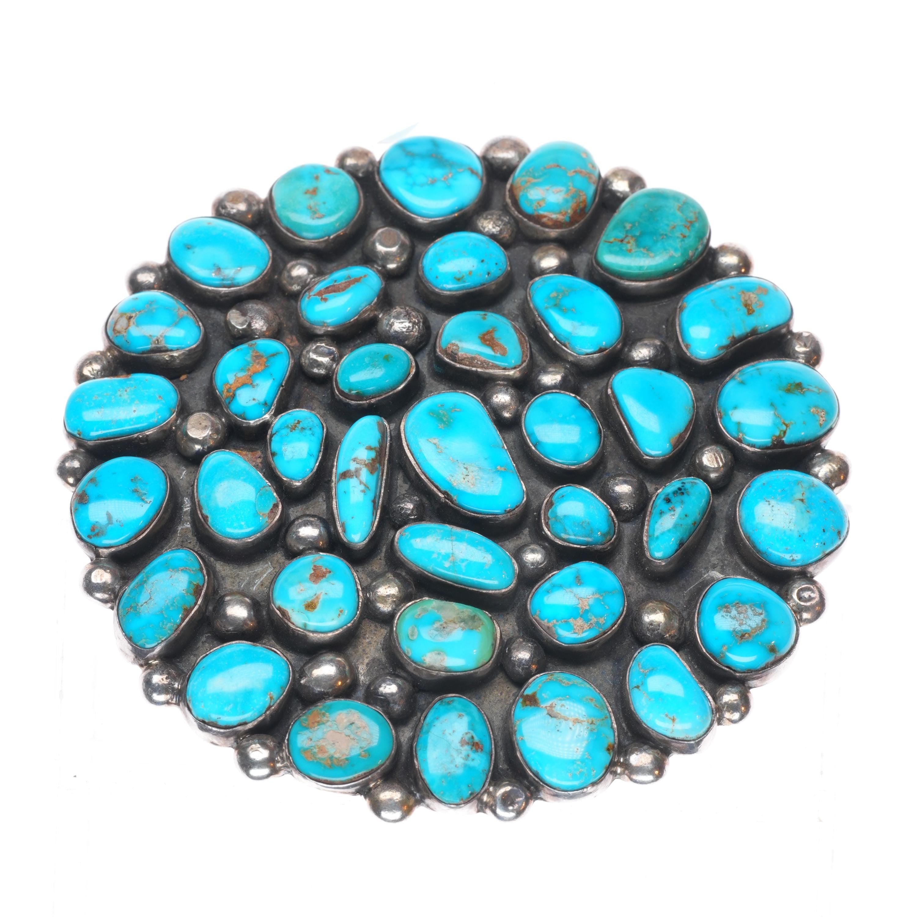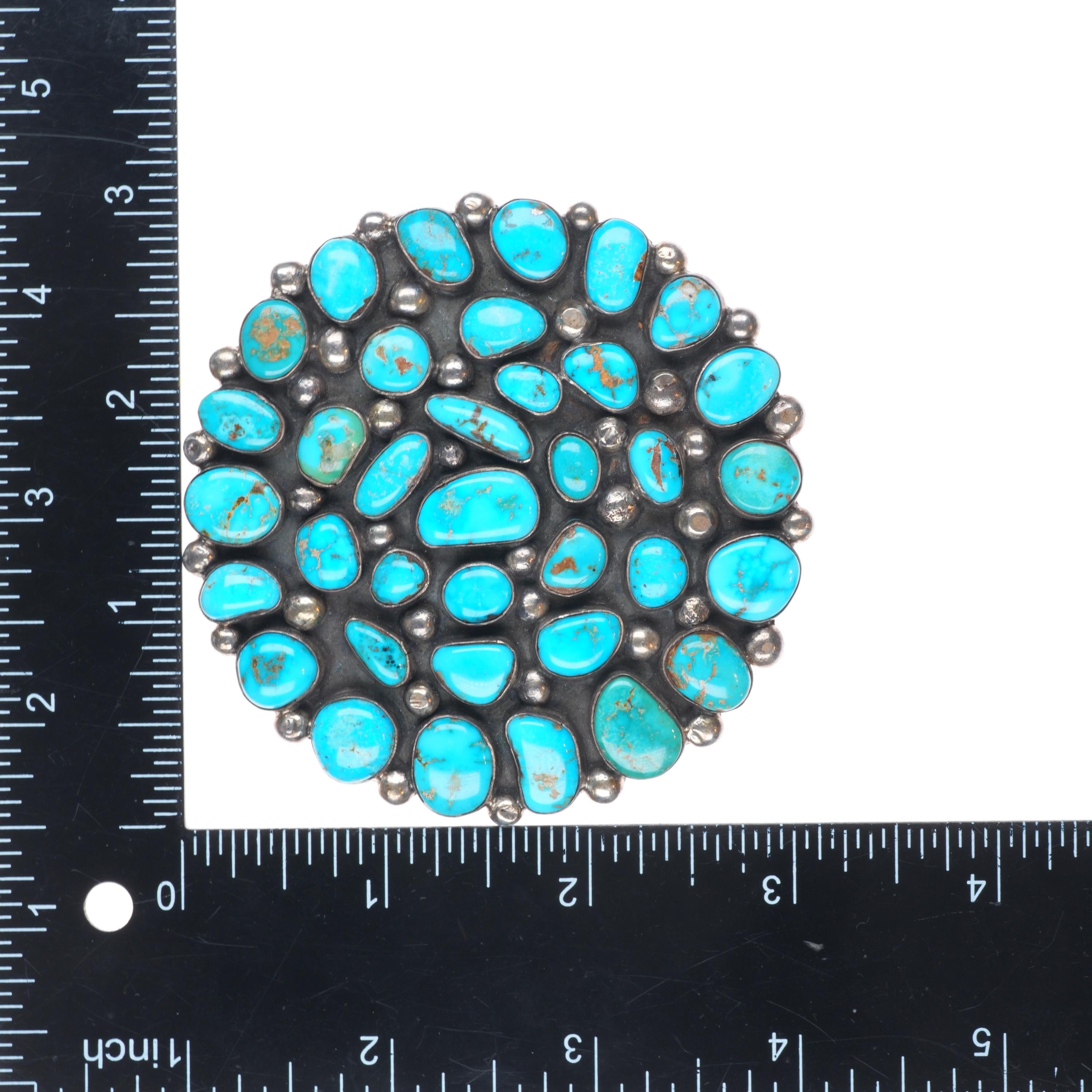 Big vintage Navajo sterling silver nice turquoise cluster pendant/pin/brooch