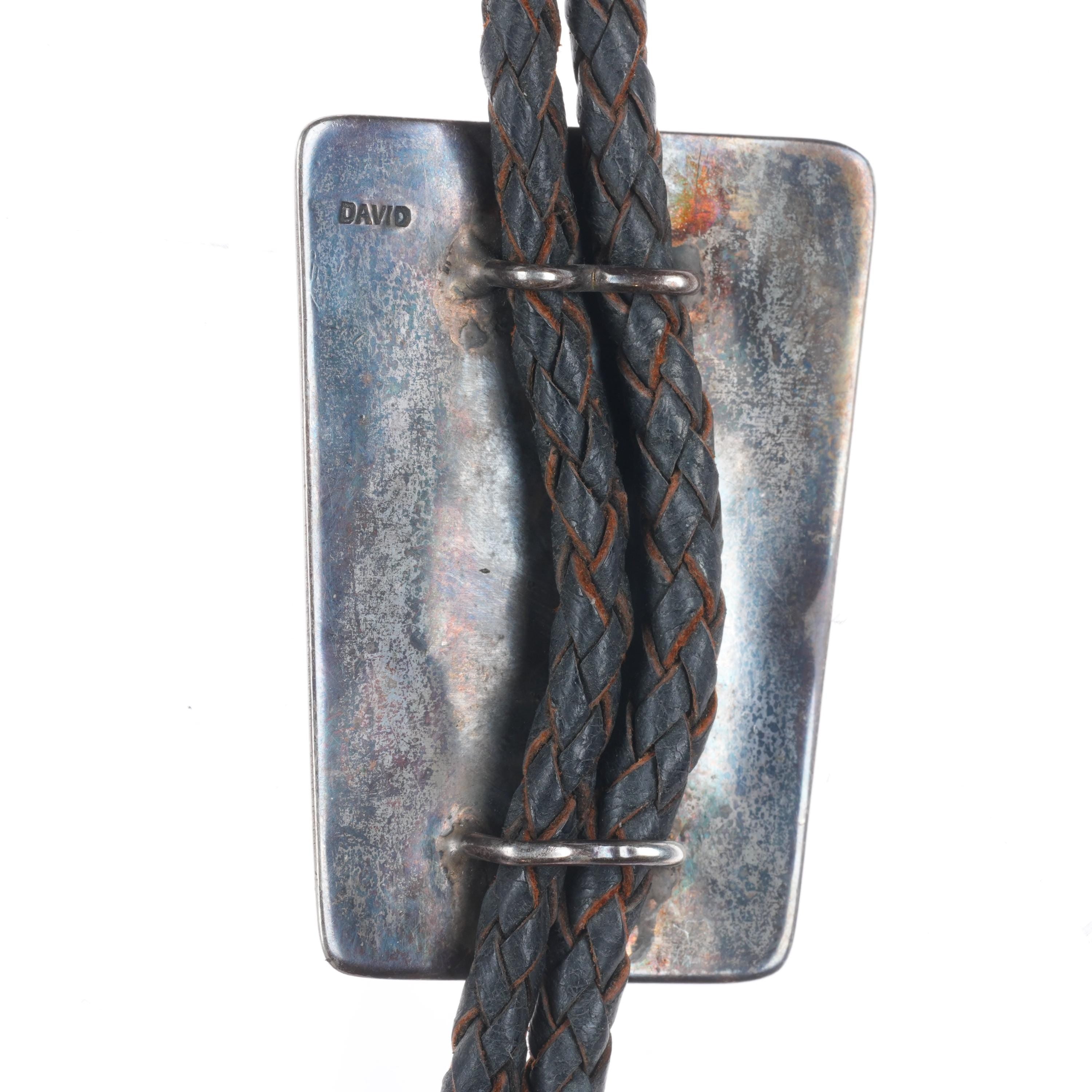 c1950 David Tsikewa (1915-1971) Zuni sterling silver rainbow man intarsia inlay bolo tie. Tested and guaranteed solid sterling silver slide and tips. Weight and measurements in pictures. Great bolo, 37" long with no issues. Weight shown is the entire bolo.