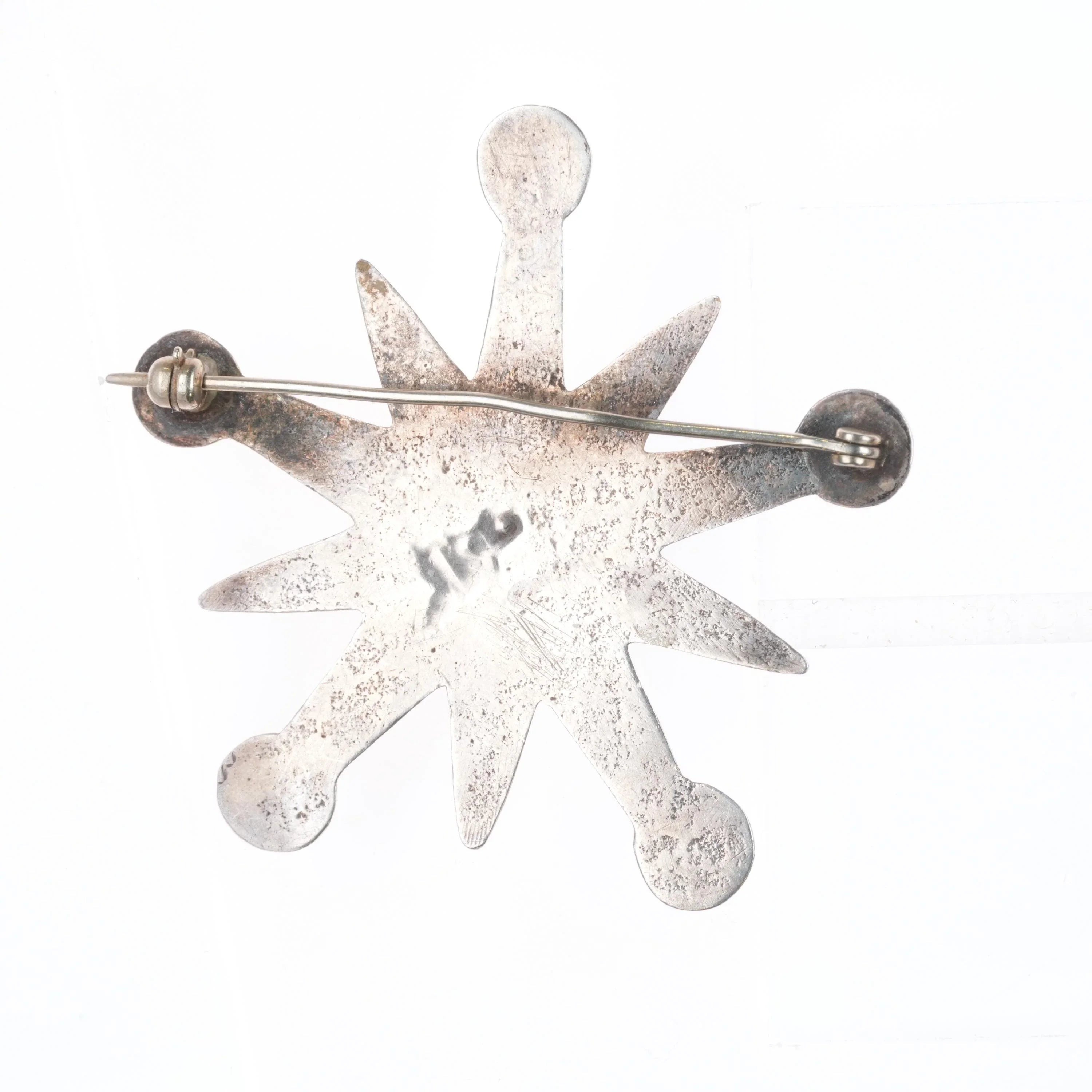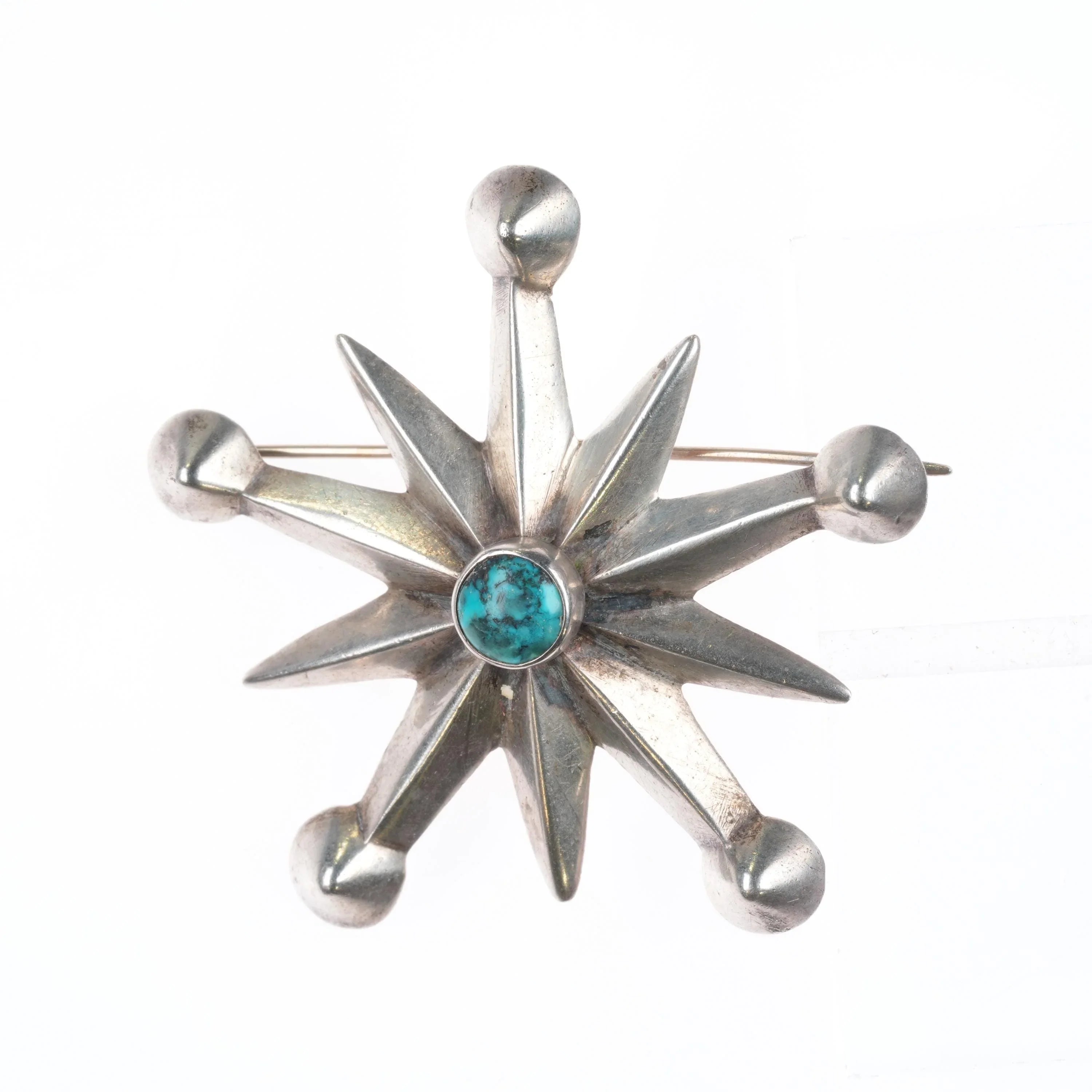 c1950's Vintage Native American sterling silver cast star pin/brooch w/turquoise
