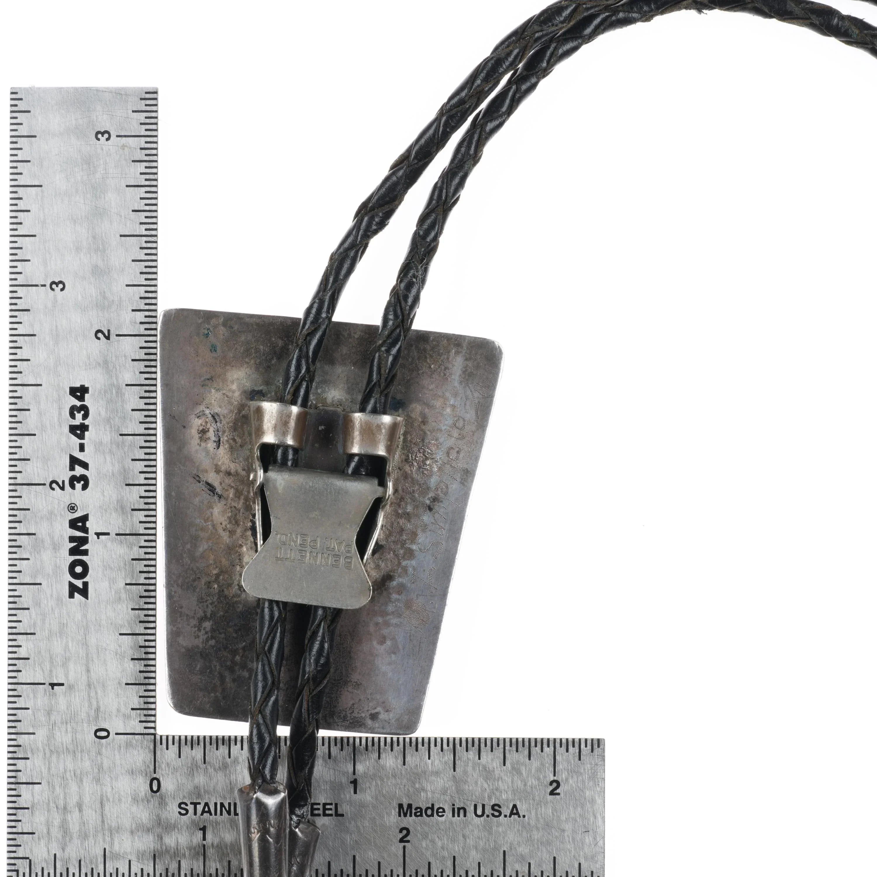 c1970 Isabelle Simplicio Zuni sterling silver, turquoise, horse inlay bolo tie. Tested and guaranteed solid sterling silver slide and tips. Weight and measurements in pictures. Great bolo, 38" long with no issues.