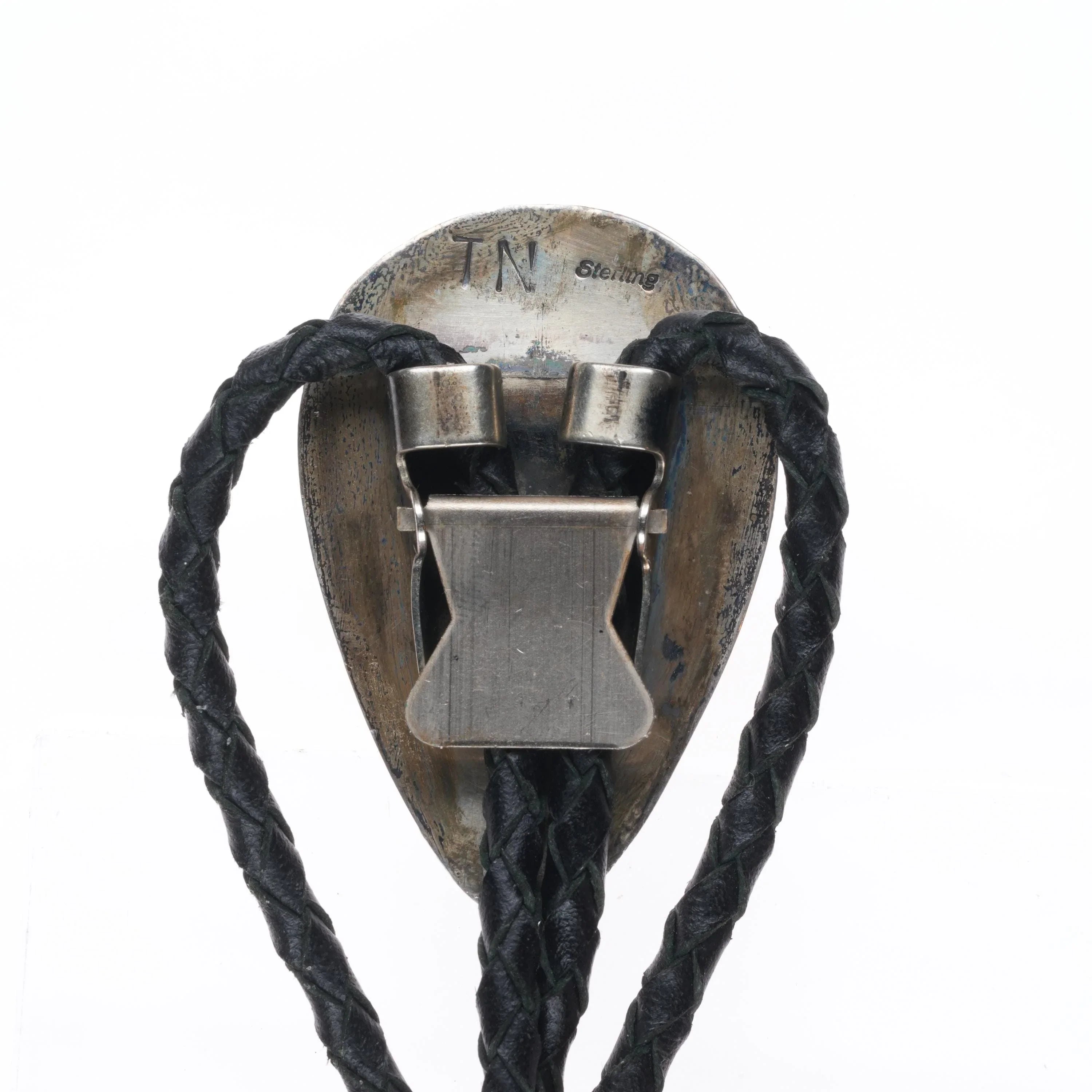 c1980 Vintage TN Navajo shadowbox sterling silver onyx bolo tie