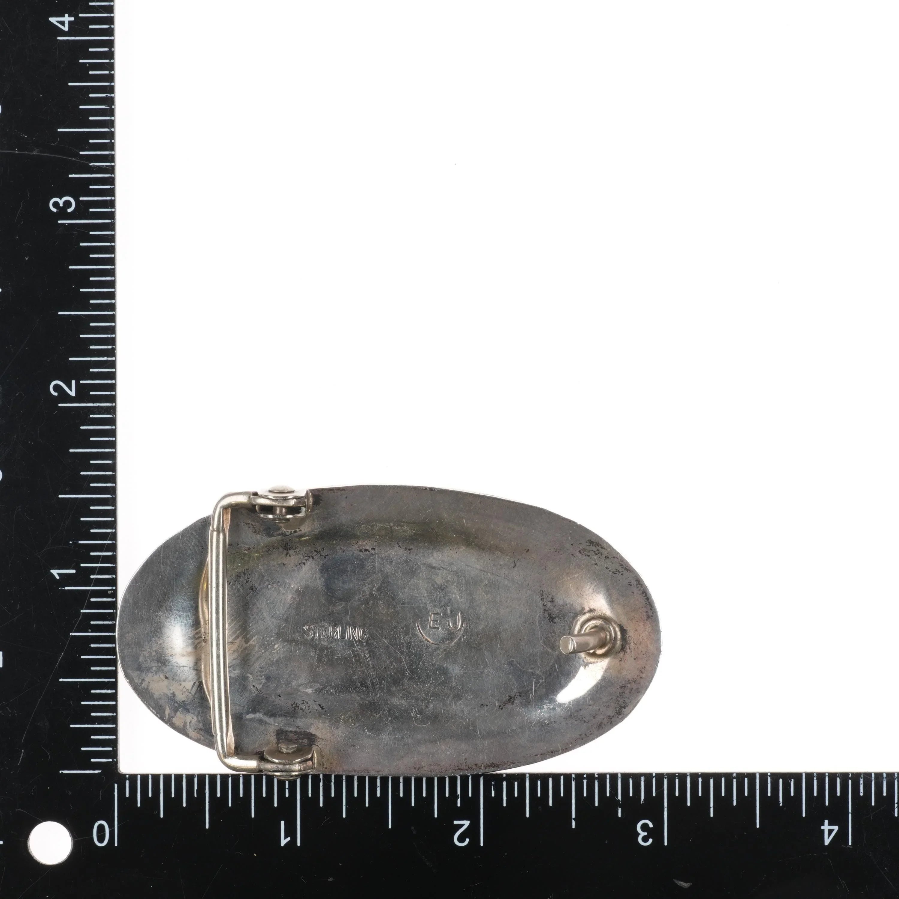 CEJ Southwestern sterling silver channel inlay belt buckle with nice turquoise. Hallmarked clearly with an unidentified hallmark. Tested and guaranteed solid sterling silver, fits a 1.25" wide belt. No issues, some expected wear. Circa fourth quarter of the 20th century. Weight and measurements in pictures.