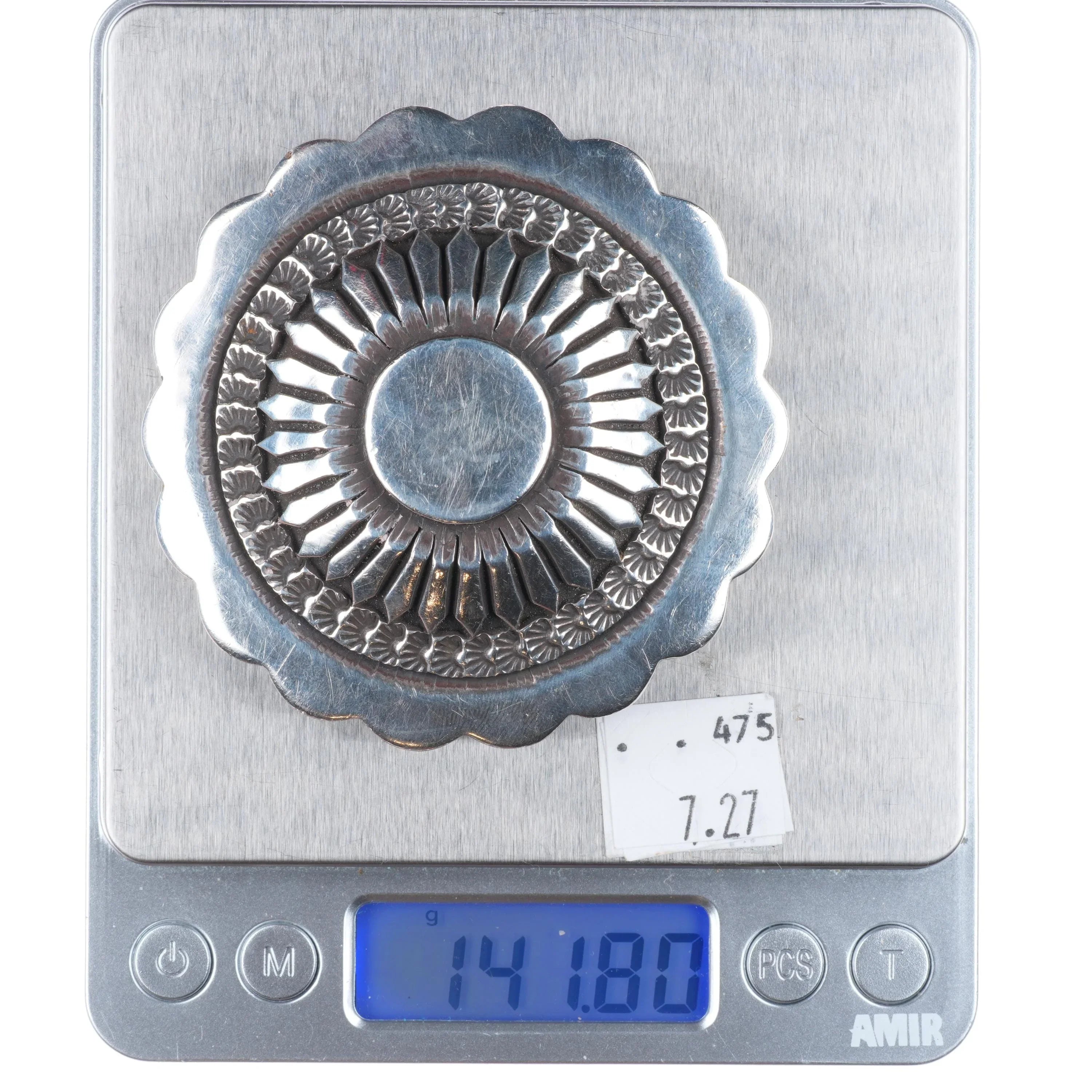 Emerson Bill Navajo sterling silver heavy deep stamped belt buckle