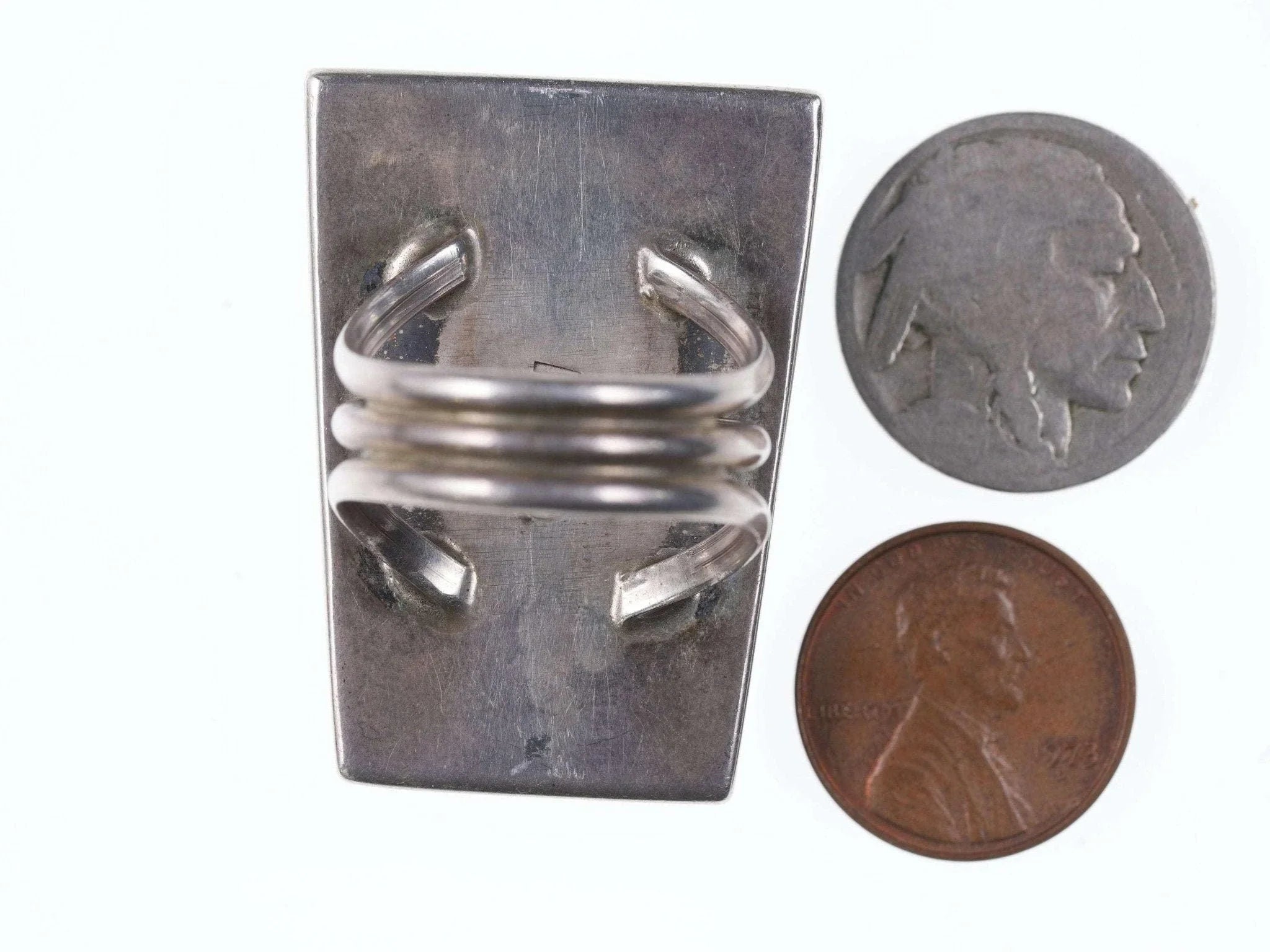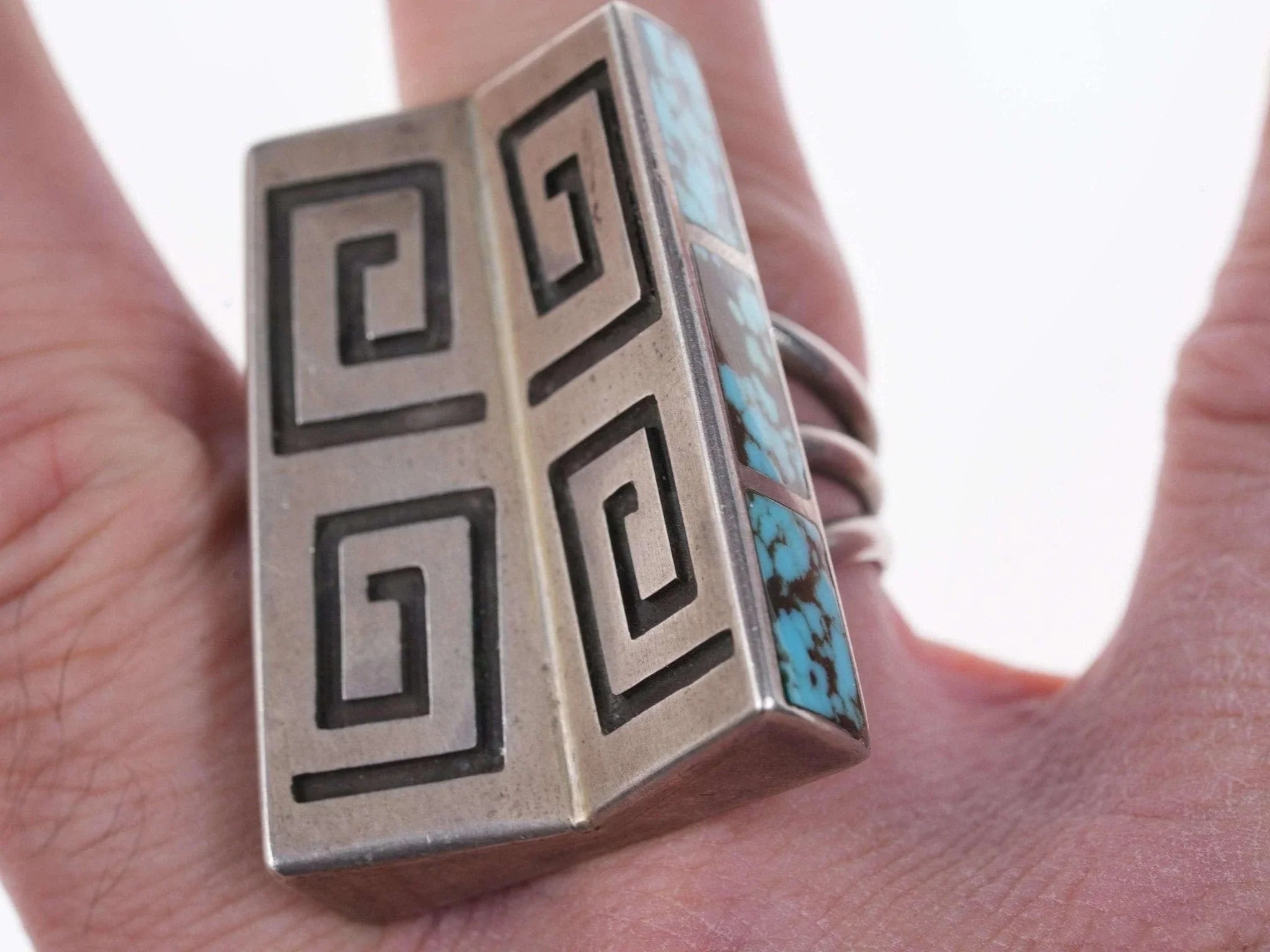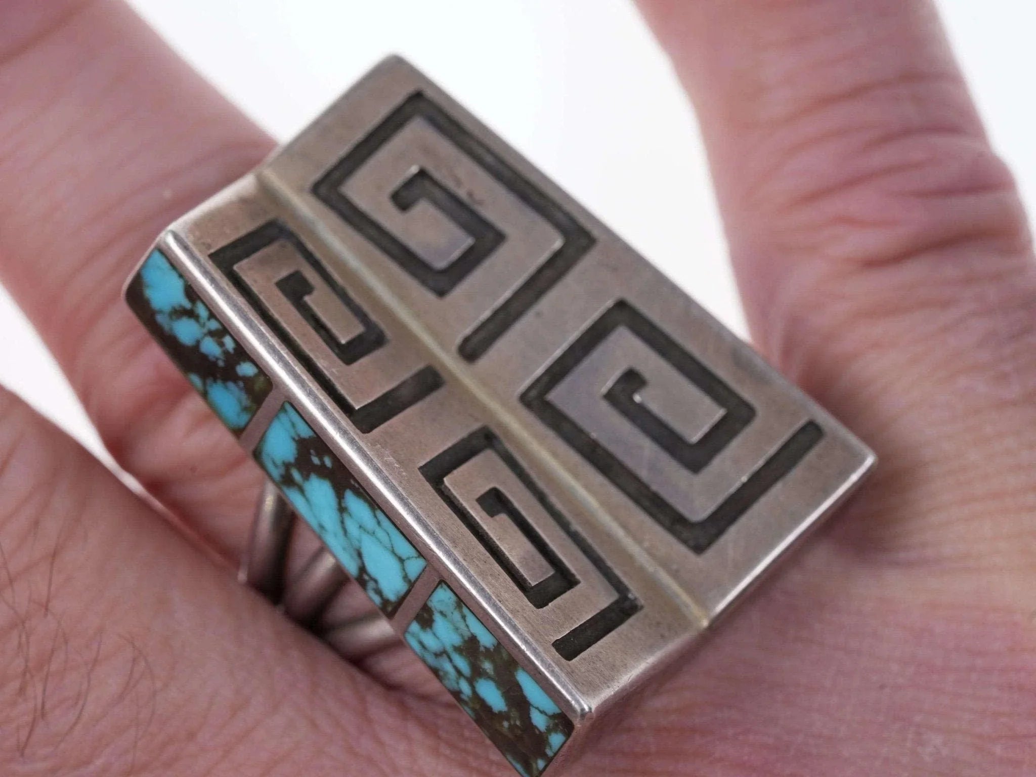 Large Navajo Overlay ring with inlaid sides