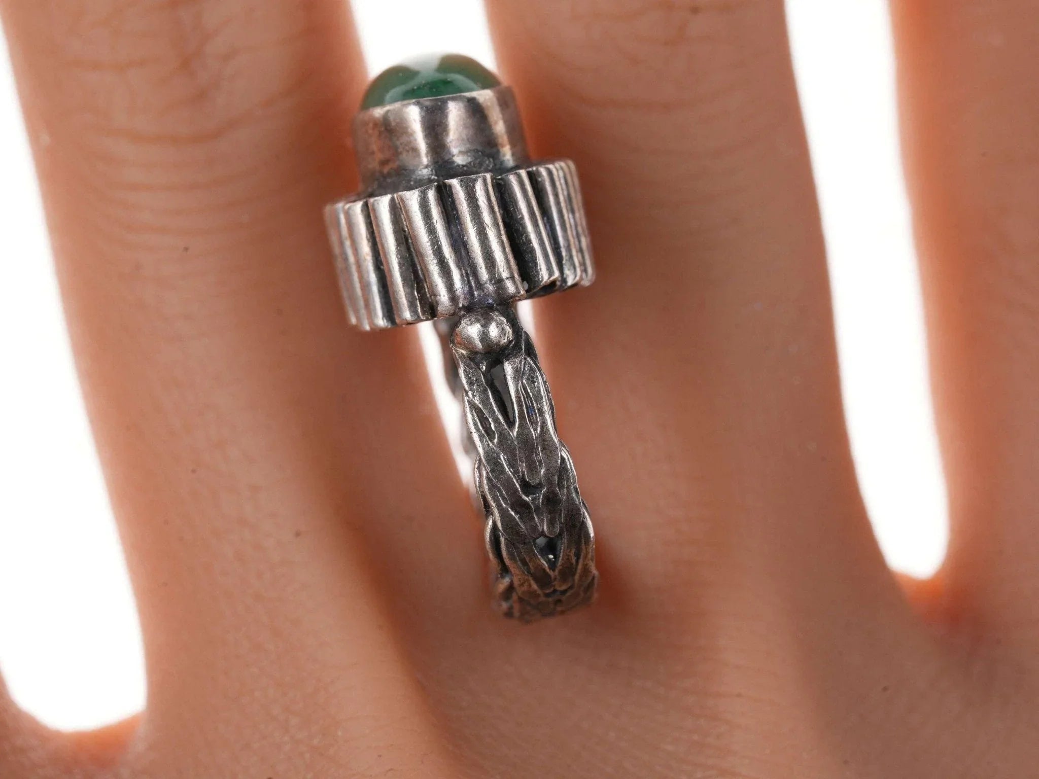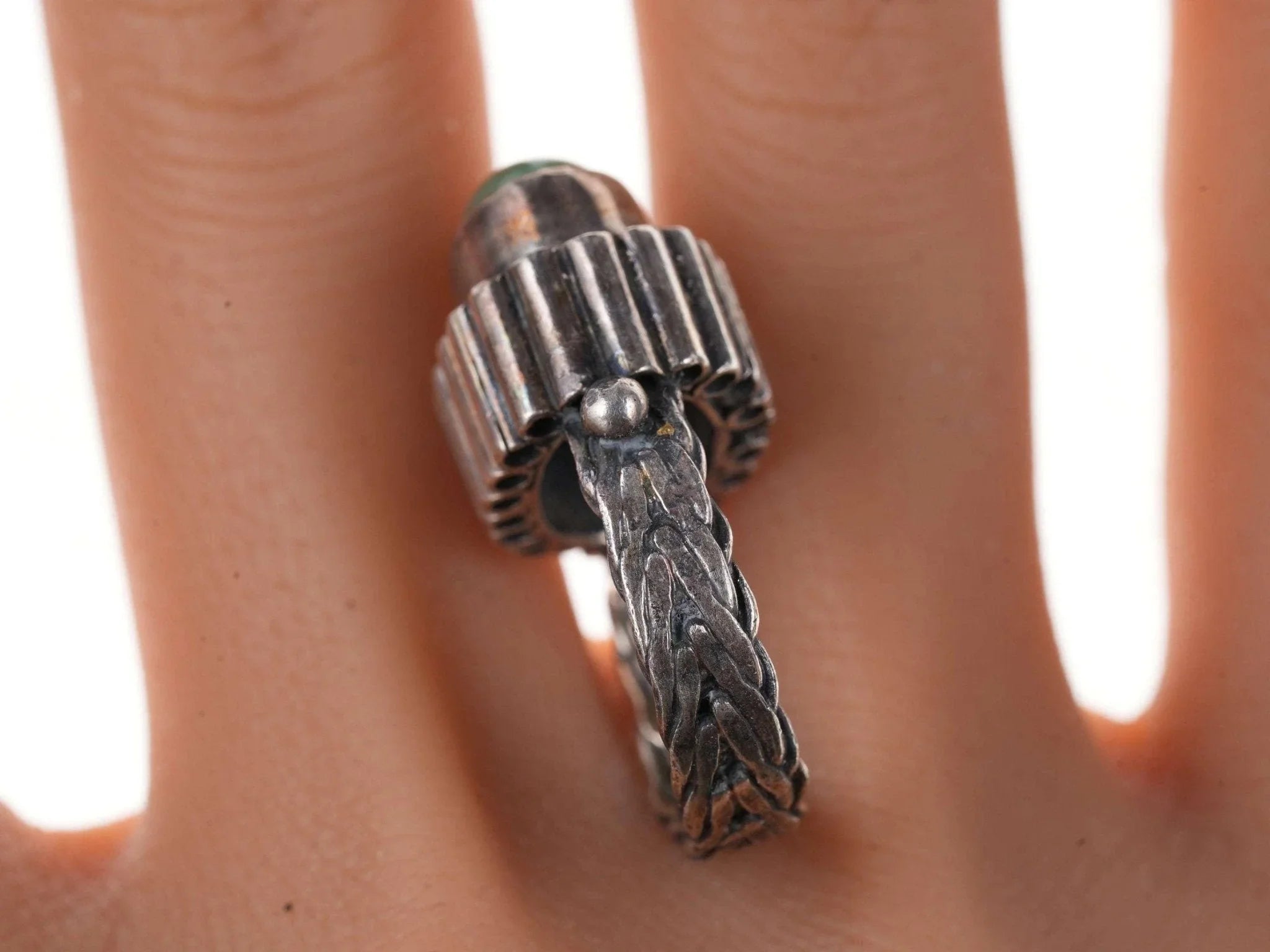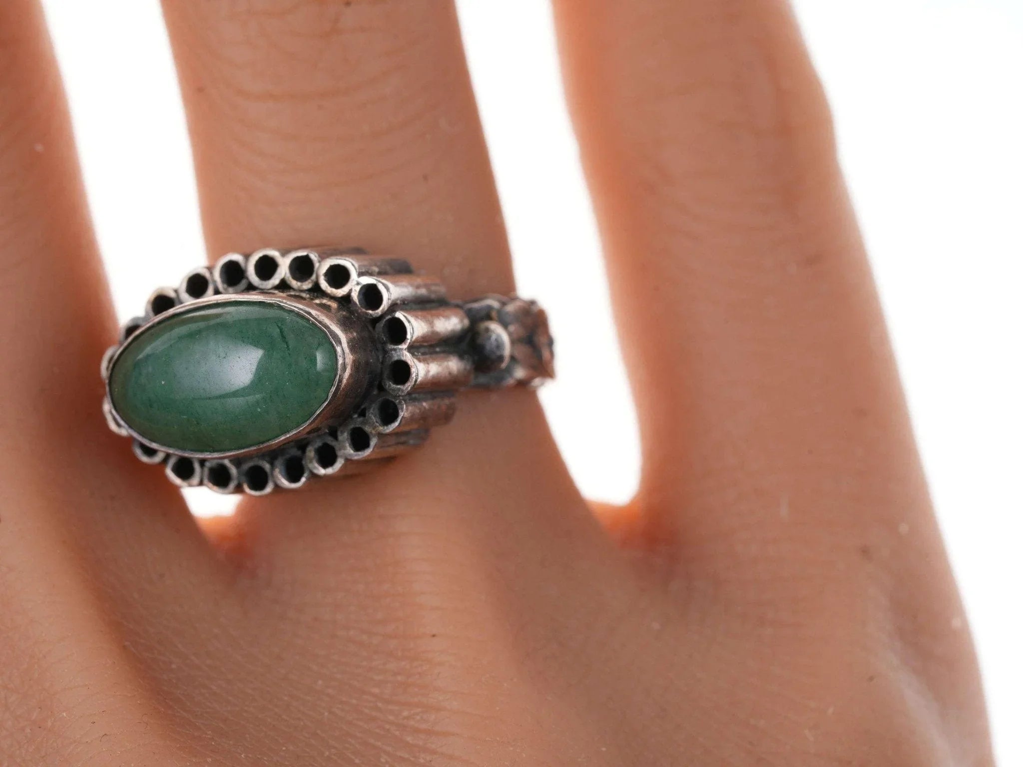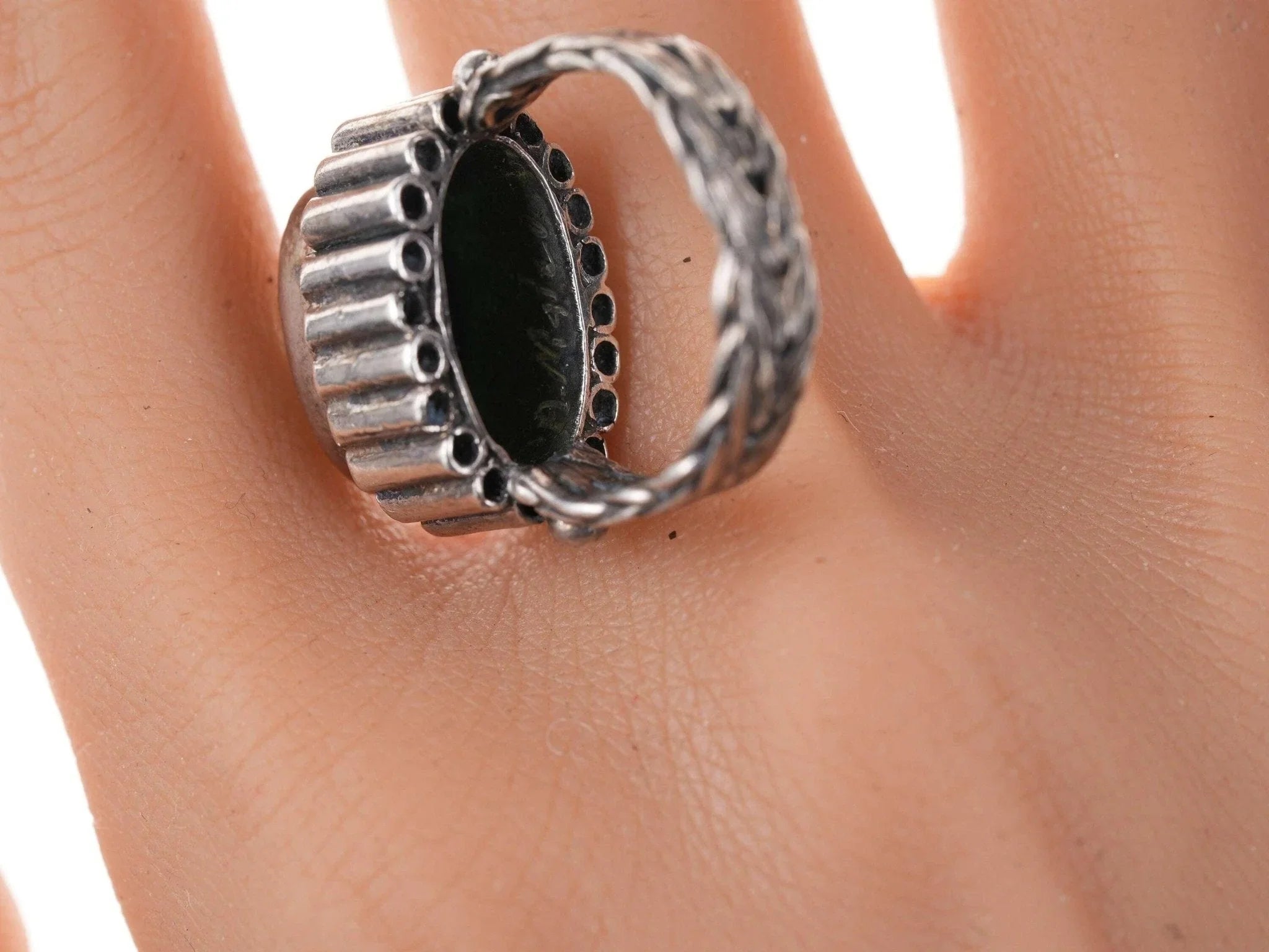 Jadeite Sterling Handmade artisan ring. size 5.75, signed illegibly as shown, marked 925, tested Jadeite. High quality handmade one of a kind ring. 8.5 grams. All precious metals are tested and guaranteed,
