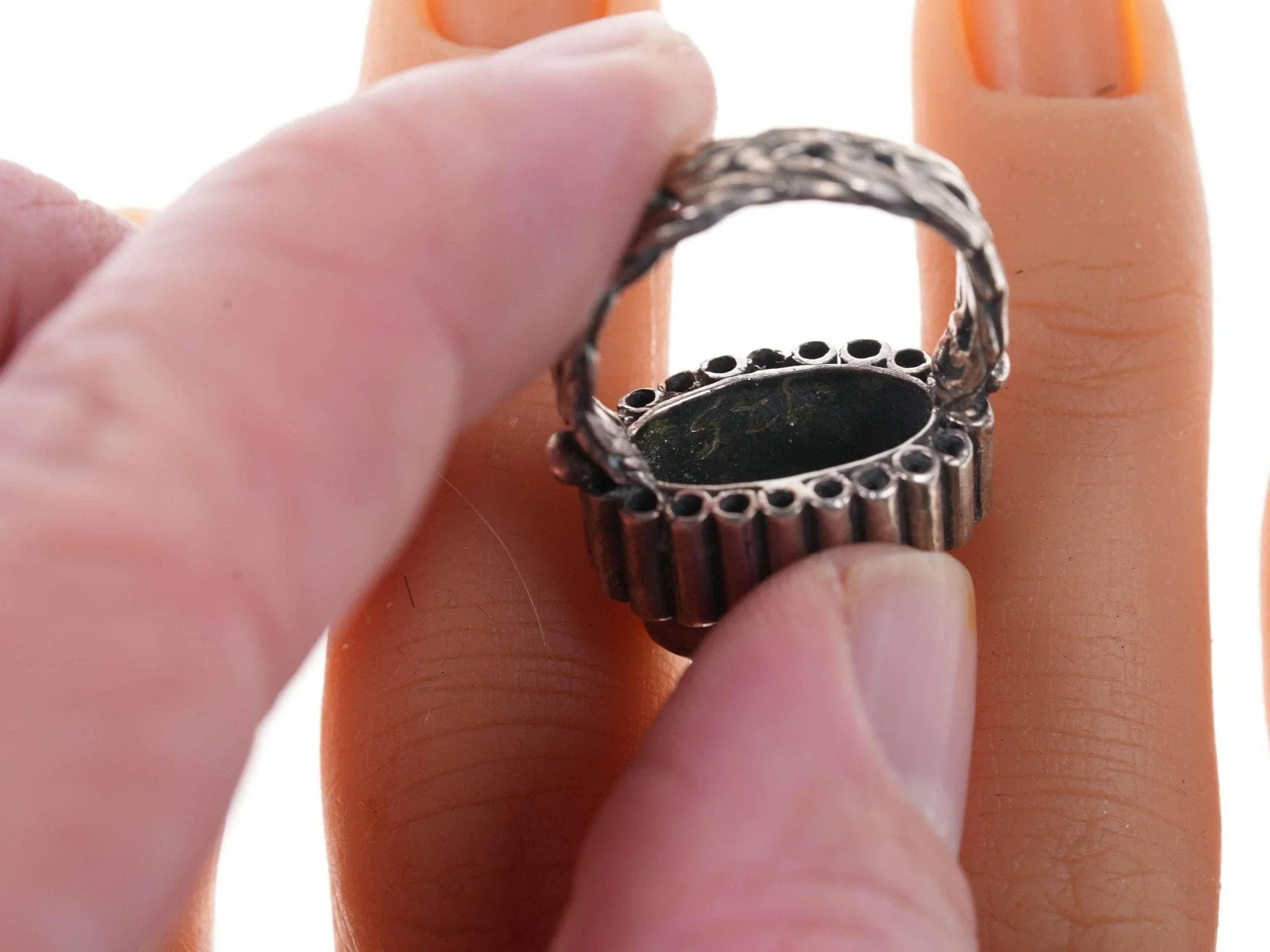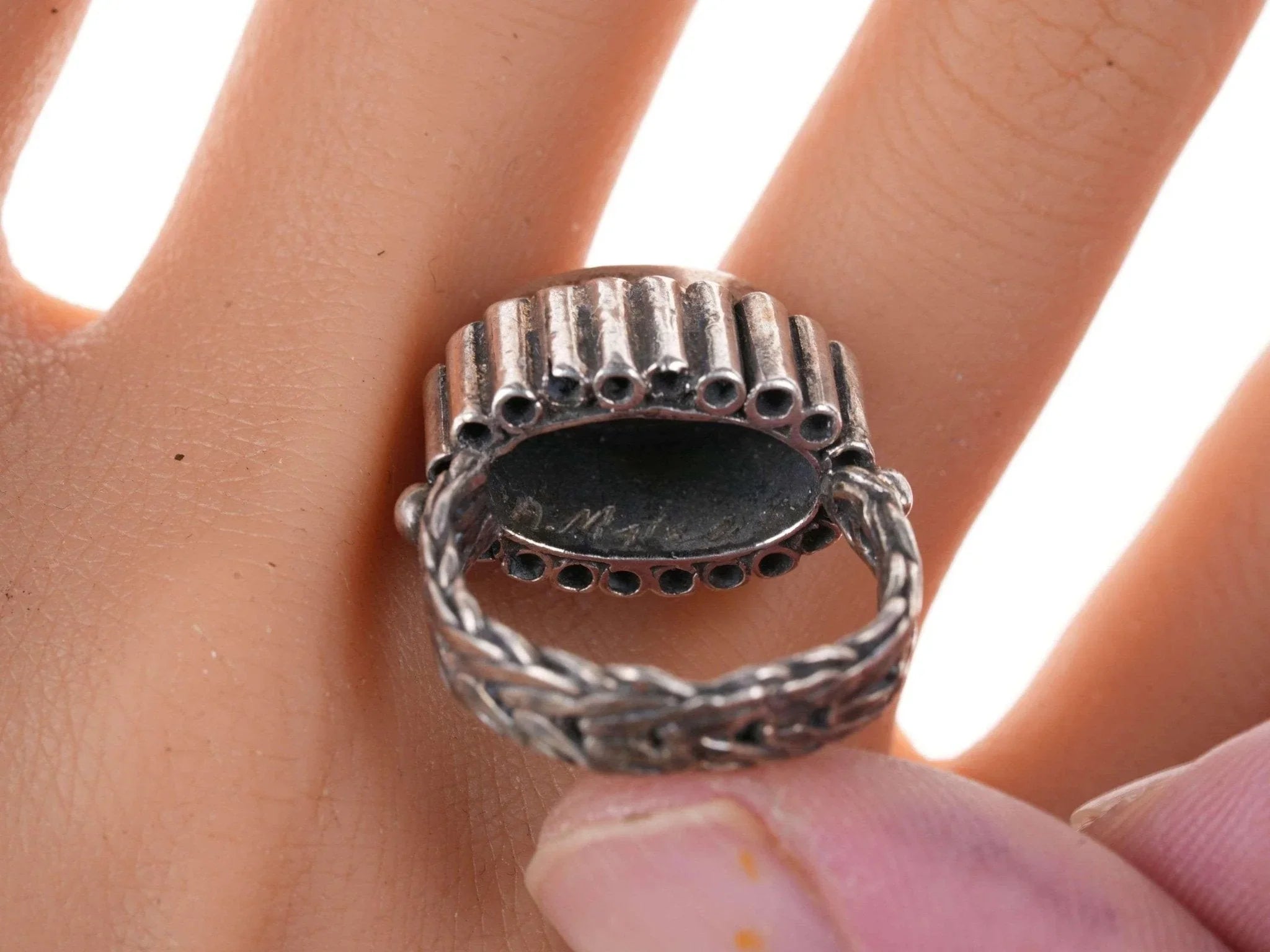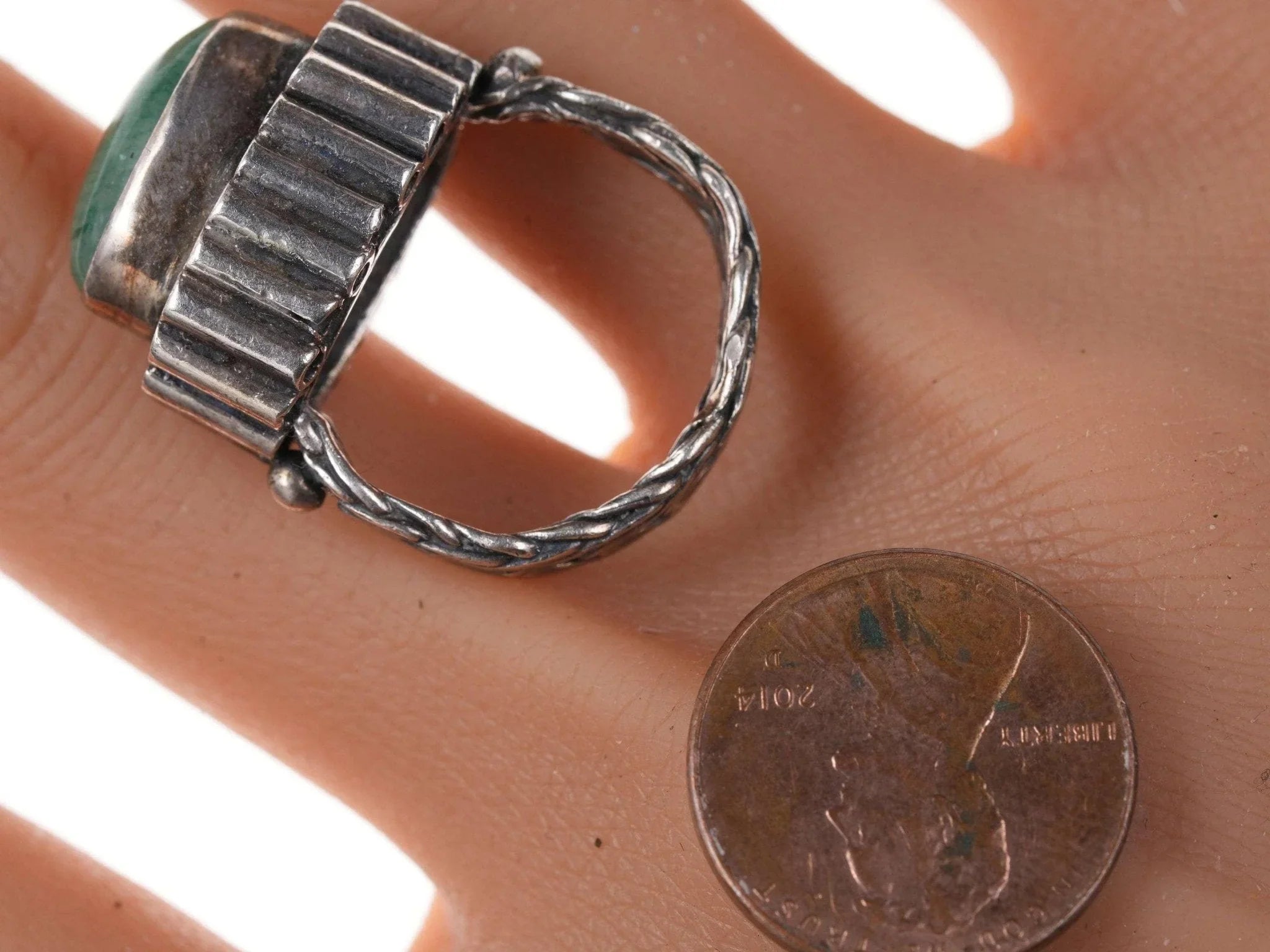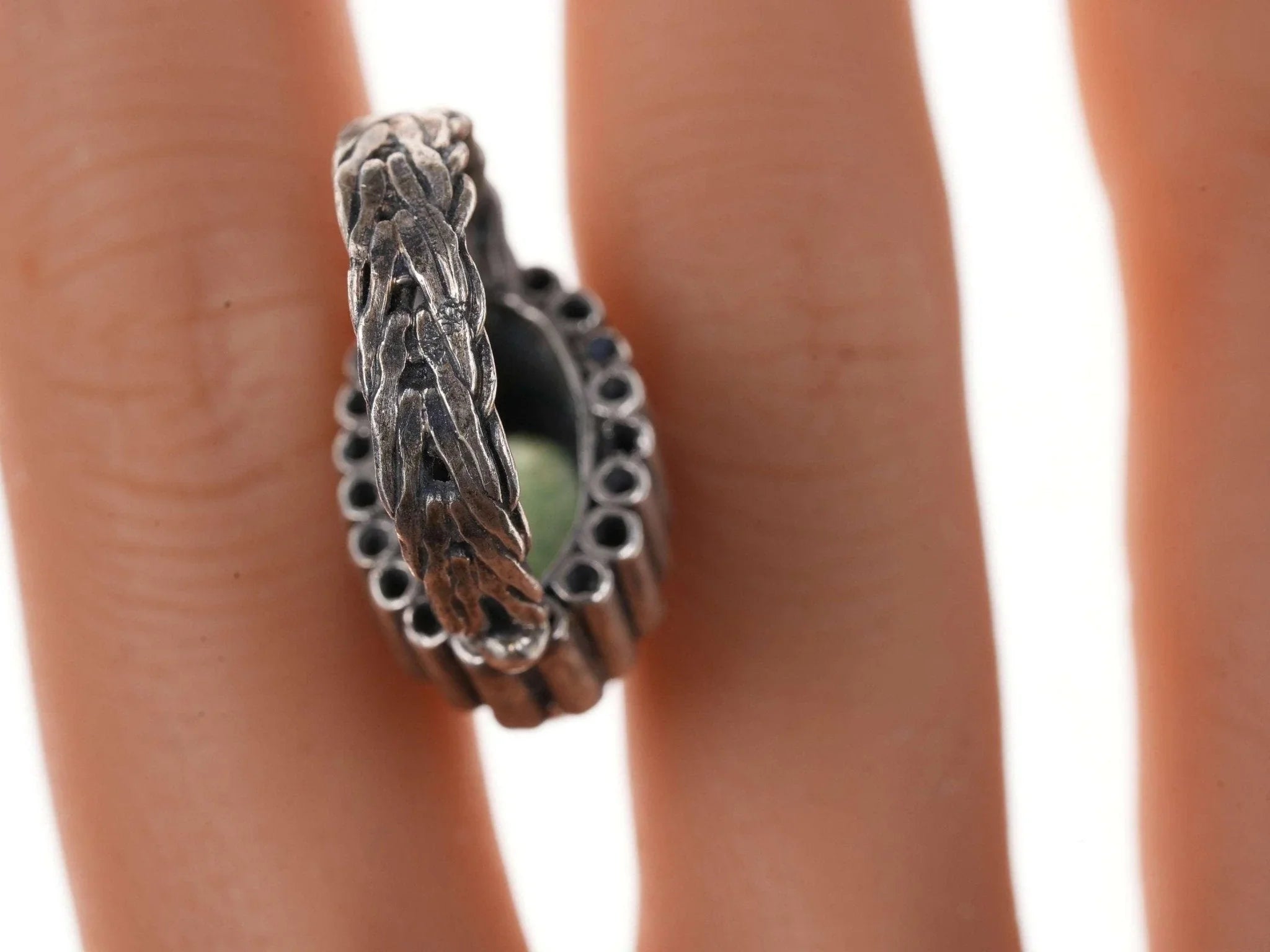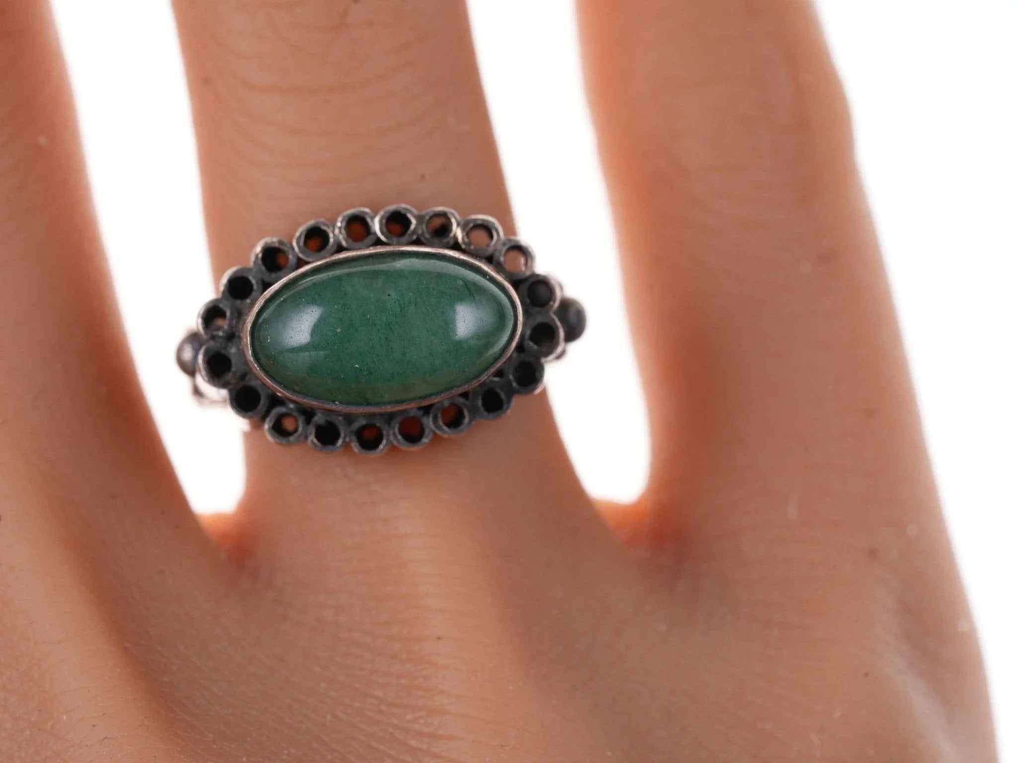 Jadeite Sterling Handmade artisan ring. size 5.75, signed illegibly as shown, marked 925, tested Jadeite. High quality handmade one of a kind ring. 8.5 grams. All precious metals are tested and guaranteed,