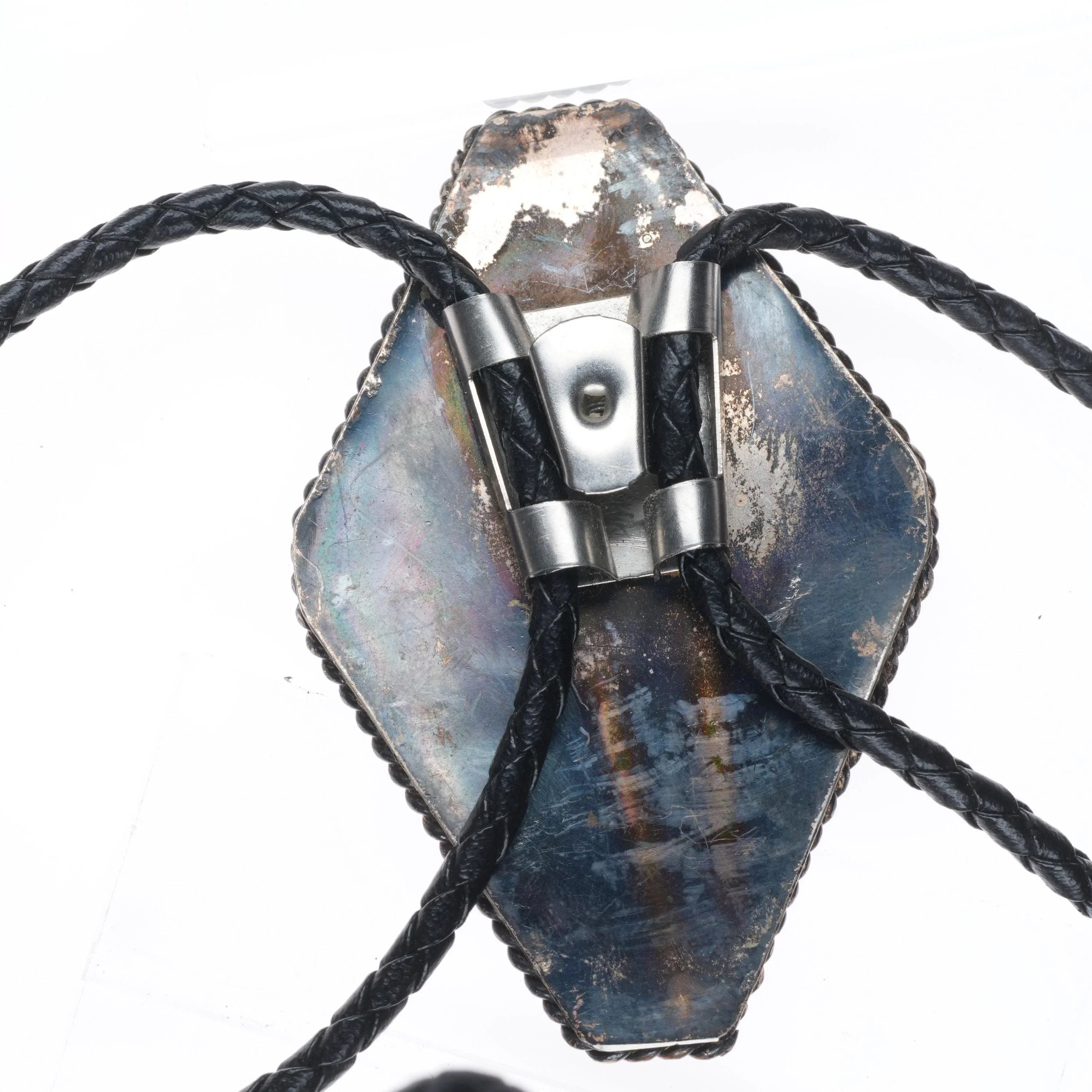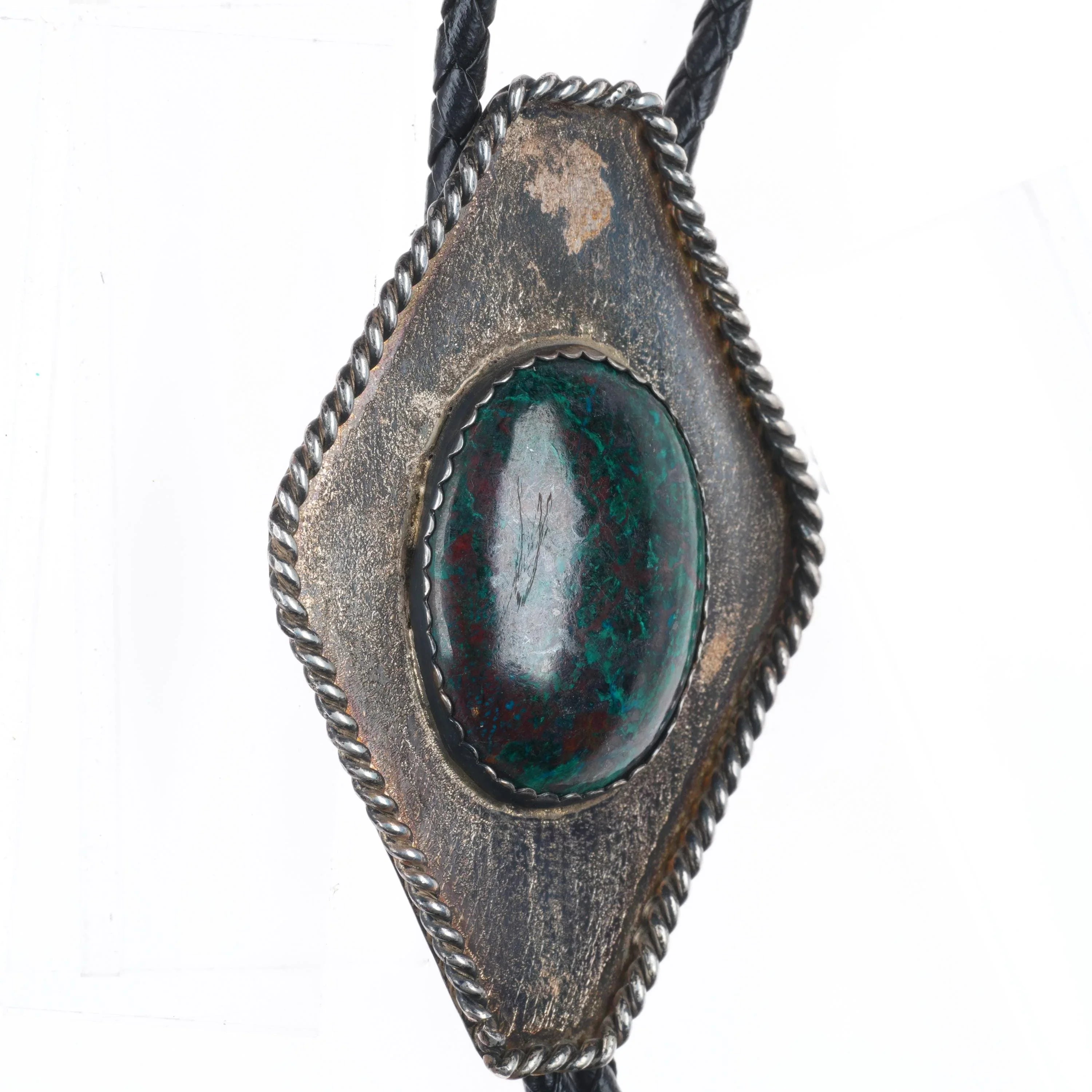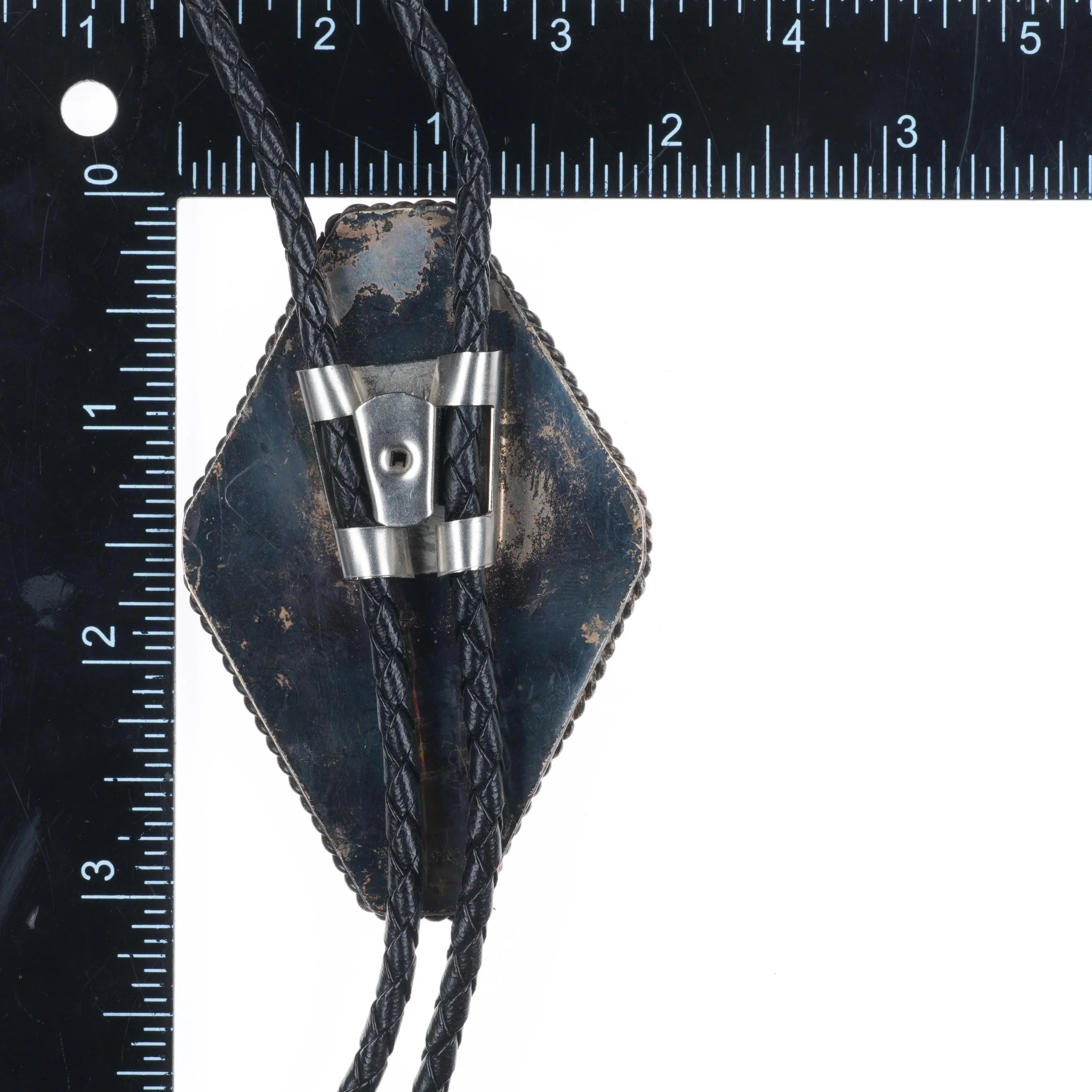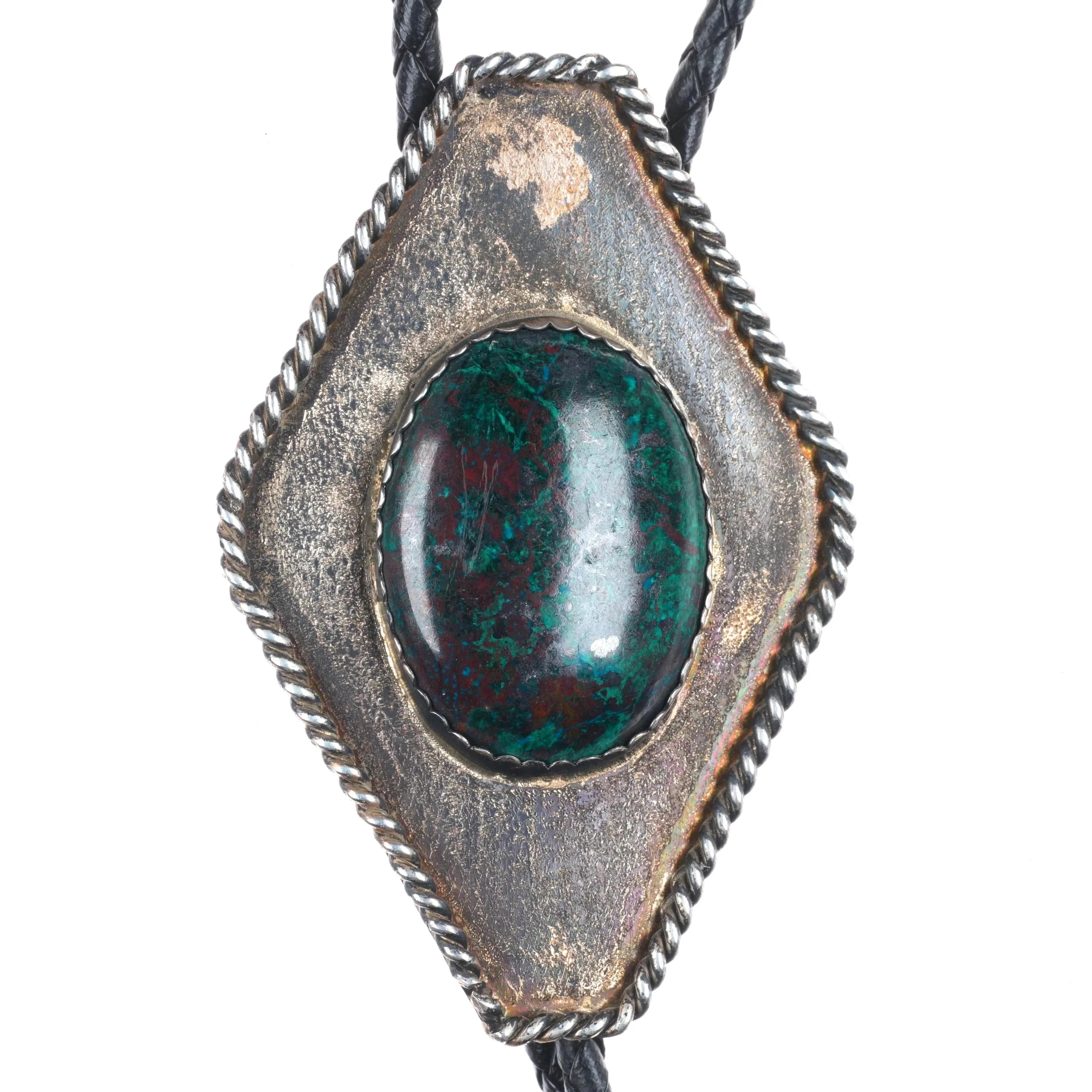 large Vintage Southwestern sterling silver chrysocolla bolo tie rope edge