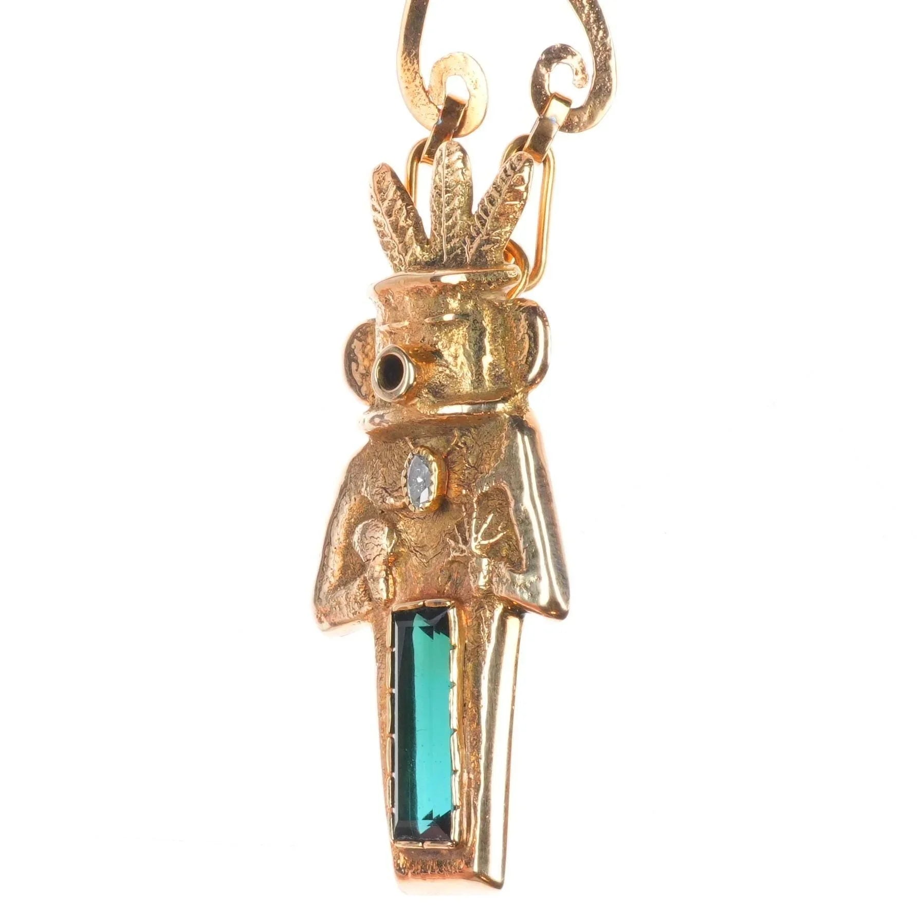 Michael Horse-Yaqui Tourmaline, diamond, 14k gold kachina pendant necklace