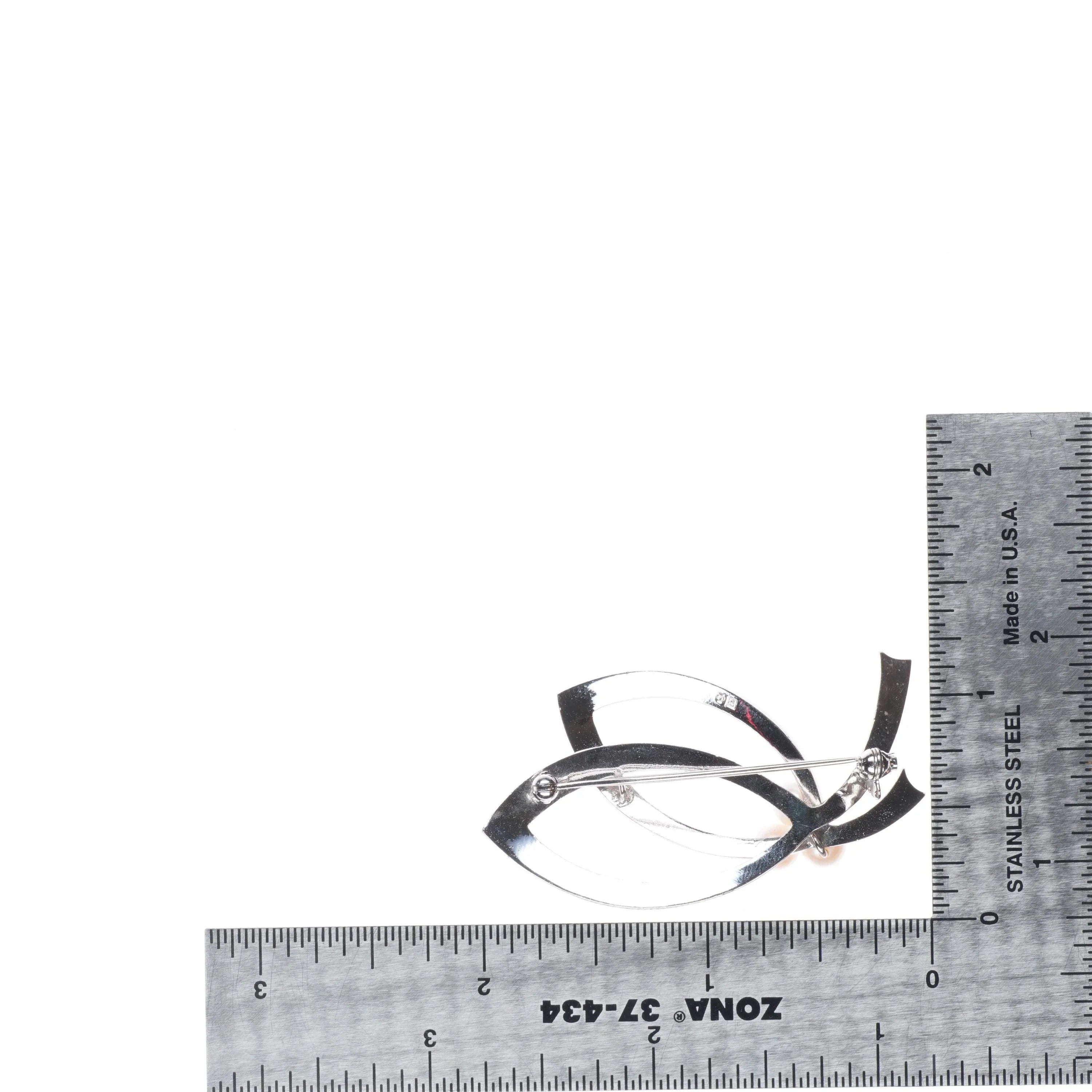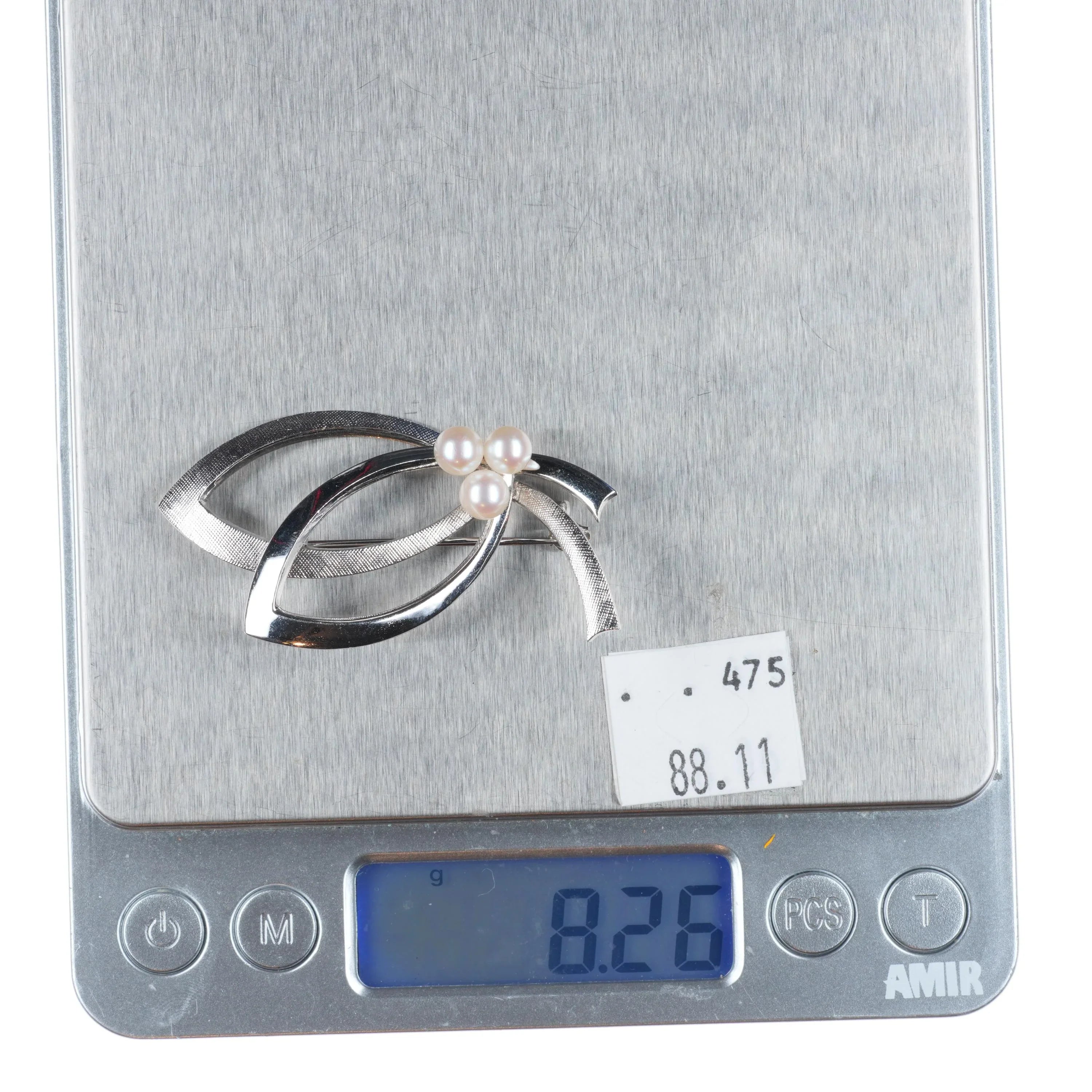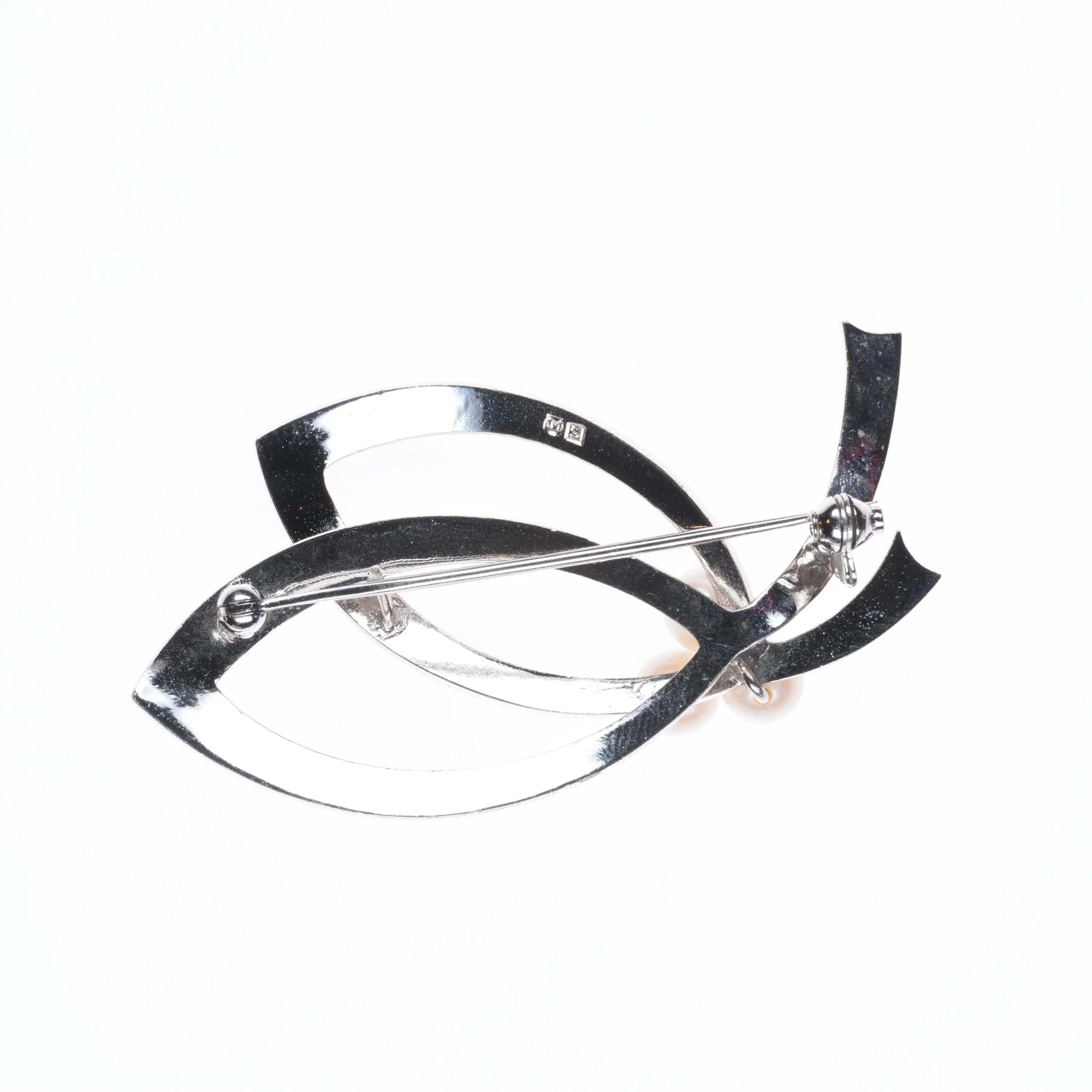 Mikimoto sterling silver modernist pearl pin/brooch. Weight and measurements in pics, all solid sterling. Tested and guaranteed solid sterling silver. Circa last quarter of the 20th century.