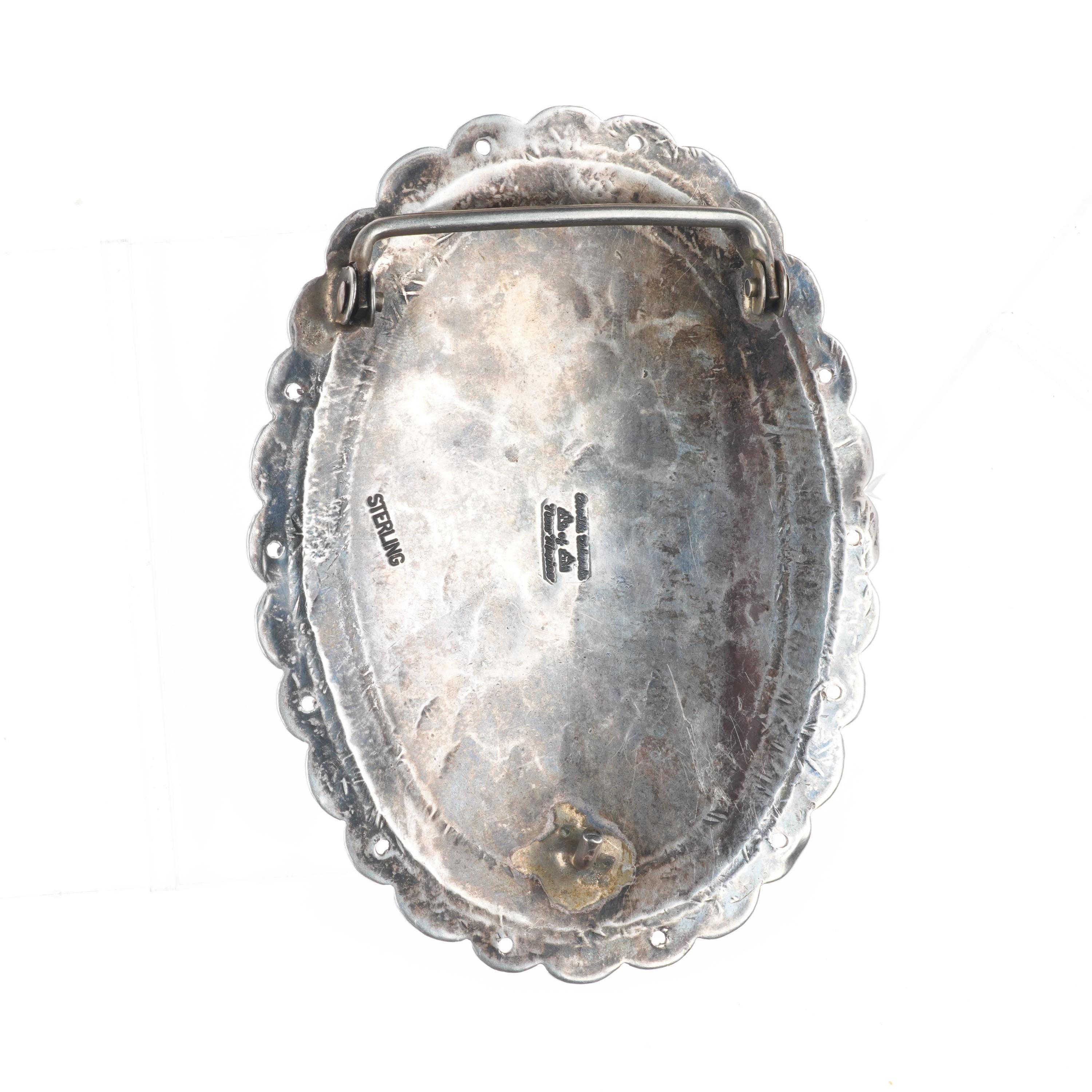 Orville Tsinnie Navajo Large Vintage sterling silver stamped concho belt buckle. Tested and guaranteed solid sterling silver, weight and measurements in pictures. Fully functional. All items will likely have some age appropriate/expected wear, the older they are the more wear they should have. Circa last quarter of the 20th century.. Fits up to a 2" belt