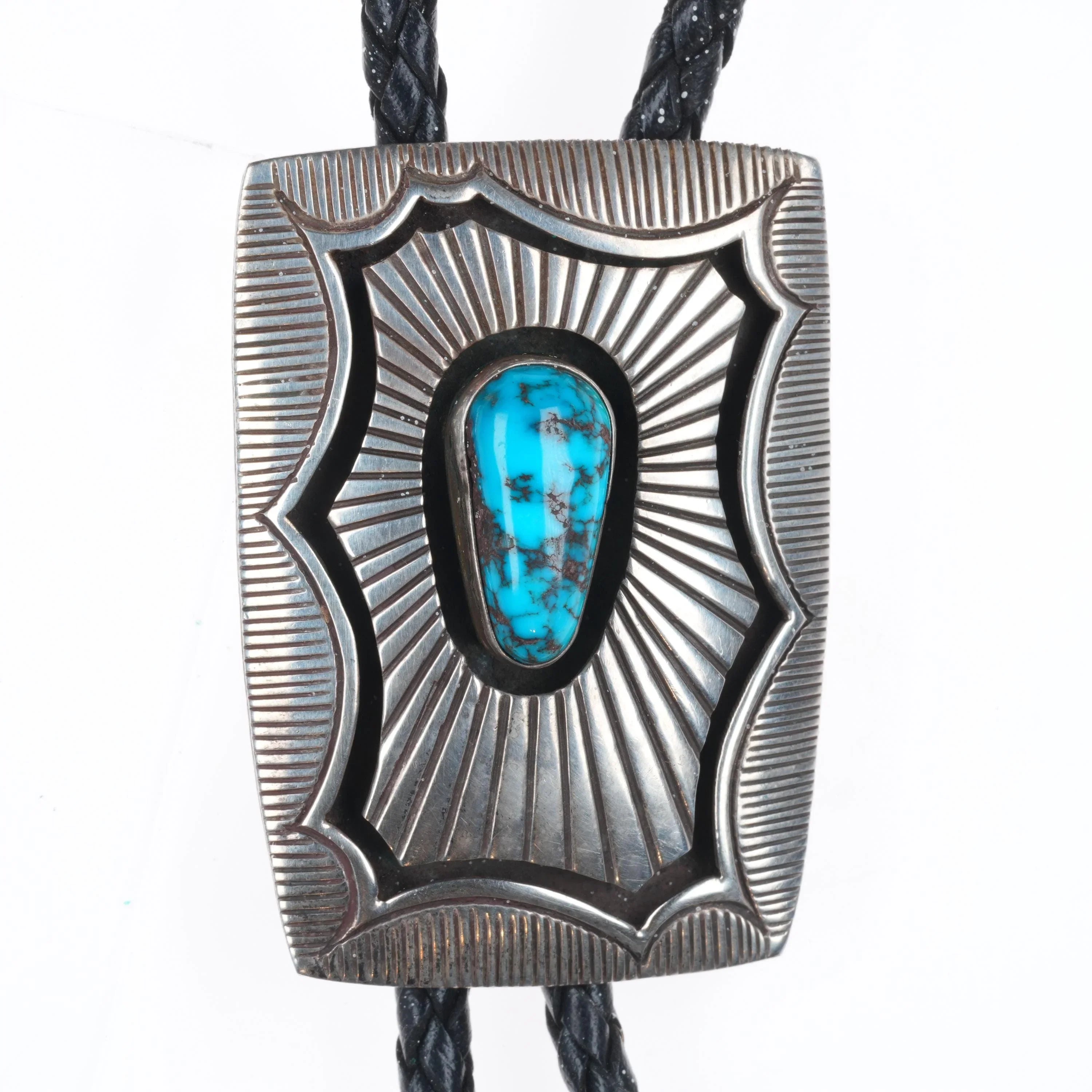 Ray King Navajo vintage sterling silver bolo tie/fancy tips, nice turquoise