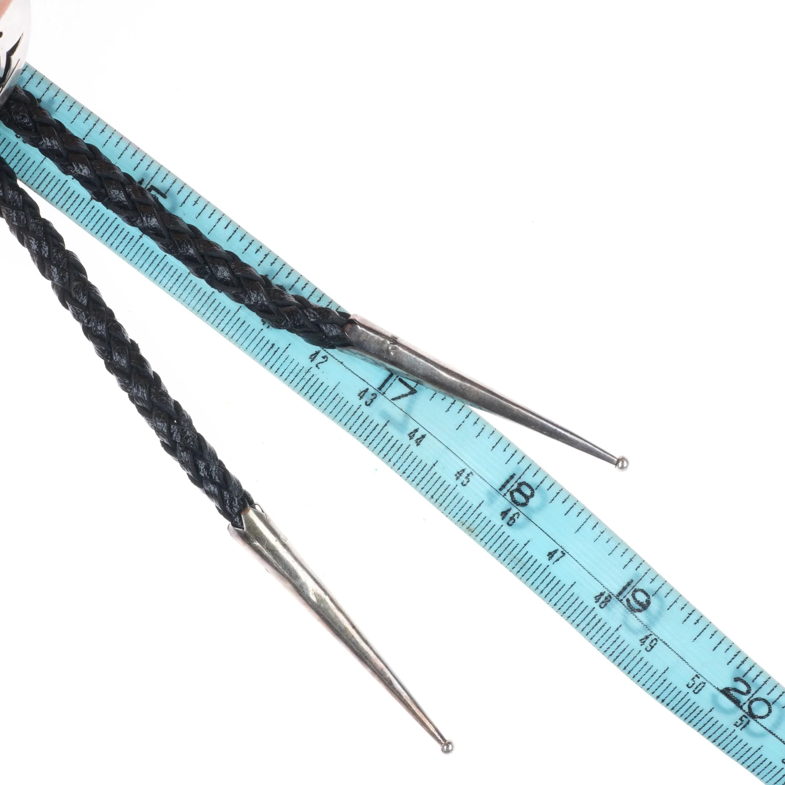 Robert Lewis Navajo sterling silver Kachina/Corn themed bolo tie Overlay style. Tested and guaranteed solid sterling silver slide and tips. Weight and measurements in pictures. 37" long with no issues. Tray is tared out, so weight shown is just the bolo of course.