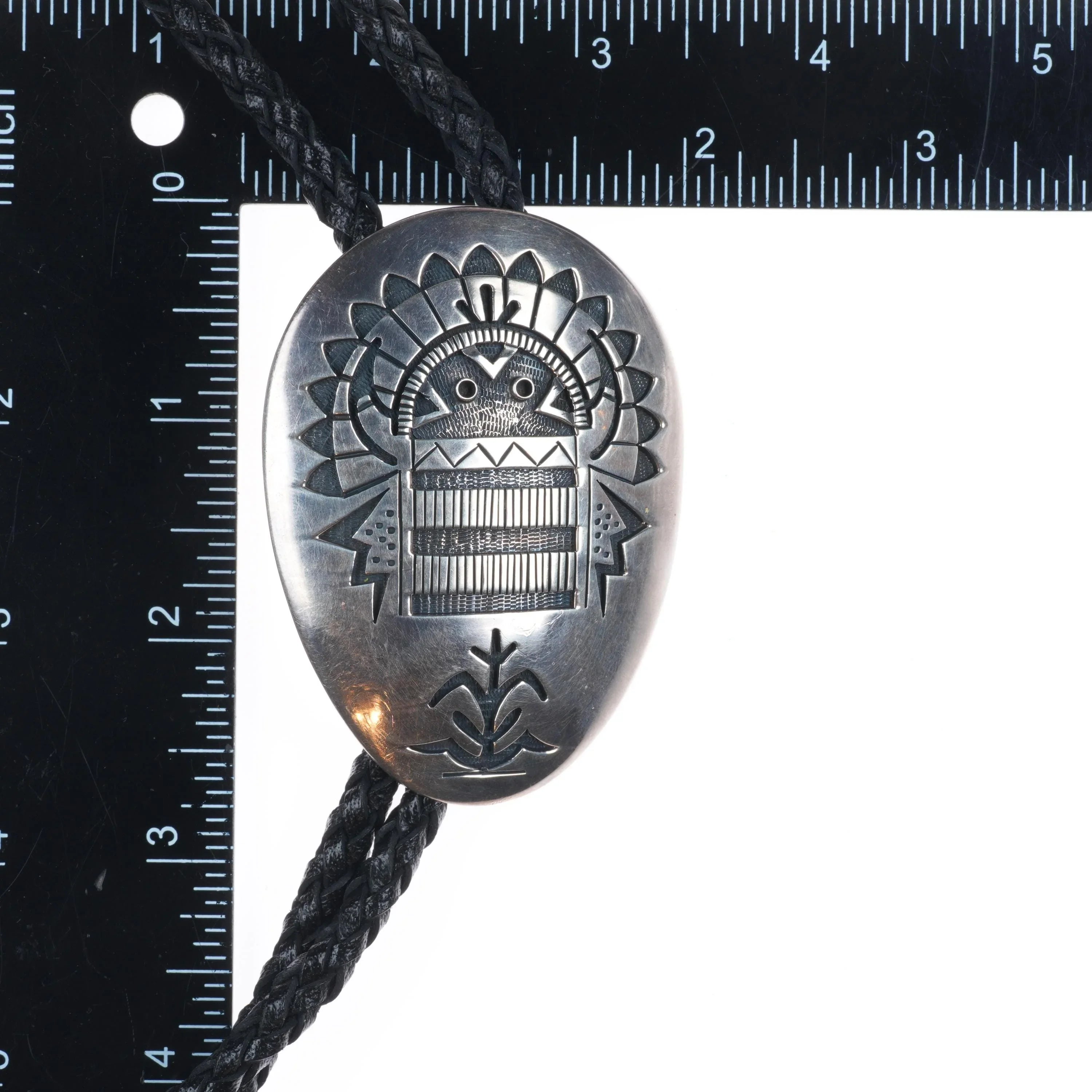 Robert Lewis Navajo sterling silver Kachina/Corn themed bolo tie Overlay style