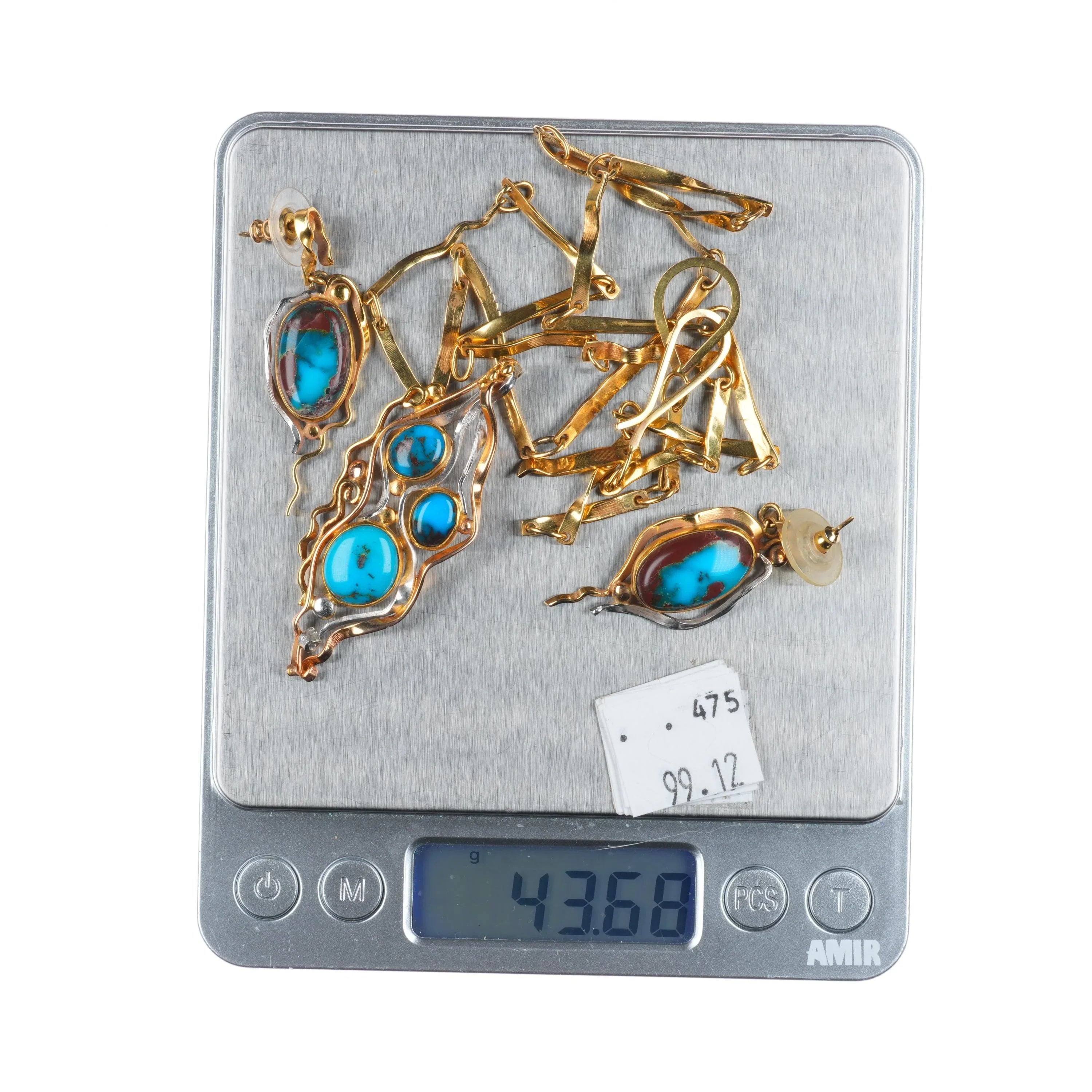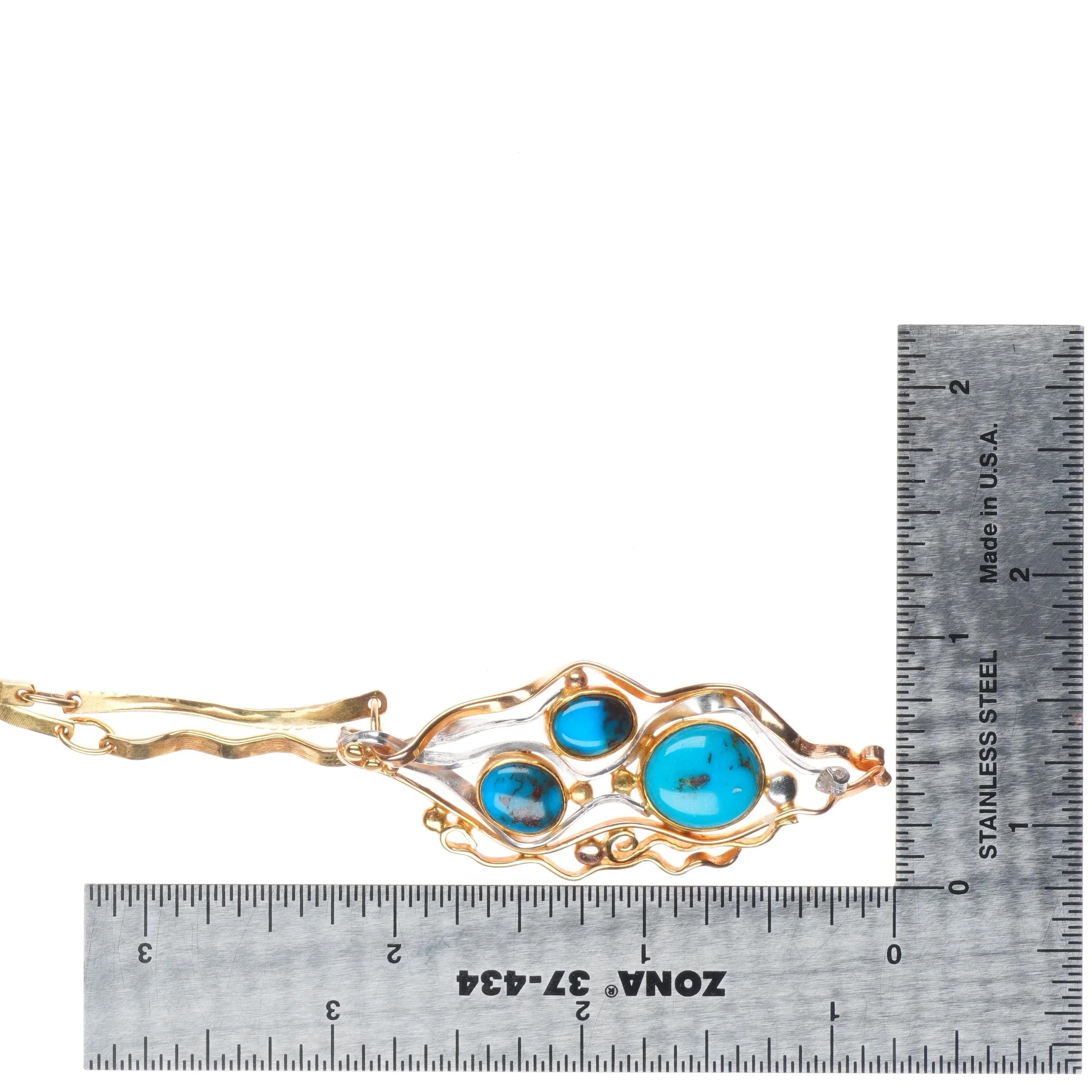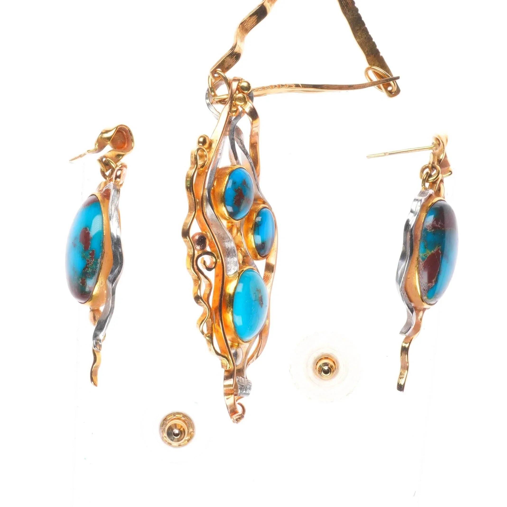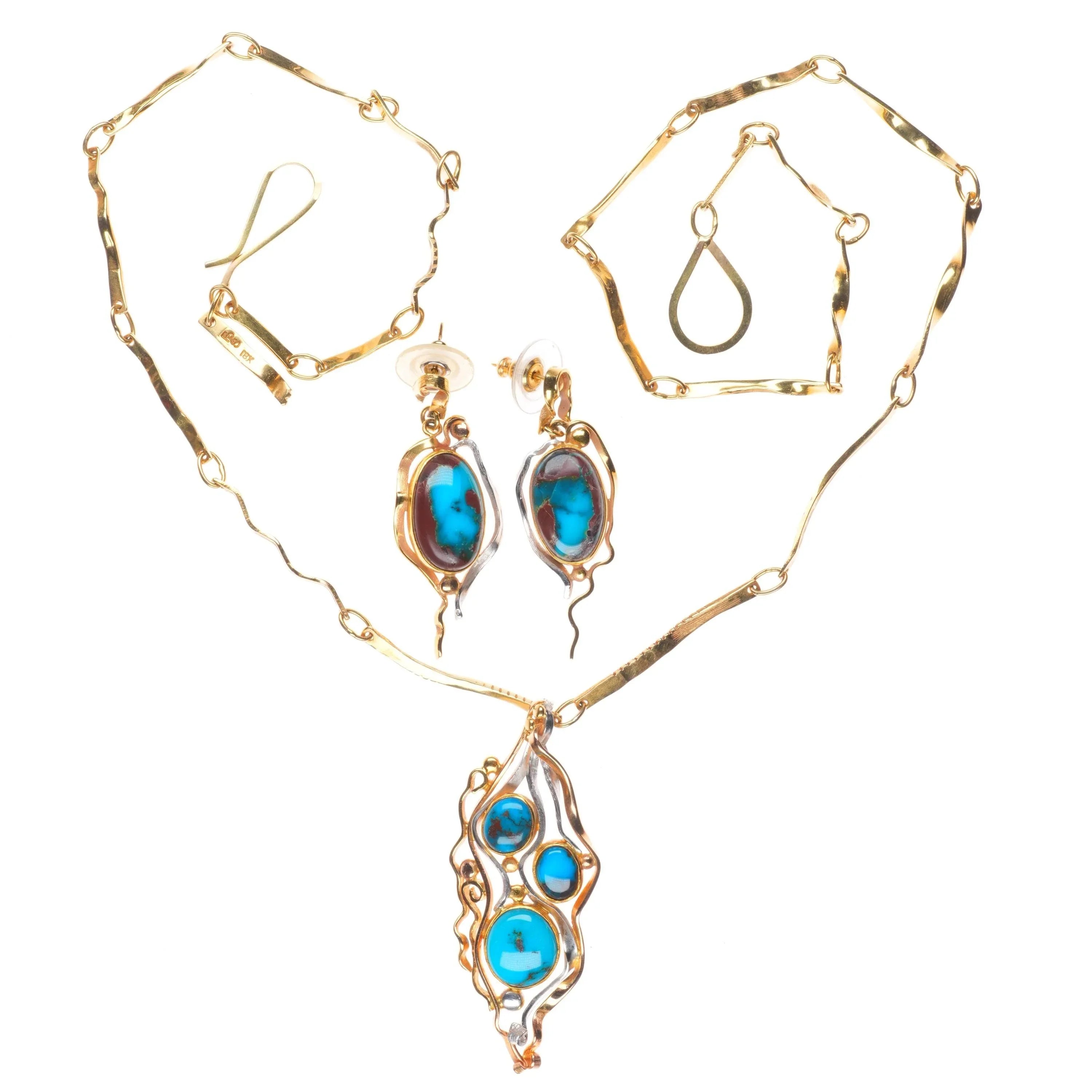 Sam Patania 18k gold, Platinum-high grade Bisbee turquoise necklace/earrings set. Circa late 20th to early 21st century, tested and guaranteed solid 18k gold and platinum. No apparent issues. 23" long necklace, other measurements in pictures. A set like this would retail for around 30k directly from Sam Patania or another high end gallery that represents him.