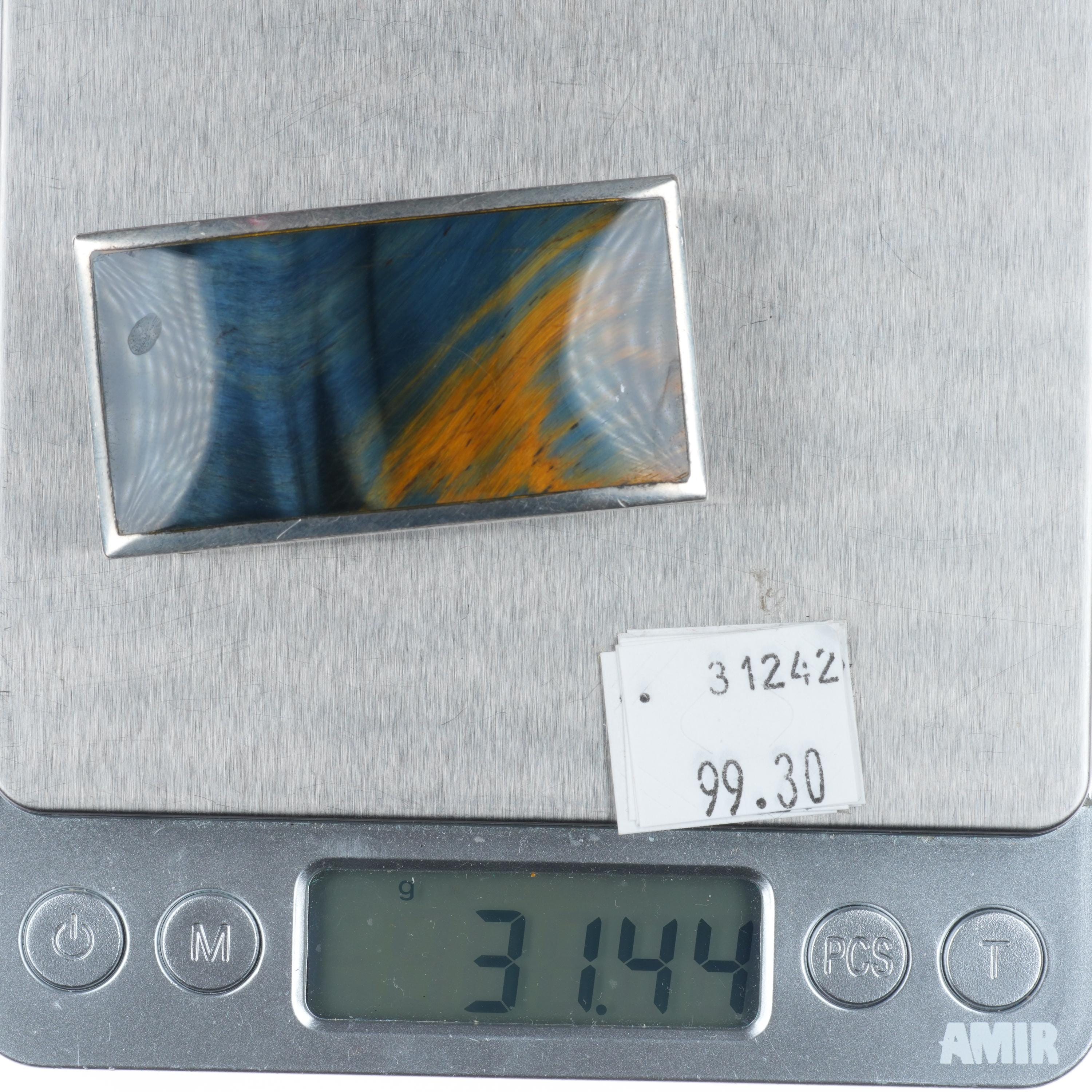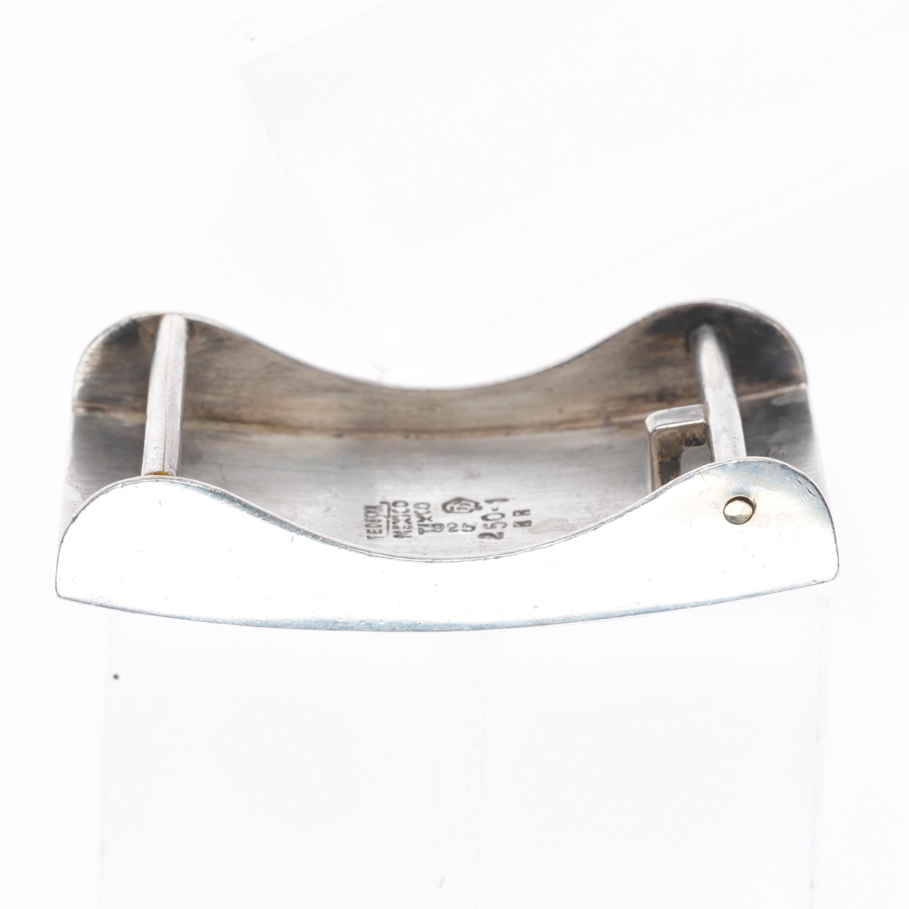 small Enrique Ledesma Taxco Modernist blue tiger's eye belt buckle #1