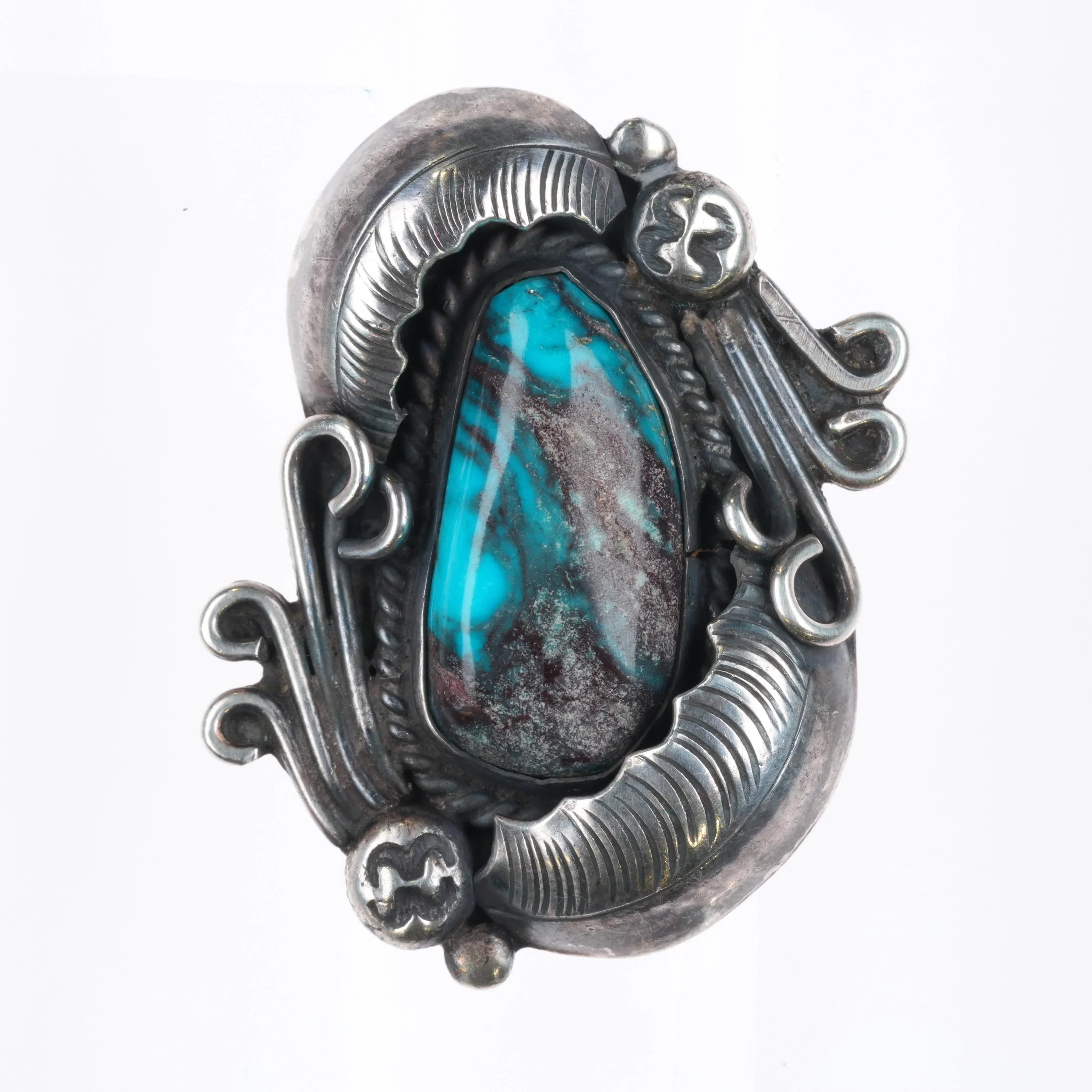 sz5.25 Vintage Dee Morris Large Smoky Bisbee turquoise ring sterling silver. Great looking ring from the 1970‘s. Tested and guaranteed solid sterling silver with no issues unless some are already stated previously in the description. Some expected wear.