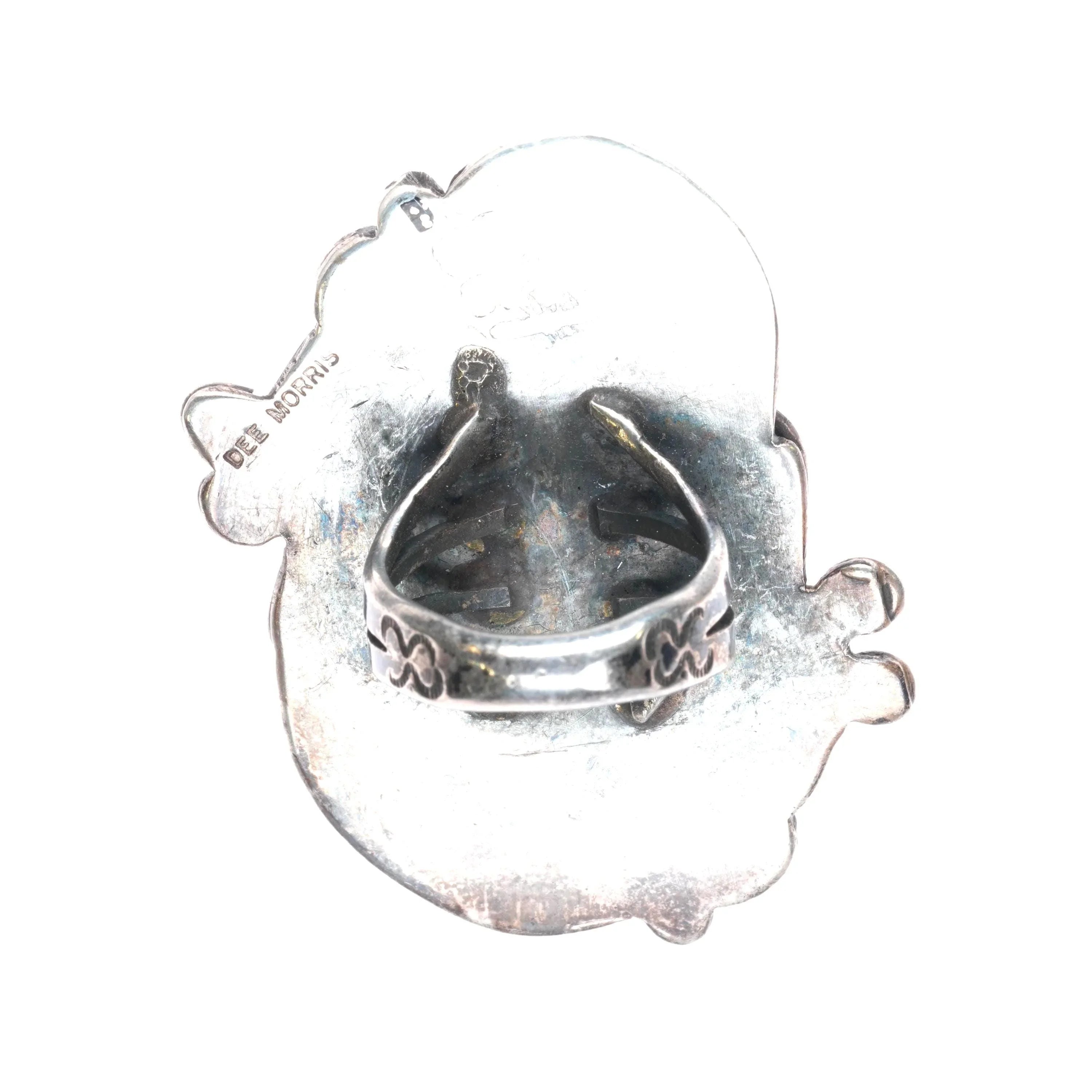 Dee Morris was adopted into the Navajo Nation where he was raised within the Navajo culture and taught the family art of silversmithing by his Navajo grandfather. He gained international fame as a cutting edge Navajo artist when the buffalo head he embellished with 9000 carats of turquoise sold for $25,000 in 1974. He taught his trade to his grandson who also became famous. He had his own gallery in Sedona, Arizona for many years which he sold in 1975. He partnered with Ralph Lauren on several projects and unfortunately died in 2006. His work has been featured in Arizona Highways magazine many times. The Jan 1974 issue featured his work on their front cover. He is a world renowned artist.