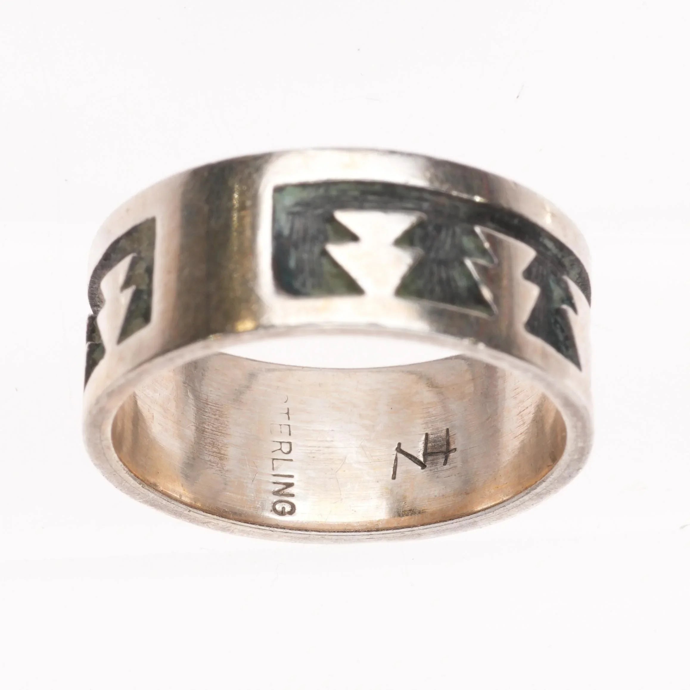 sz6.75 Stephen Hyson Naseyoma Hopi Overlay band ring sterling silver