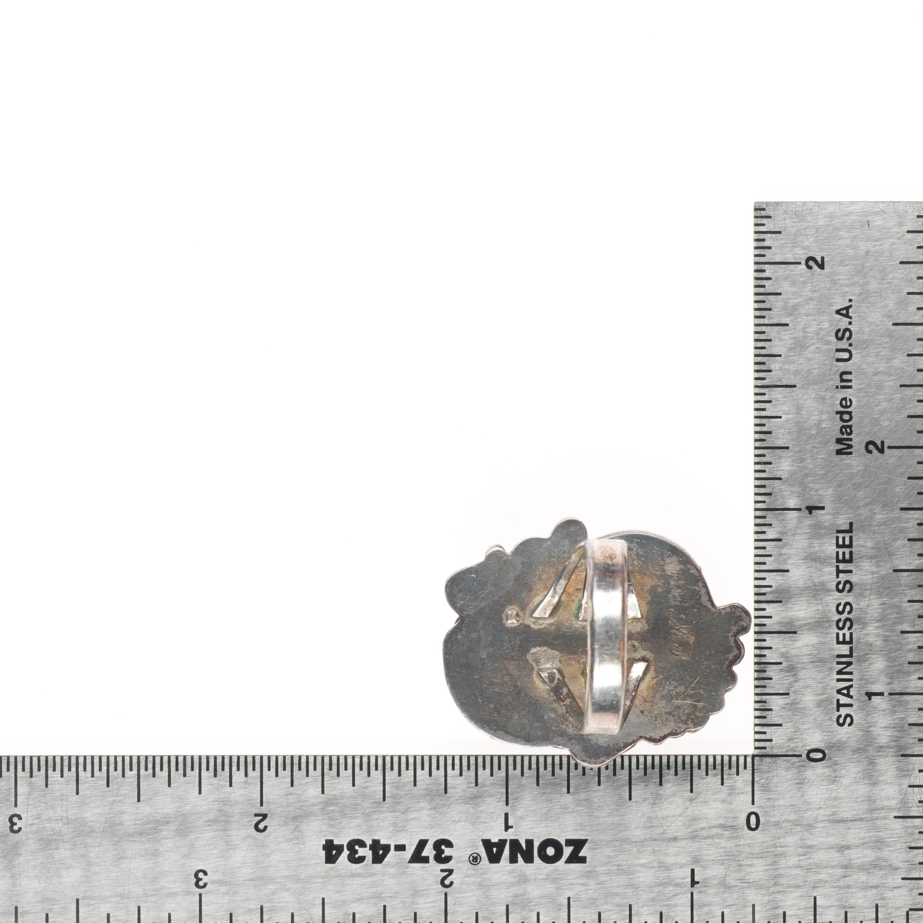 sz6.75 Vintage CW Navajo sterling silver spiderweb turquoise ring w/feather