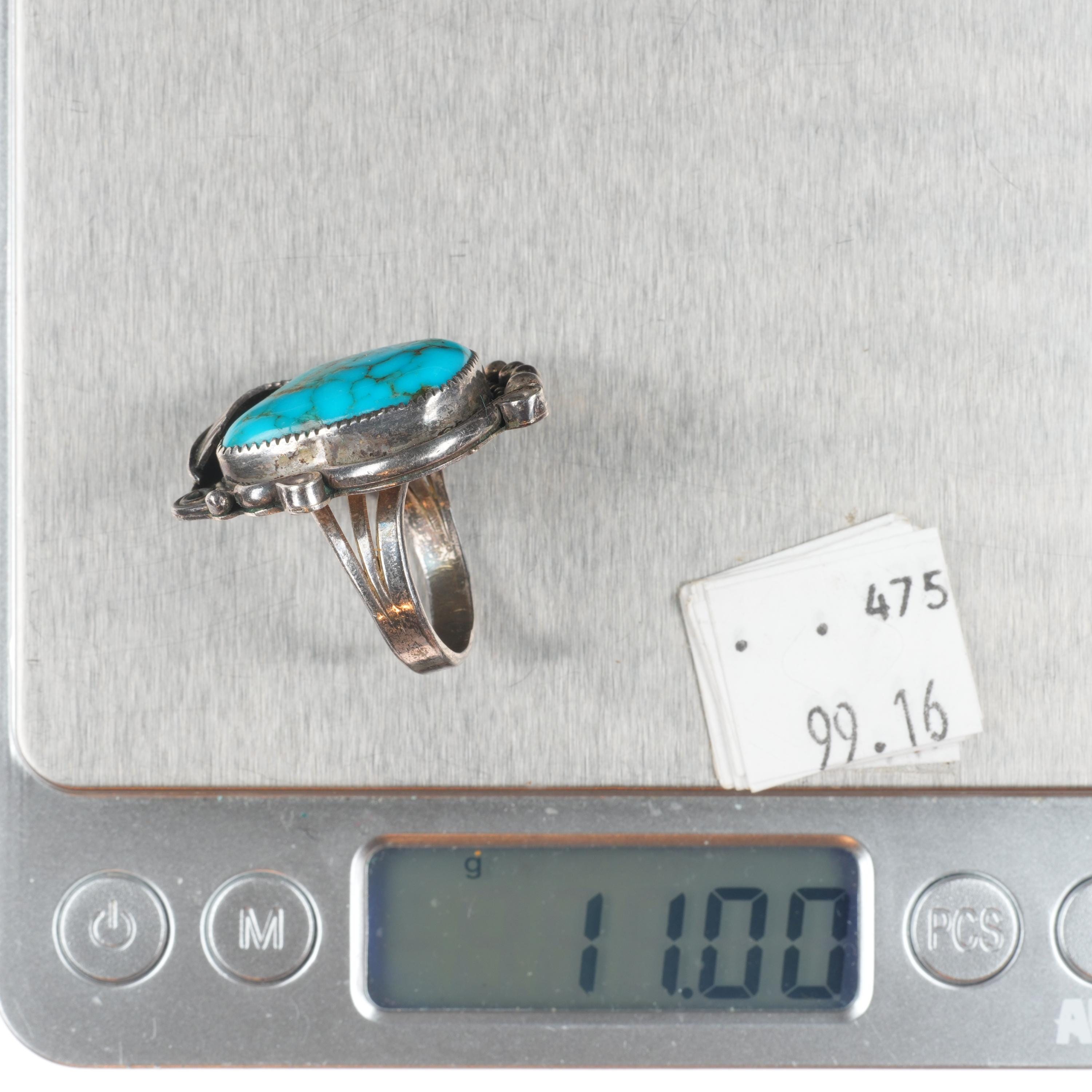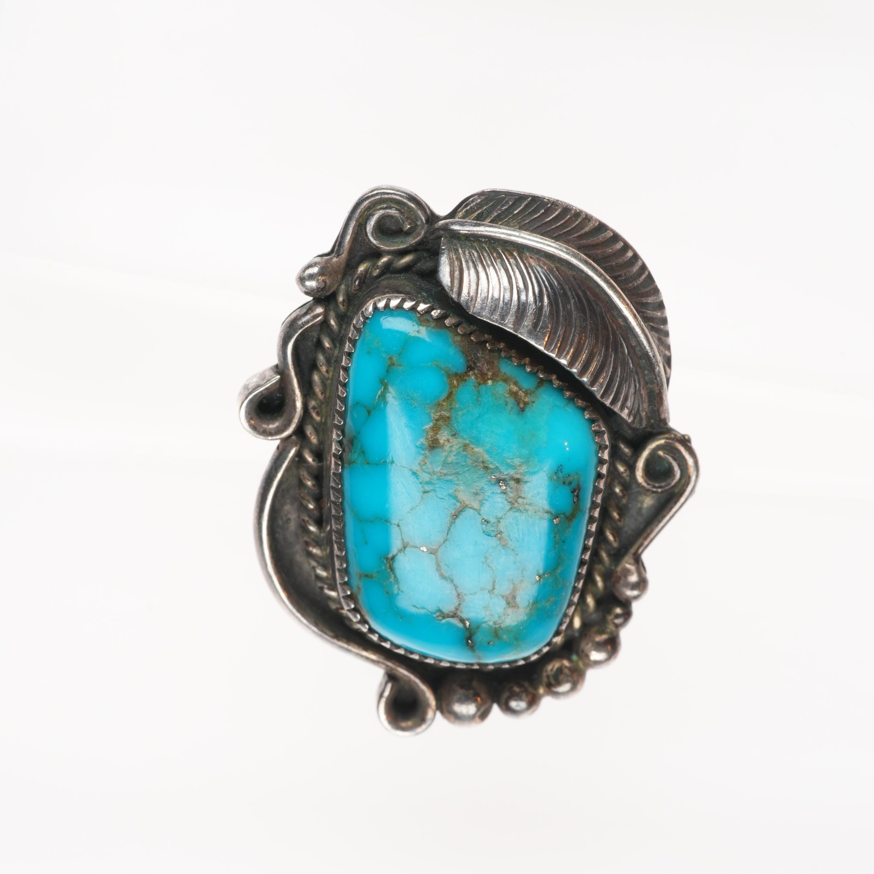 sz6.75 Vintage CW Navajo sterling silver spiderweb turquoise ring w/feather. Tested and guaranteed solid sterling silver. Nice ring from about the third quarter of the 20th century.