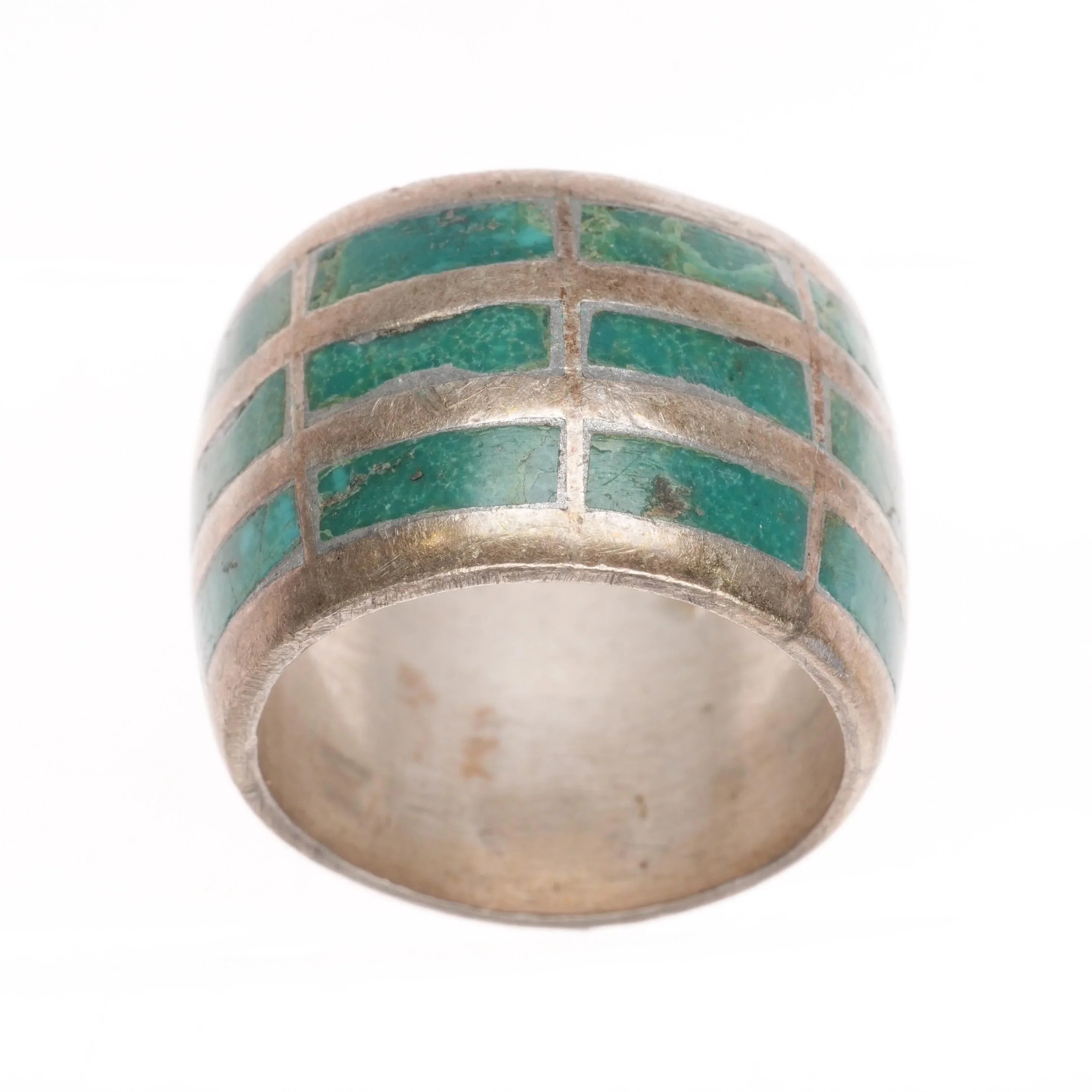 sz7.75 Vintage Zuni wide band Sterling silver turquoise channel inlay ring