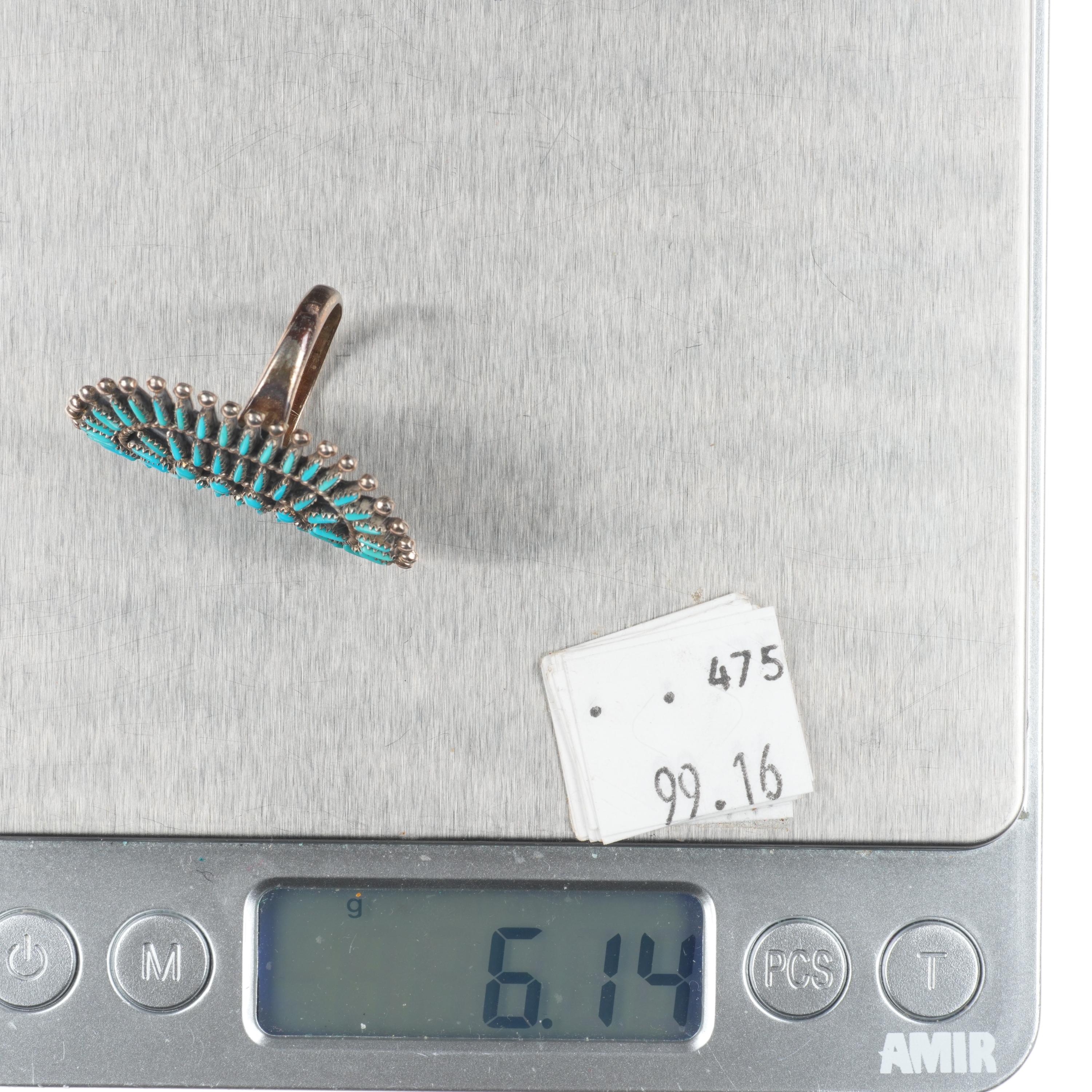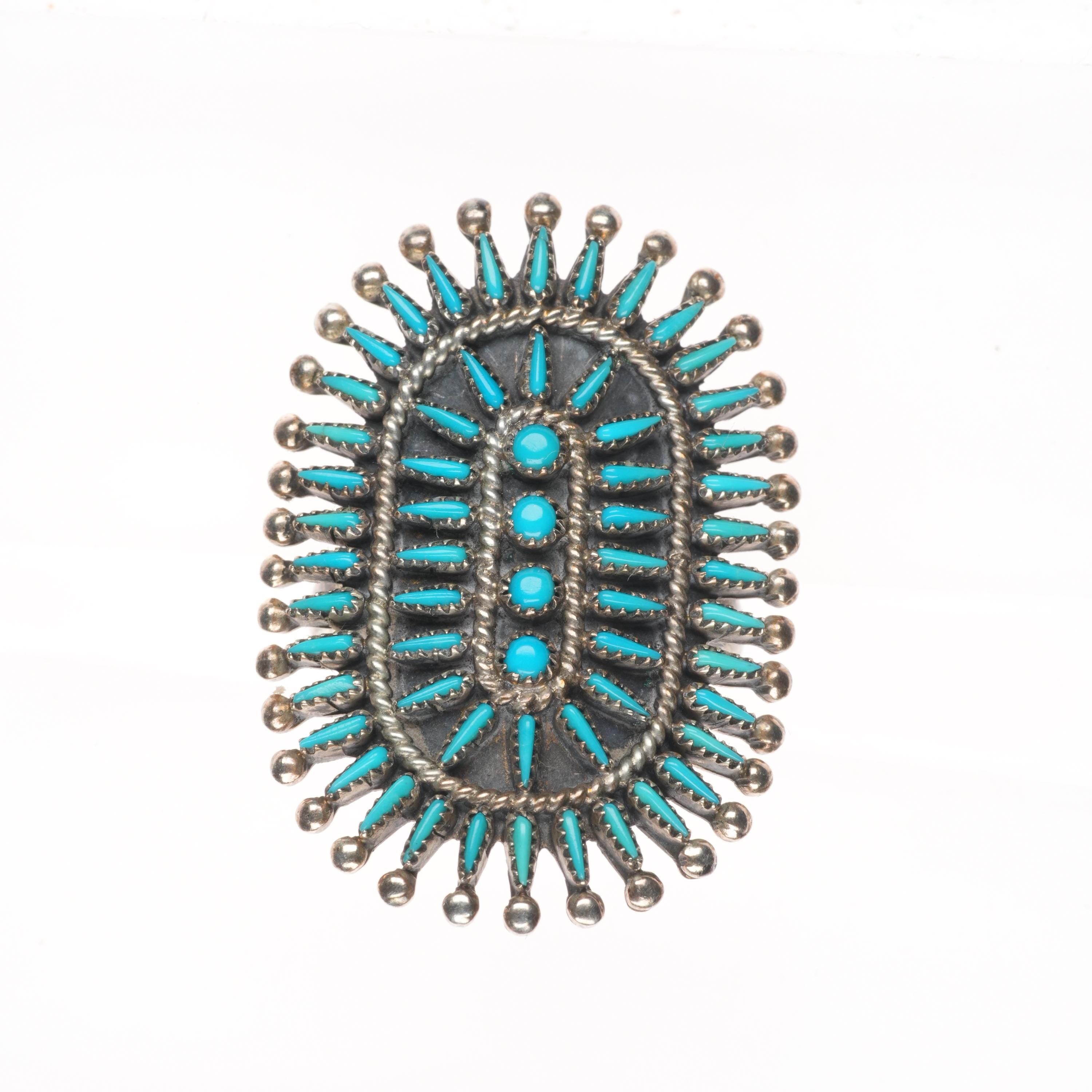 sz7 c1960's Vintage Bonnie Quam Zuni sterling silver needlepoint turquoise ring