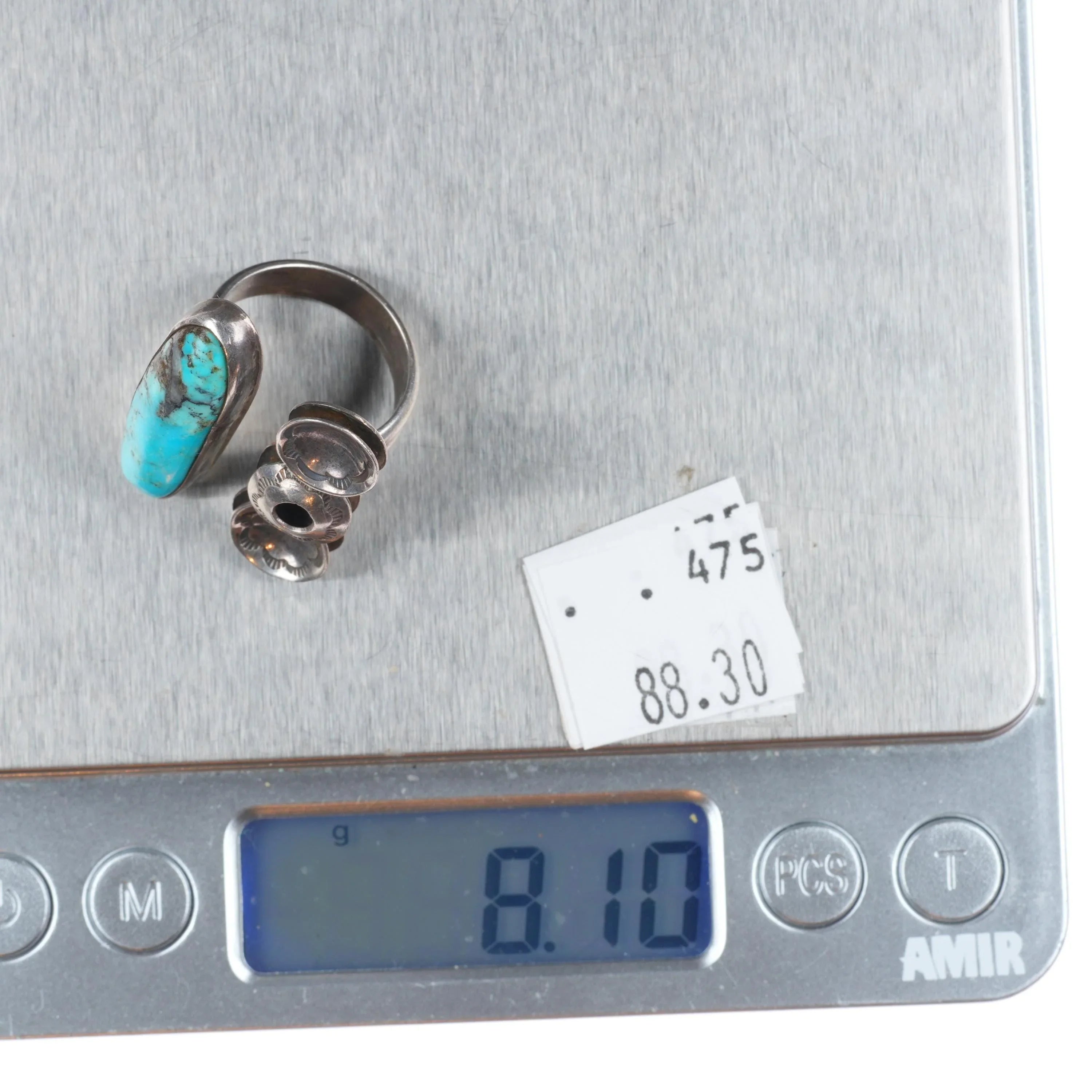 sz7 Terrence Hunt Navajo "Sun Boy" Sterling silver/turquoise modernist ring