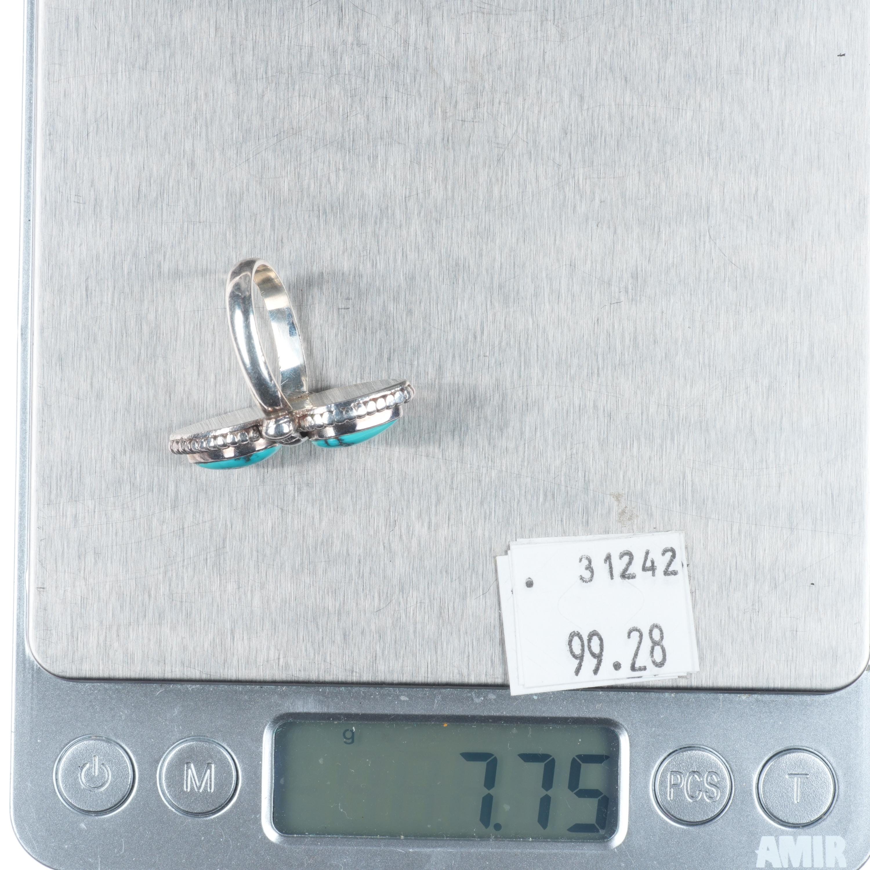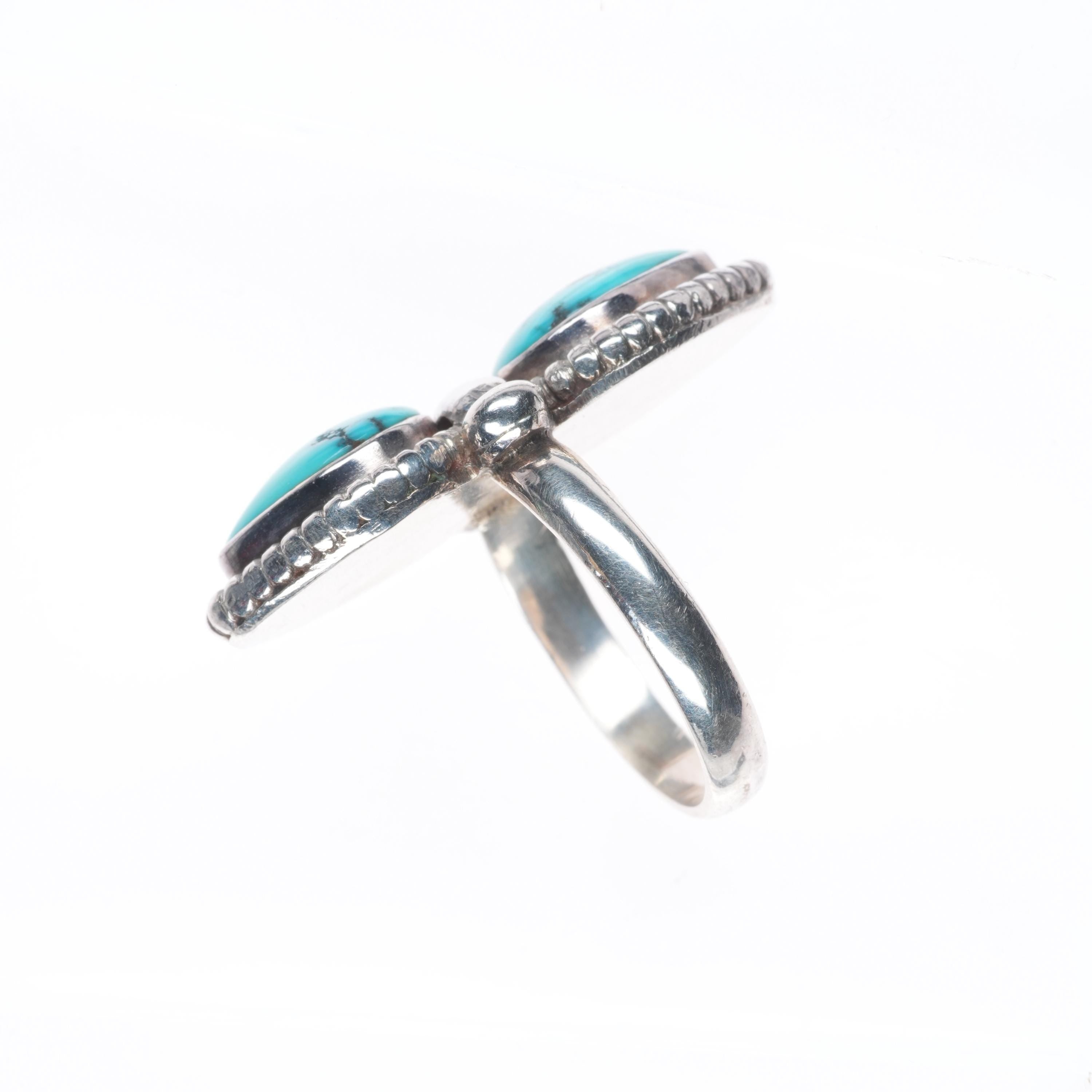 sz7 vintage Navajo sterling silver 2 stone ring with gorgeous turquoise
