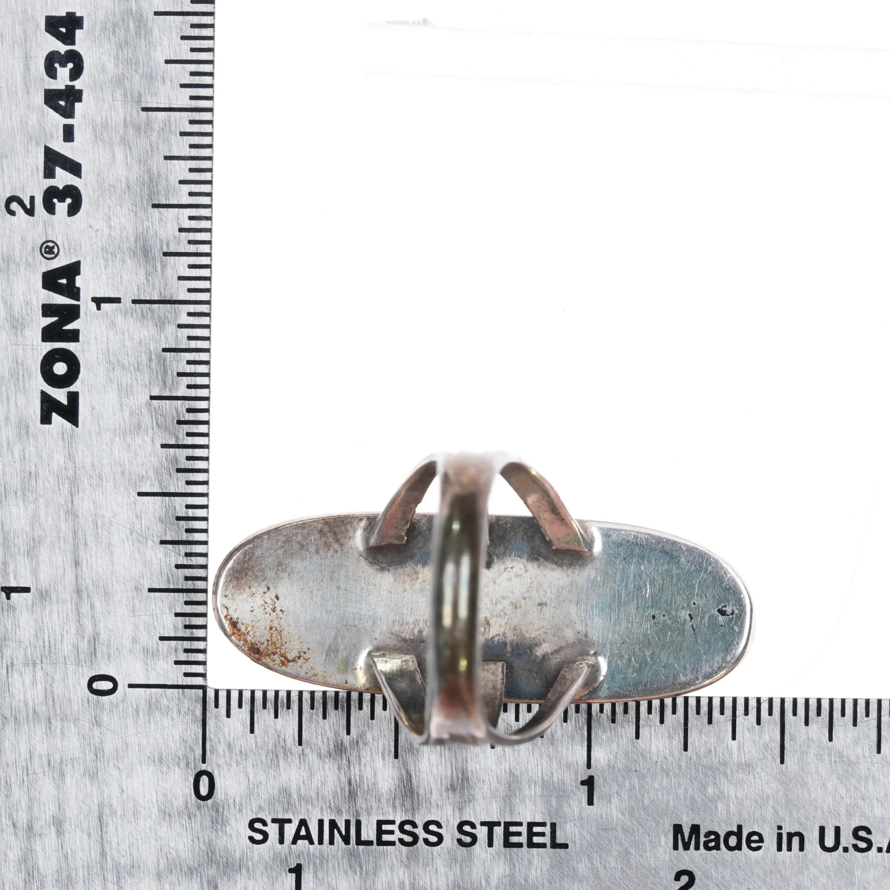 sz7 Vintage Navajo sterling silver 3 stone modernist ring with nice turquoise