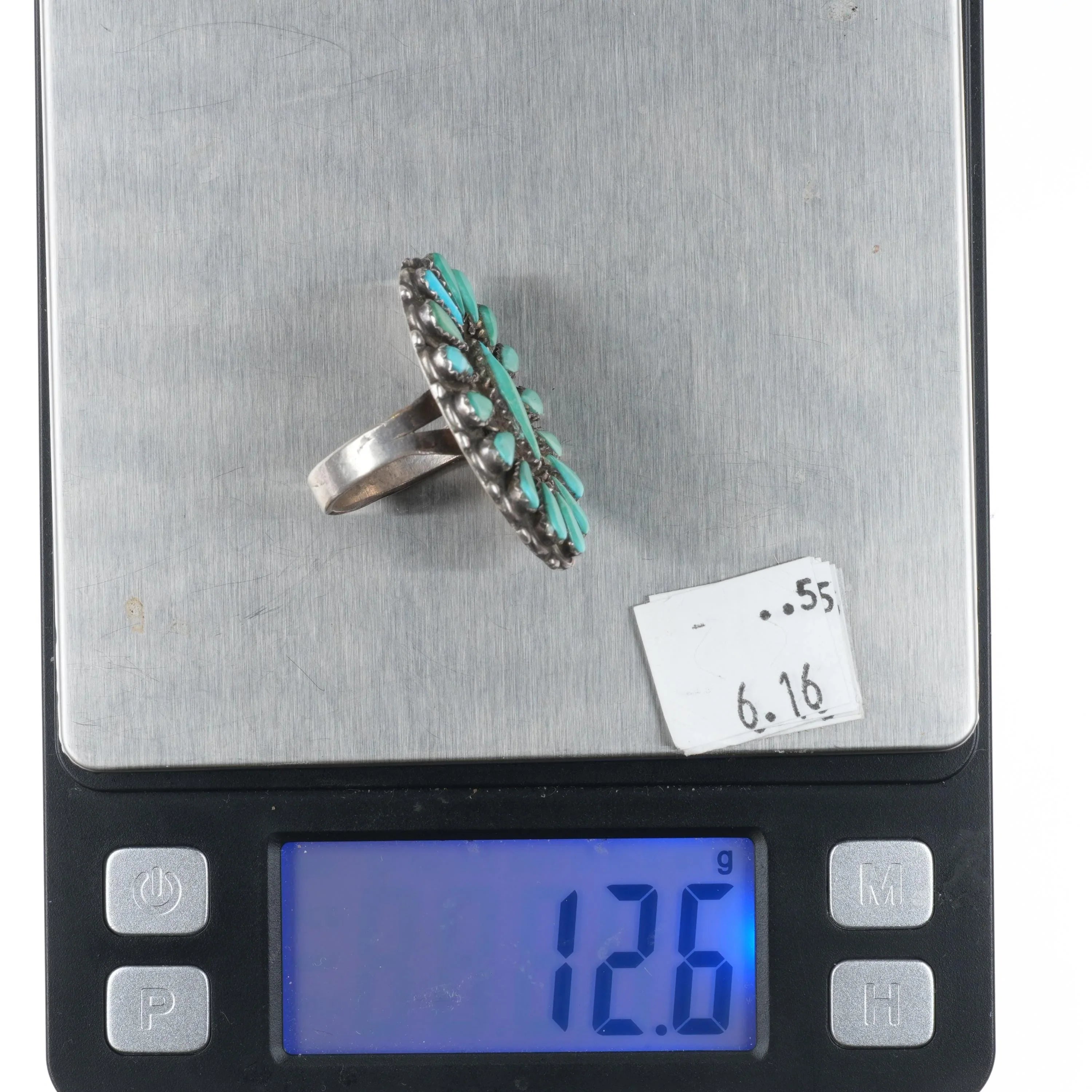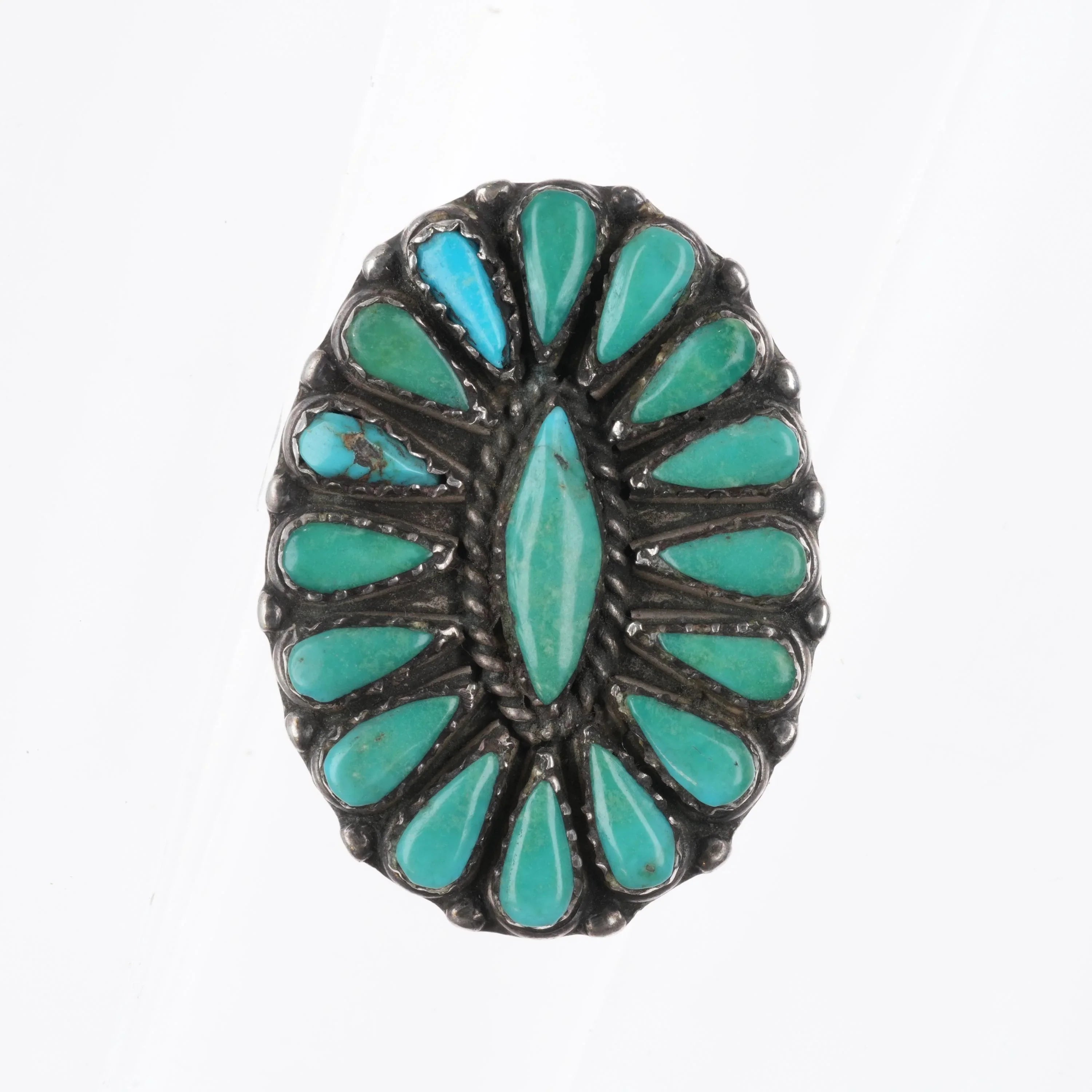 sz8.5 Vintage Zuni Native American sterling silver turquoise cluster ring
