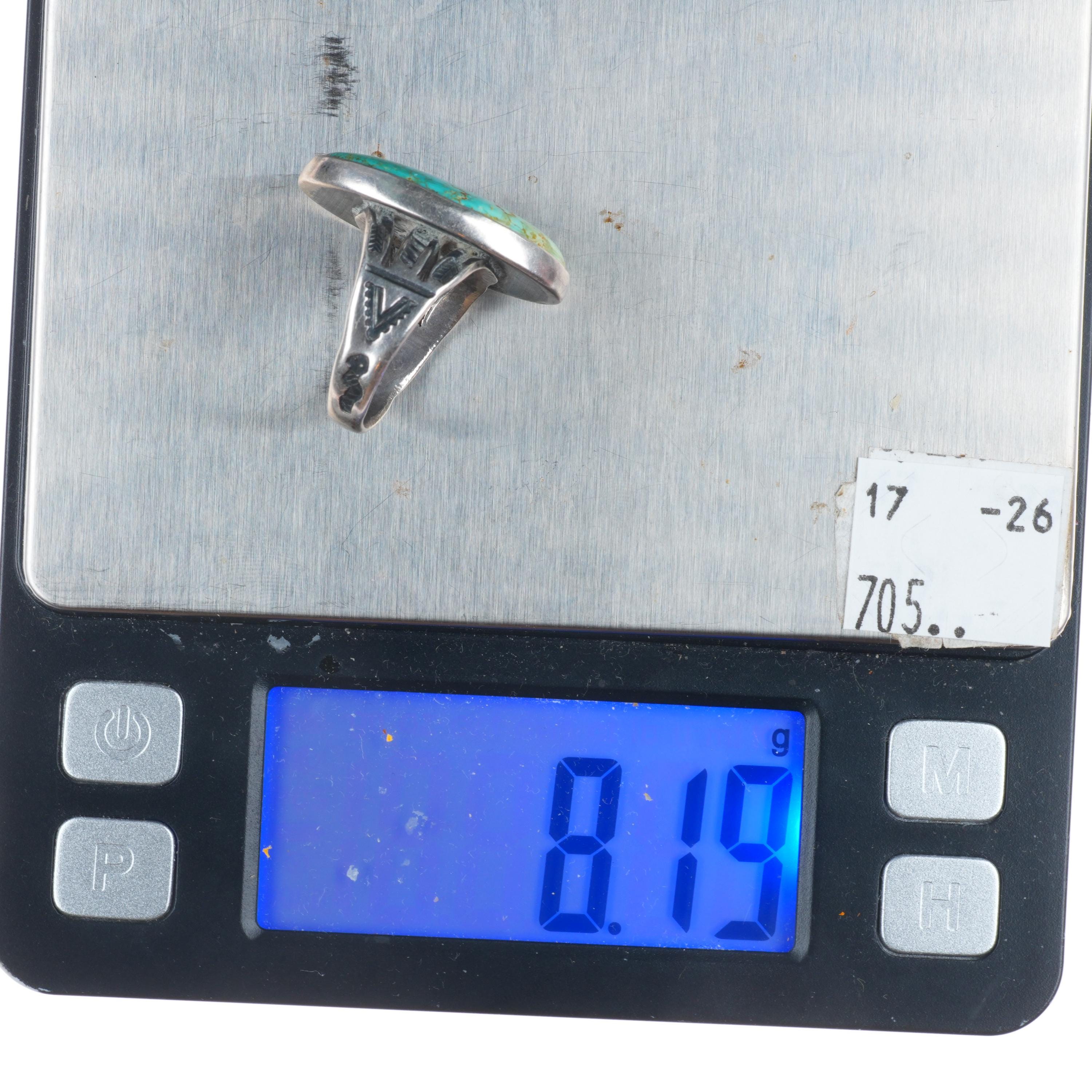 sz8 c1940 Vintage Navajo sterling silver snake/arrow red web turquoise ring